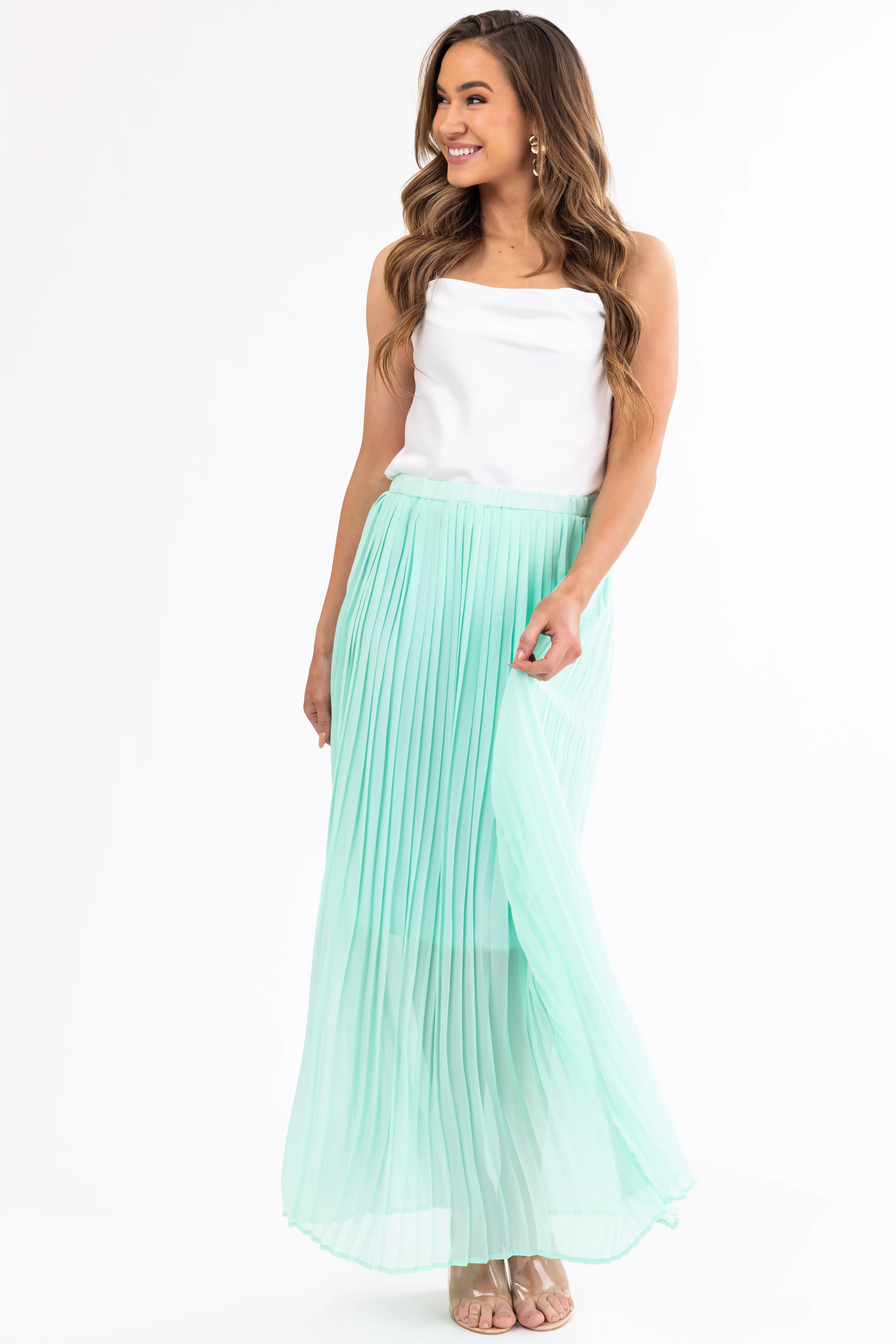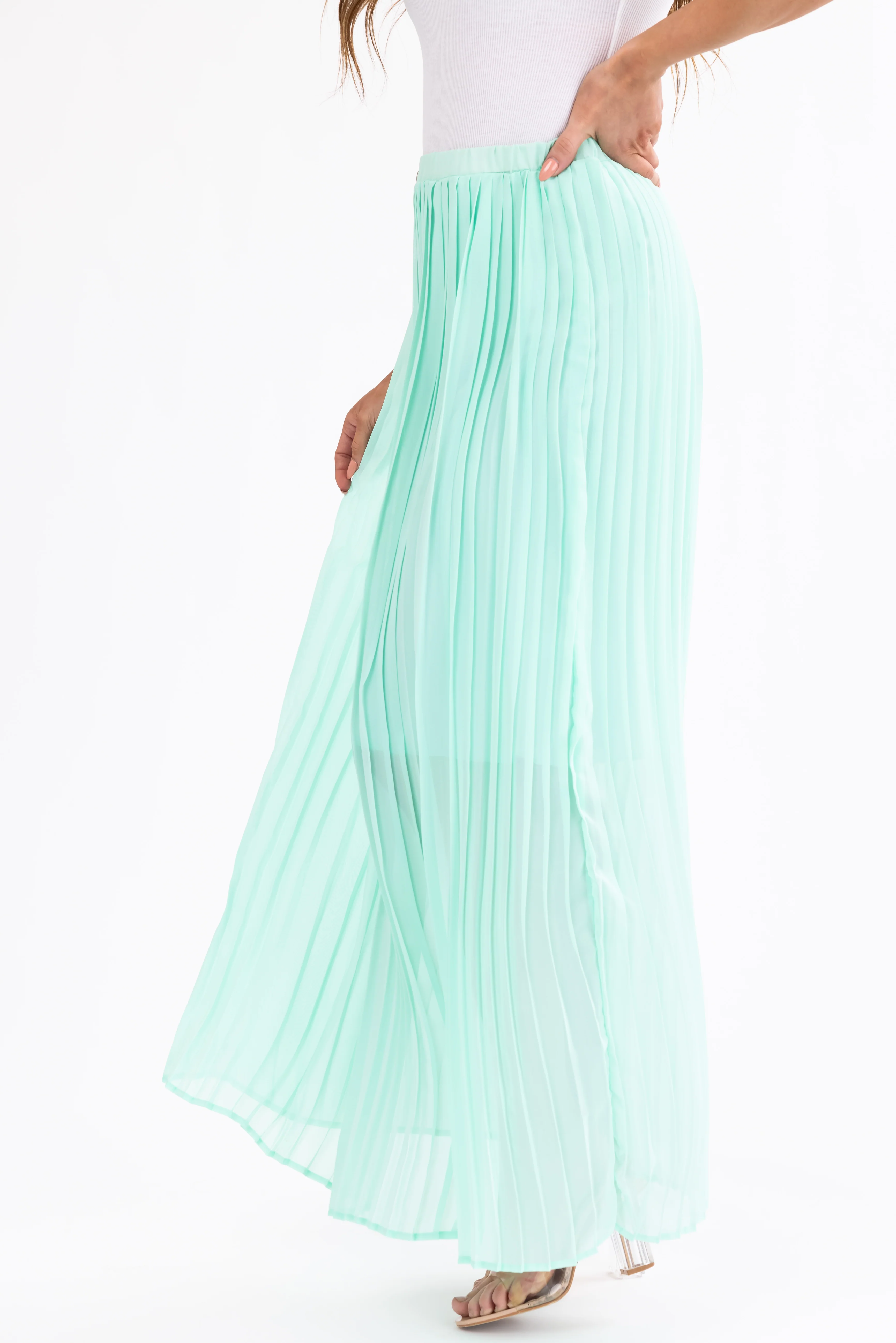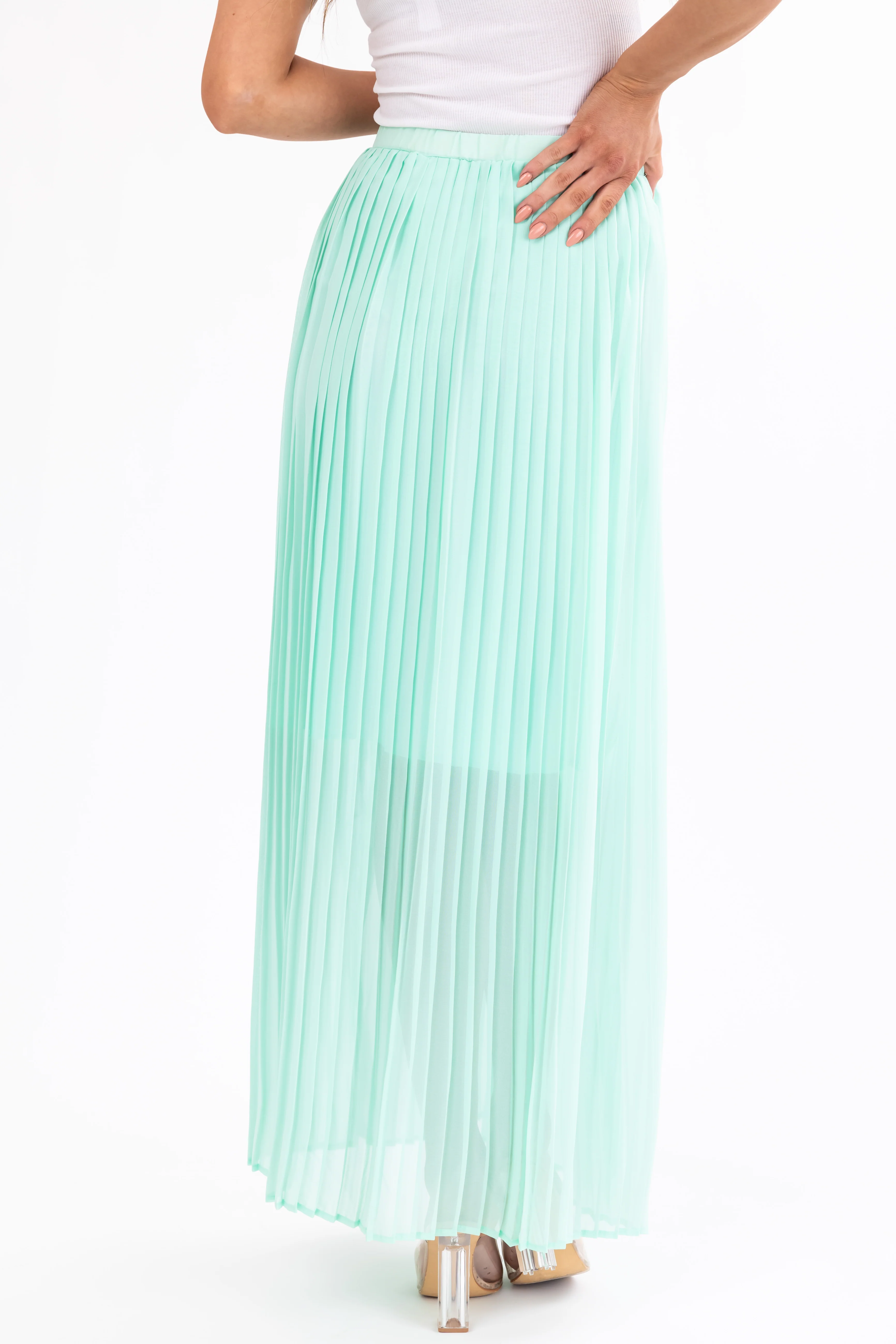 Seafoam Pleated Chiffon Elastic Waist Maxi Skirt