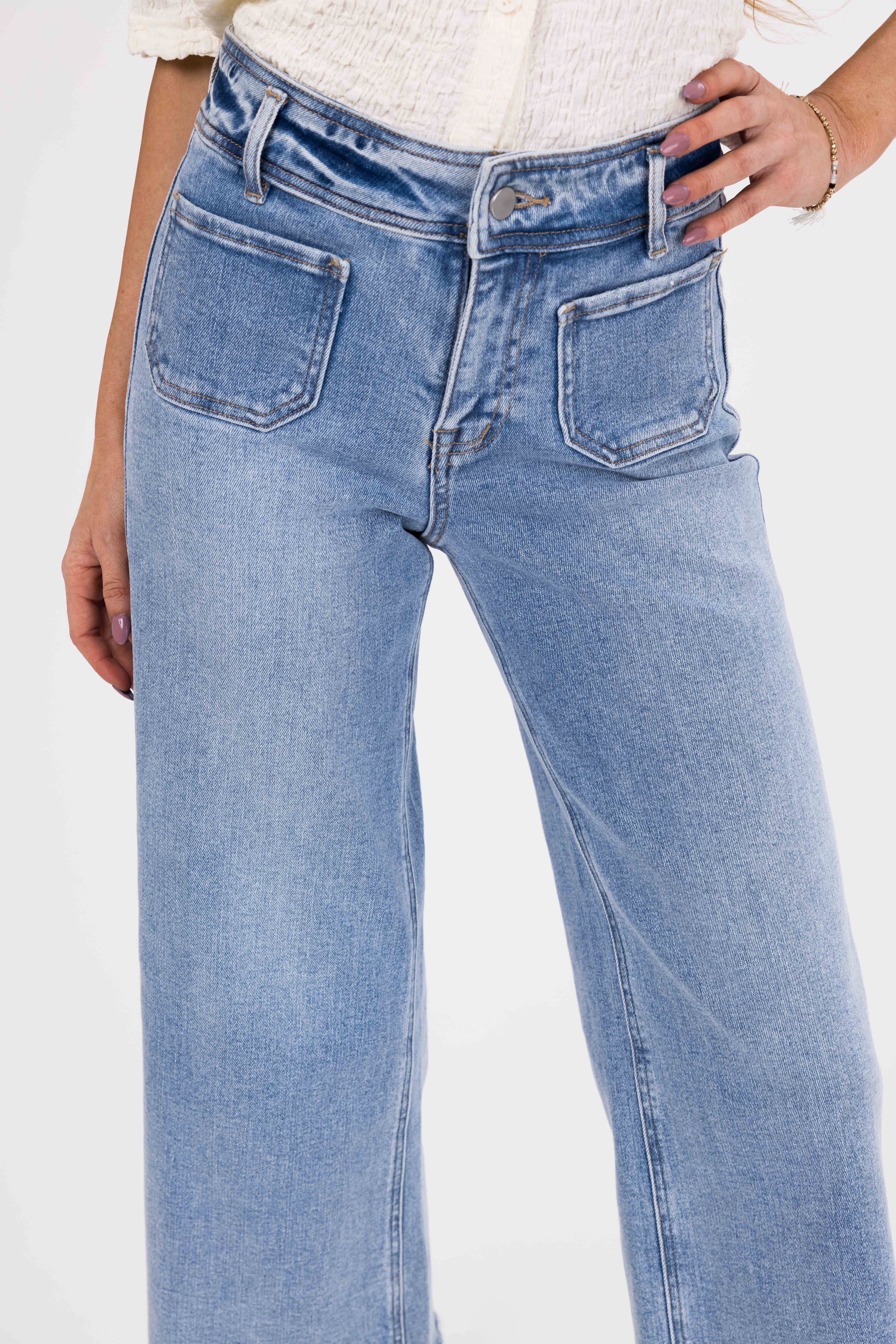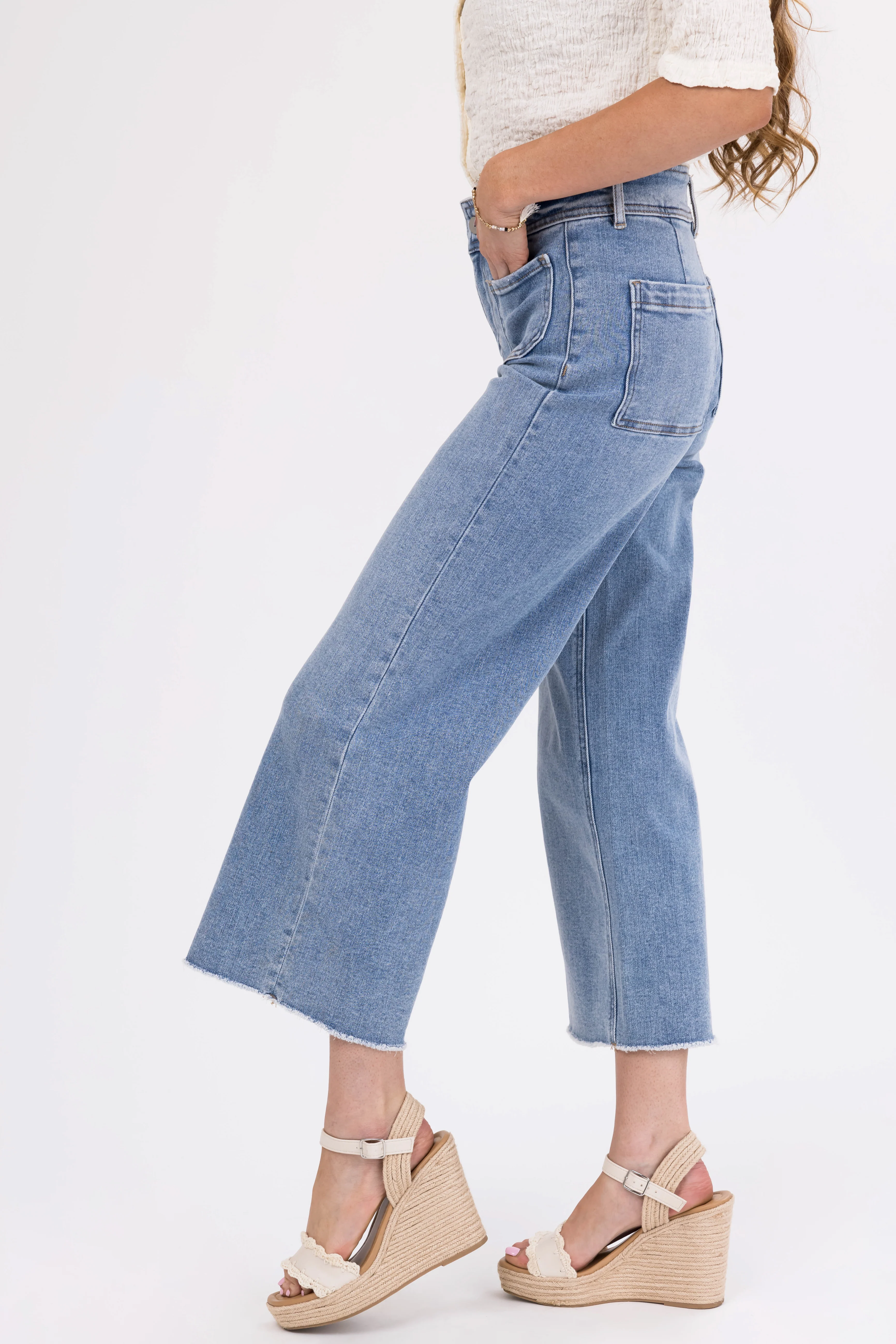 Mica Denim Light Wash Wide Leg Cropped Jeans