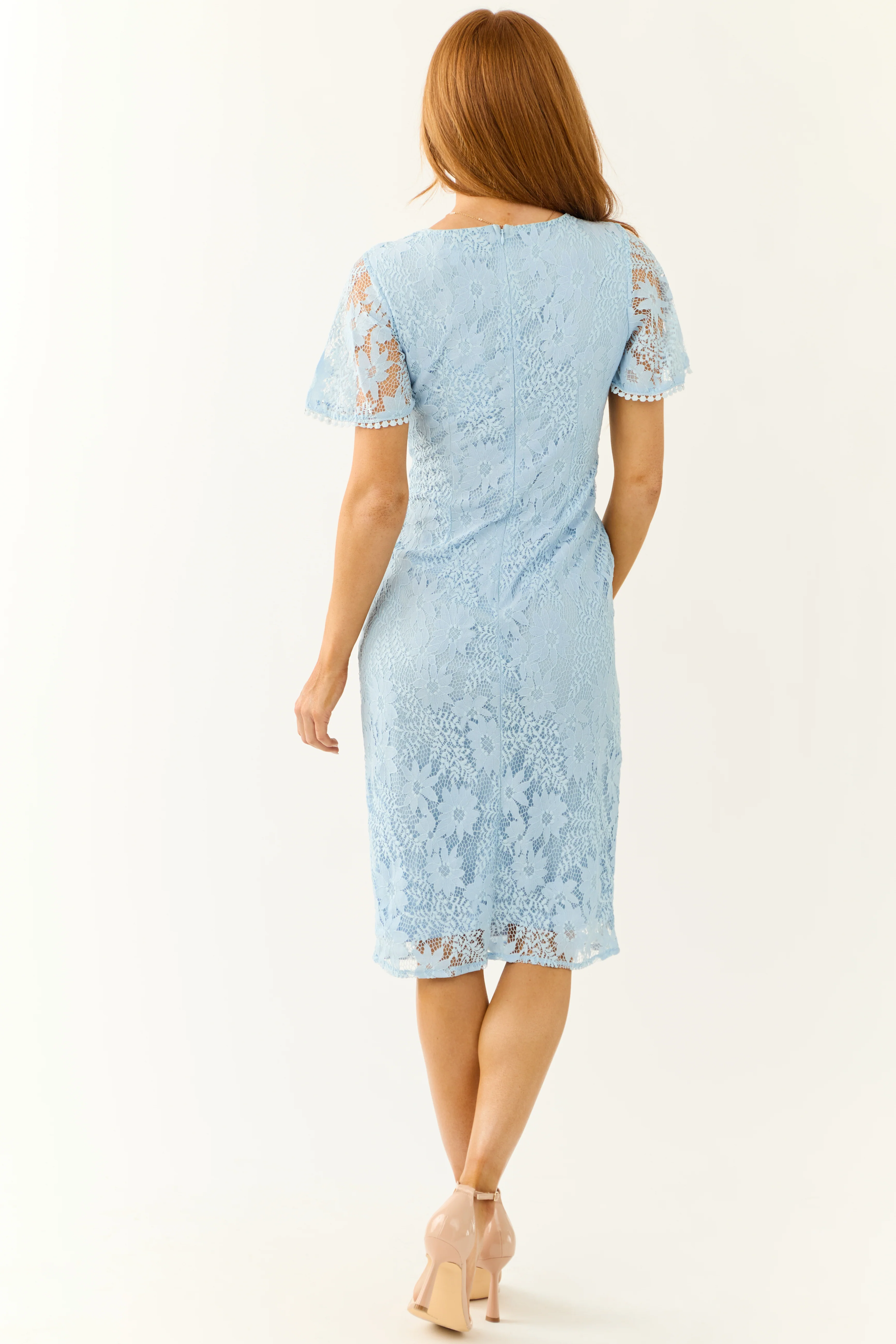 Baby Blue Lace Overlay Fitted Midi Dress