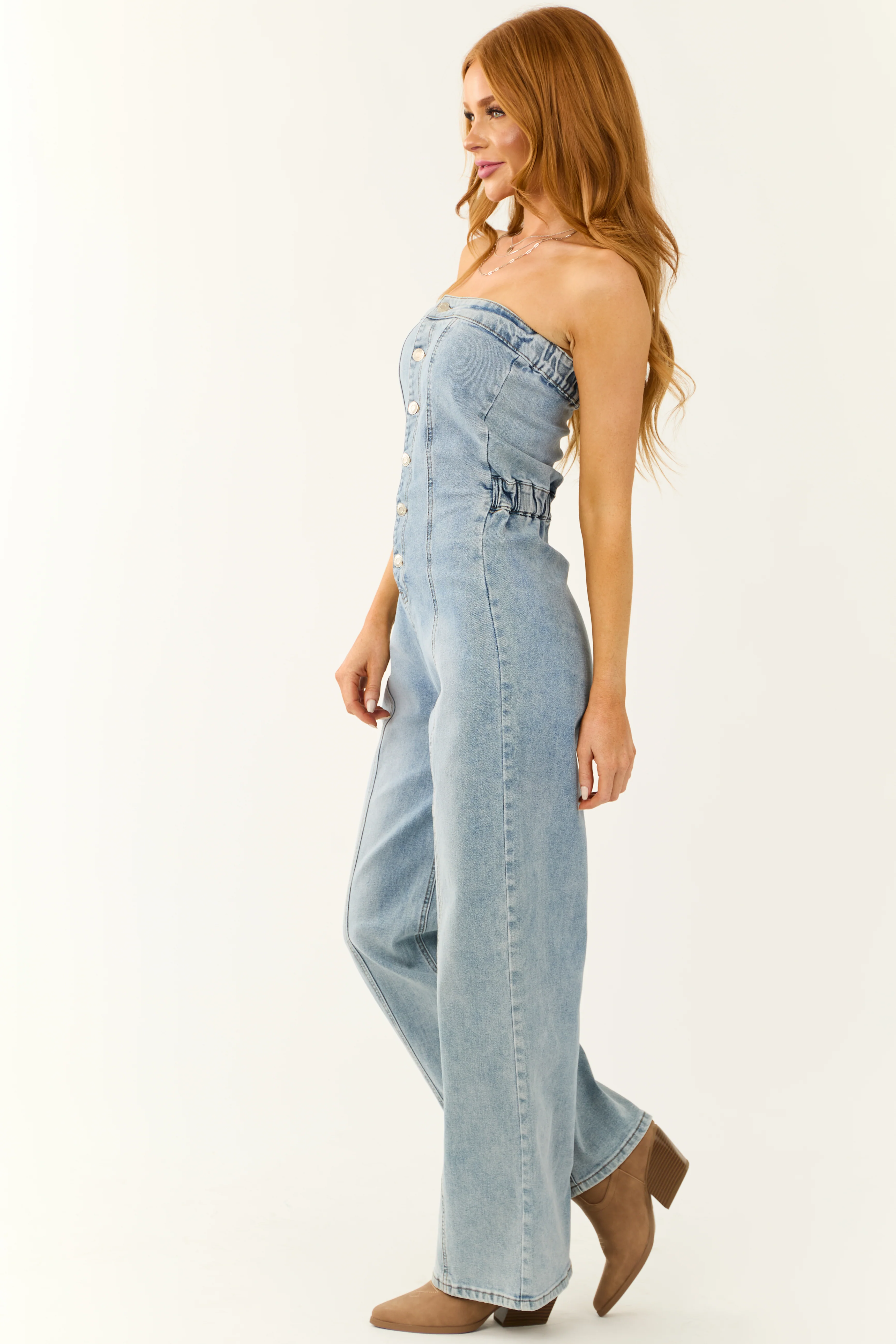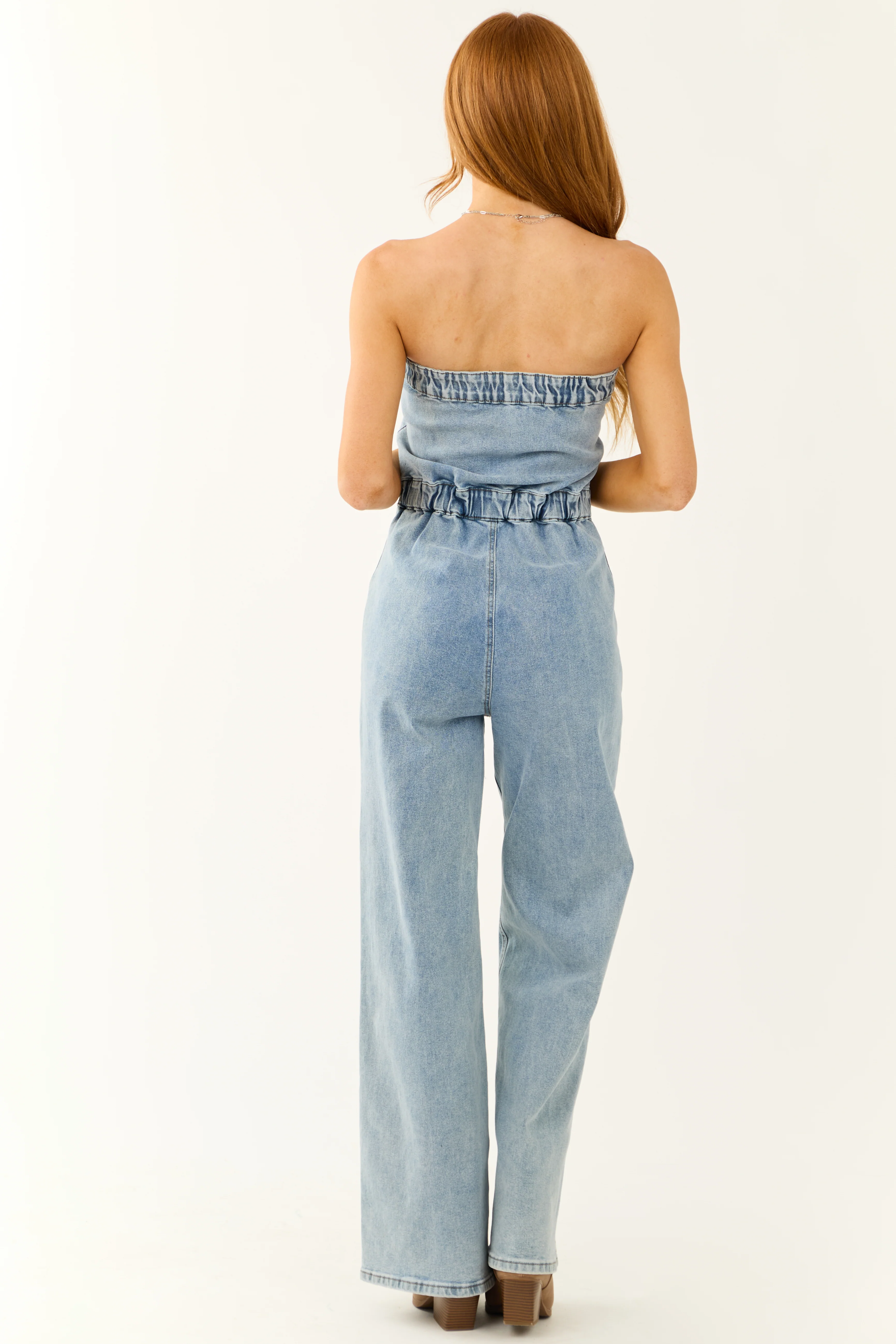 Medium Wash Denim Strapless Jumpsuit