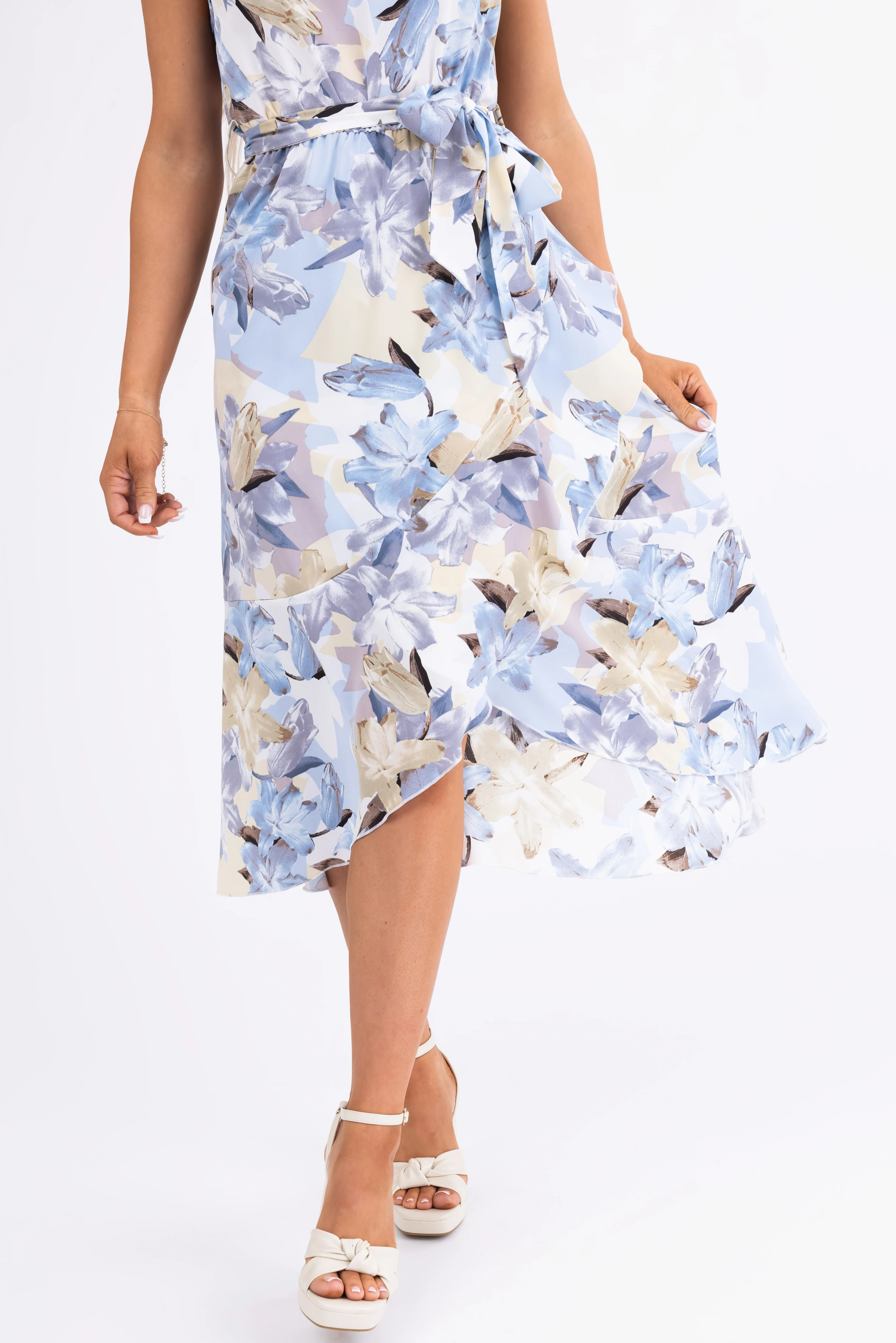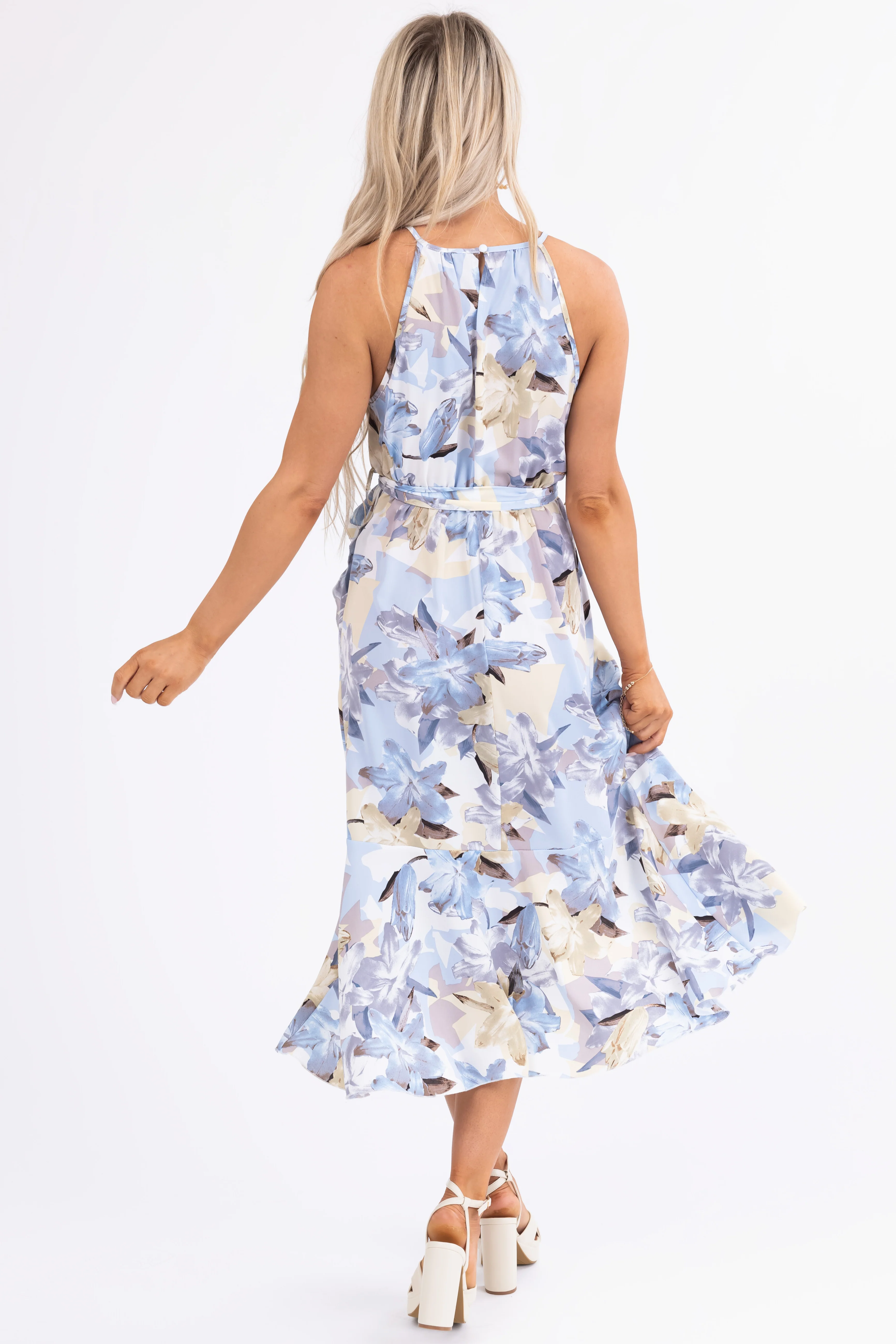 Baby Blue Floral Print Halter Midi Dress