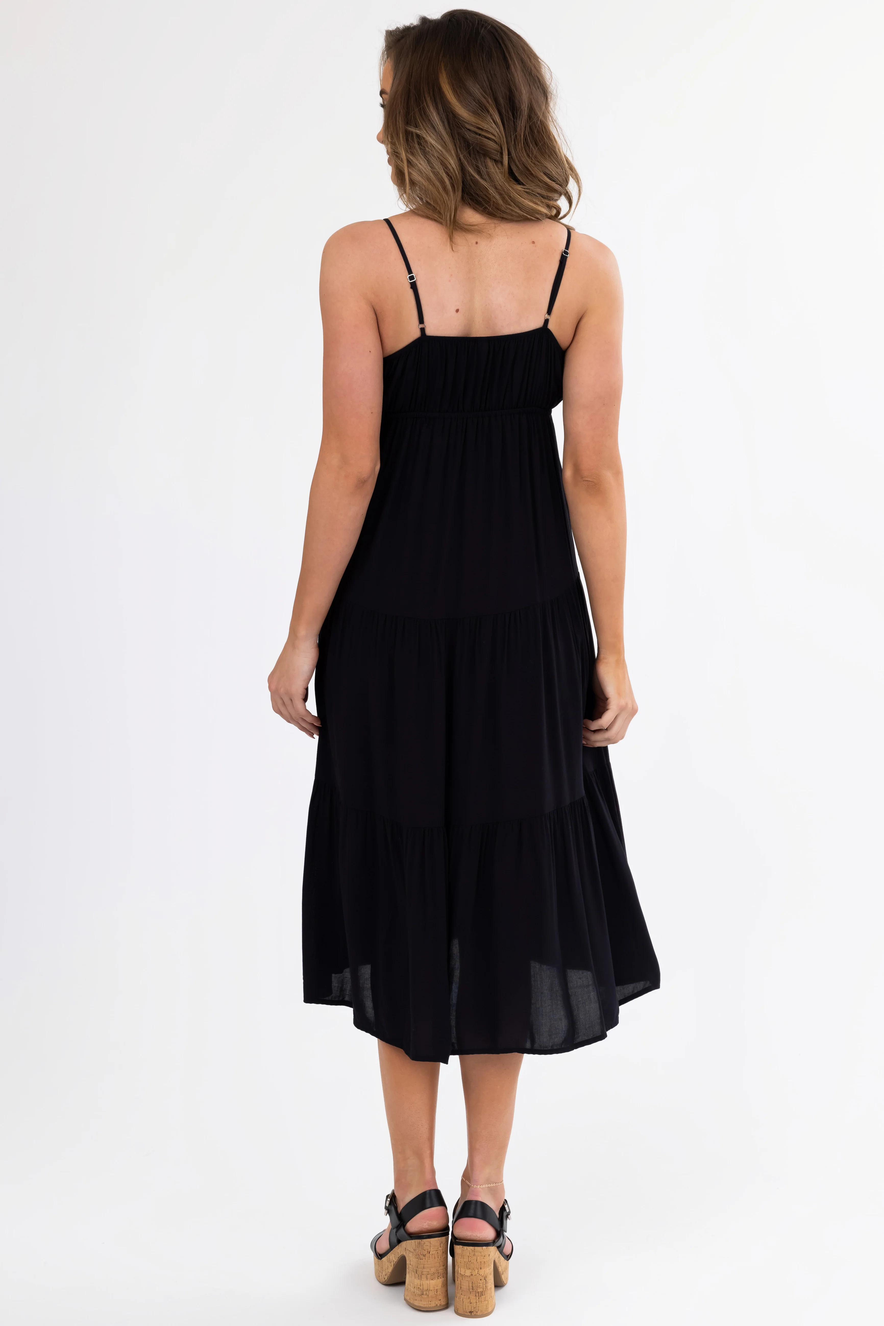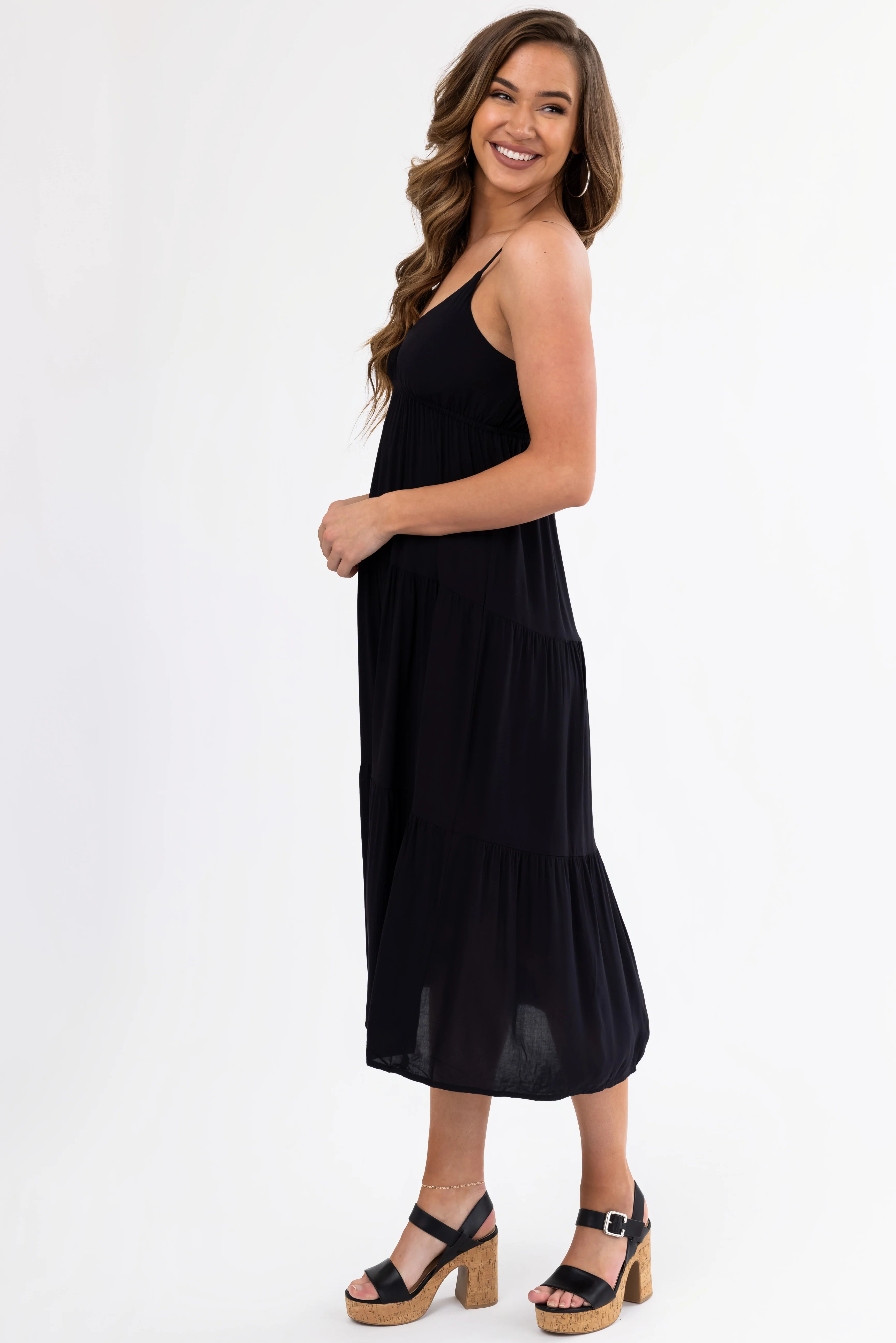 Black Sweetheart Neck Tiered Midi Dress