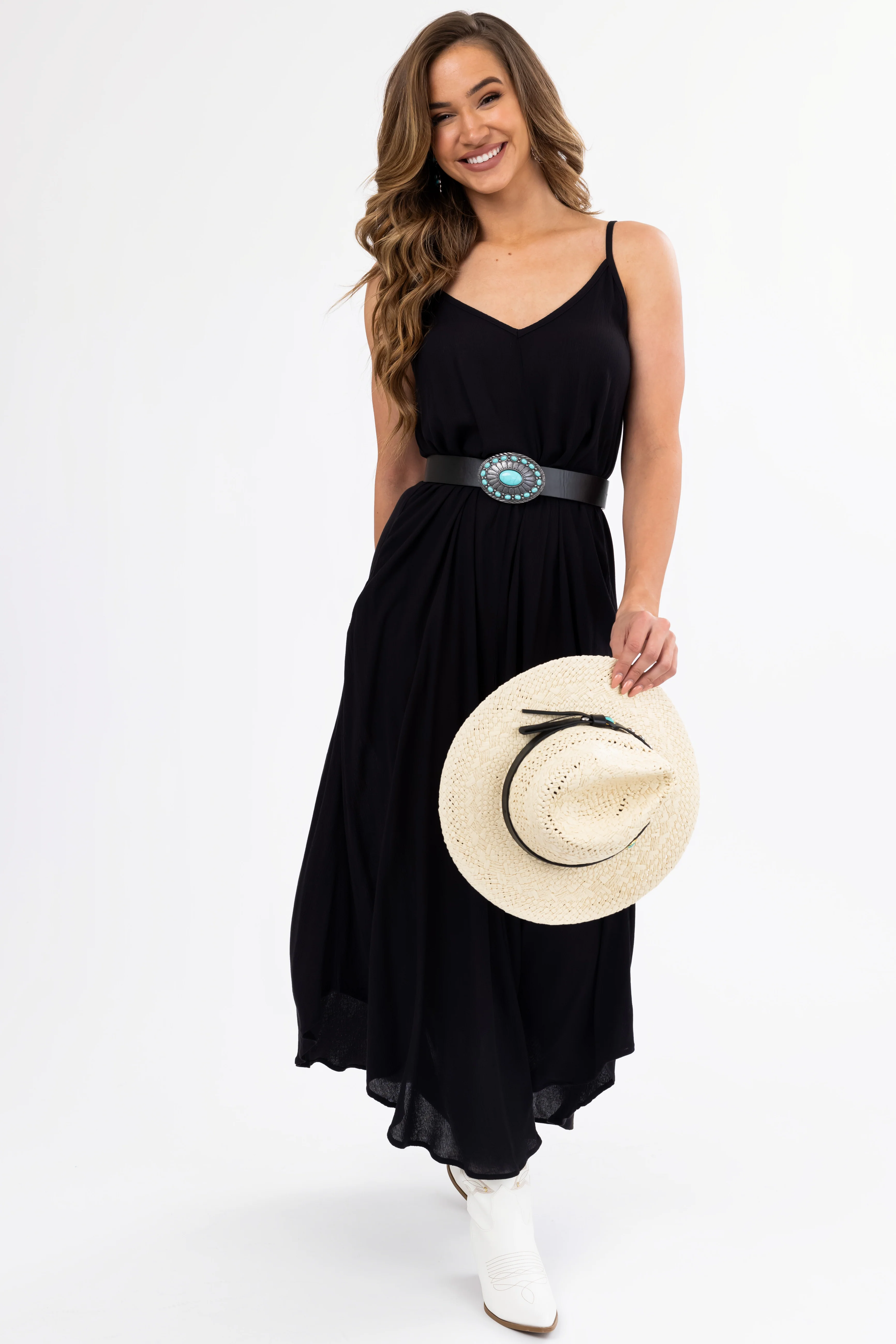 Black Sleeveless V Neck Textured Maxi Dress