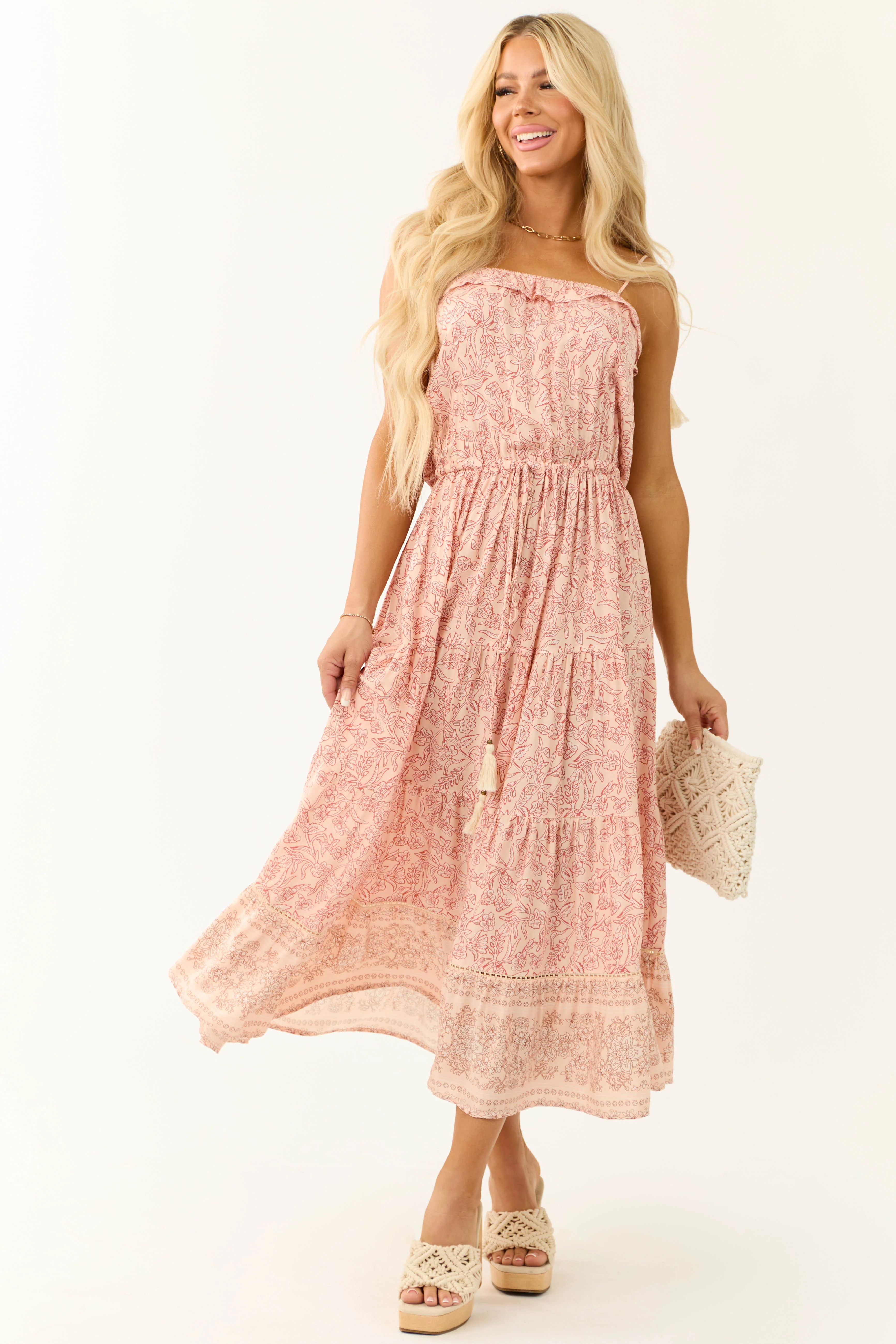 Peach Floral Print Sleeveless Maxi Dress