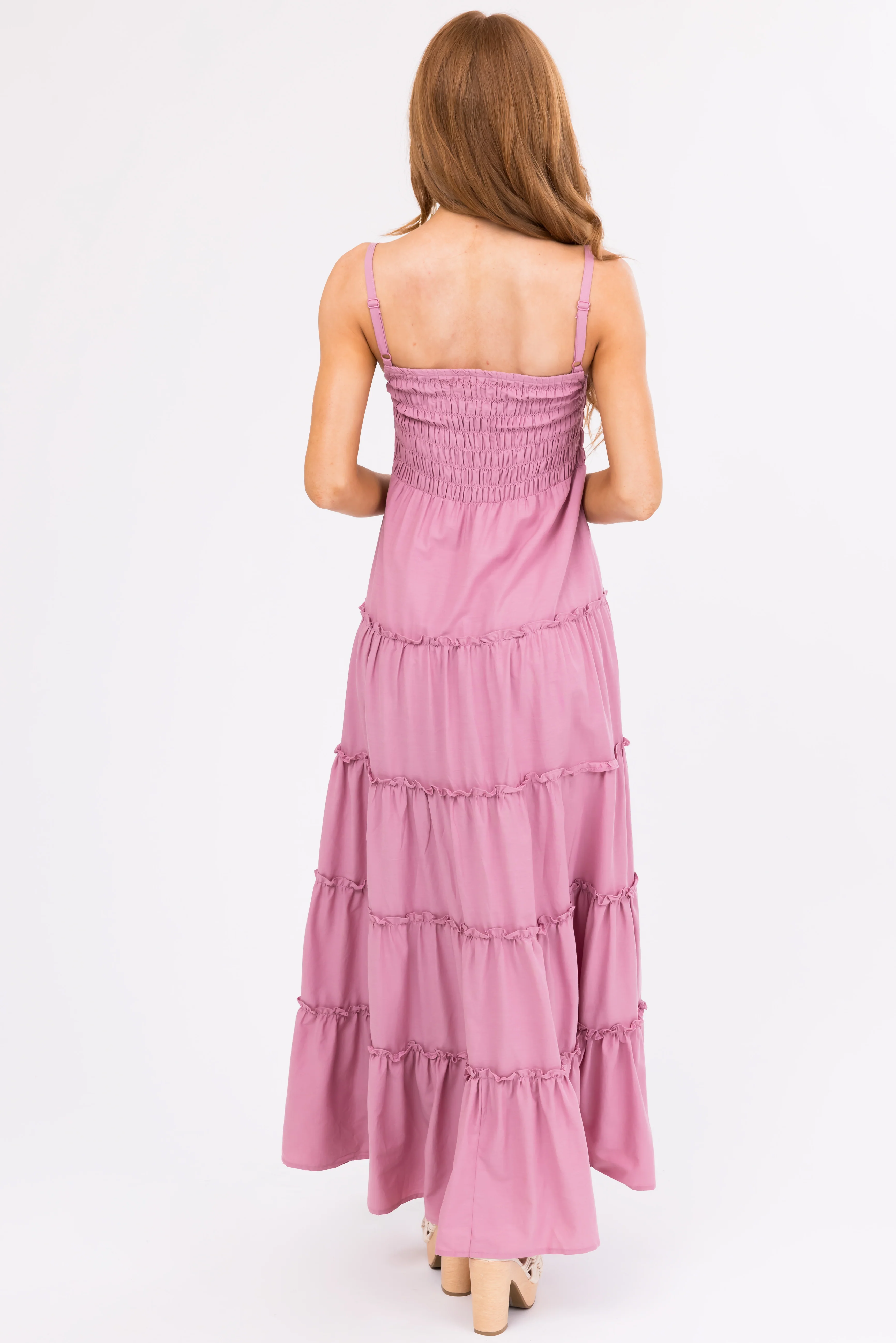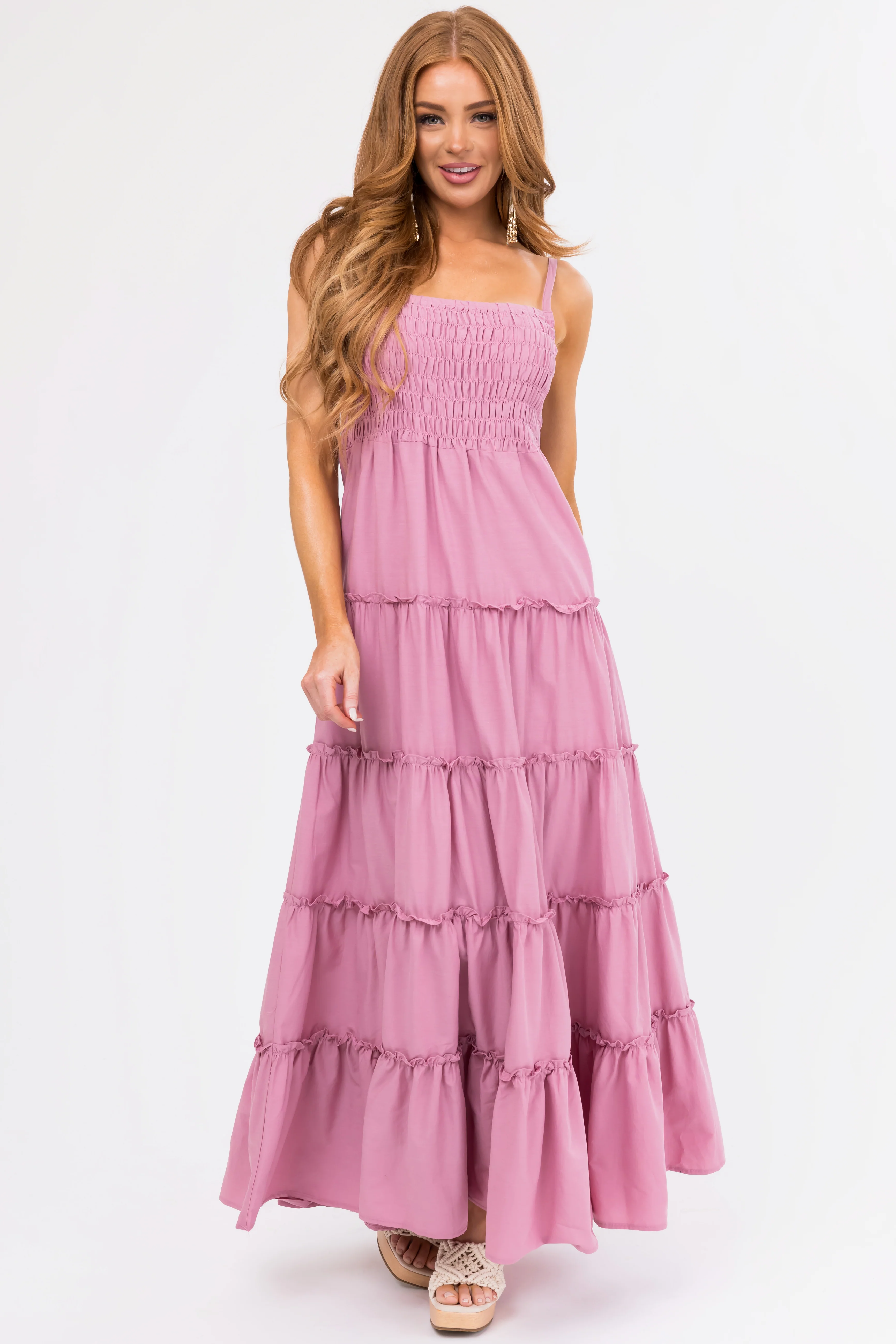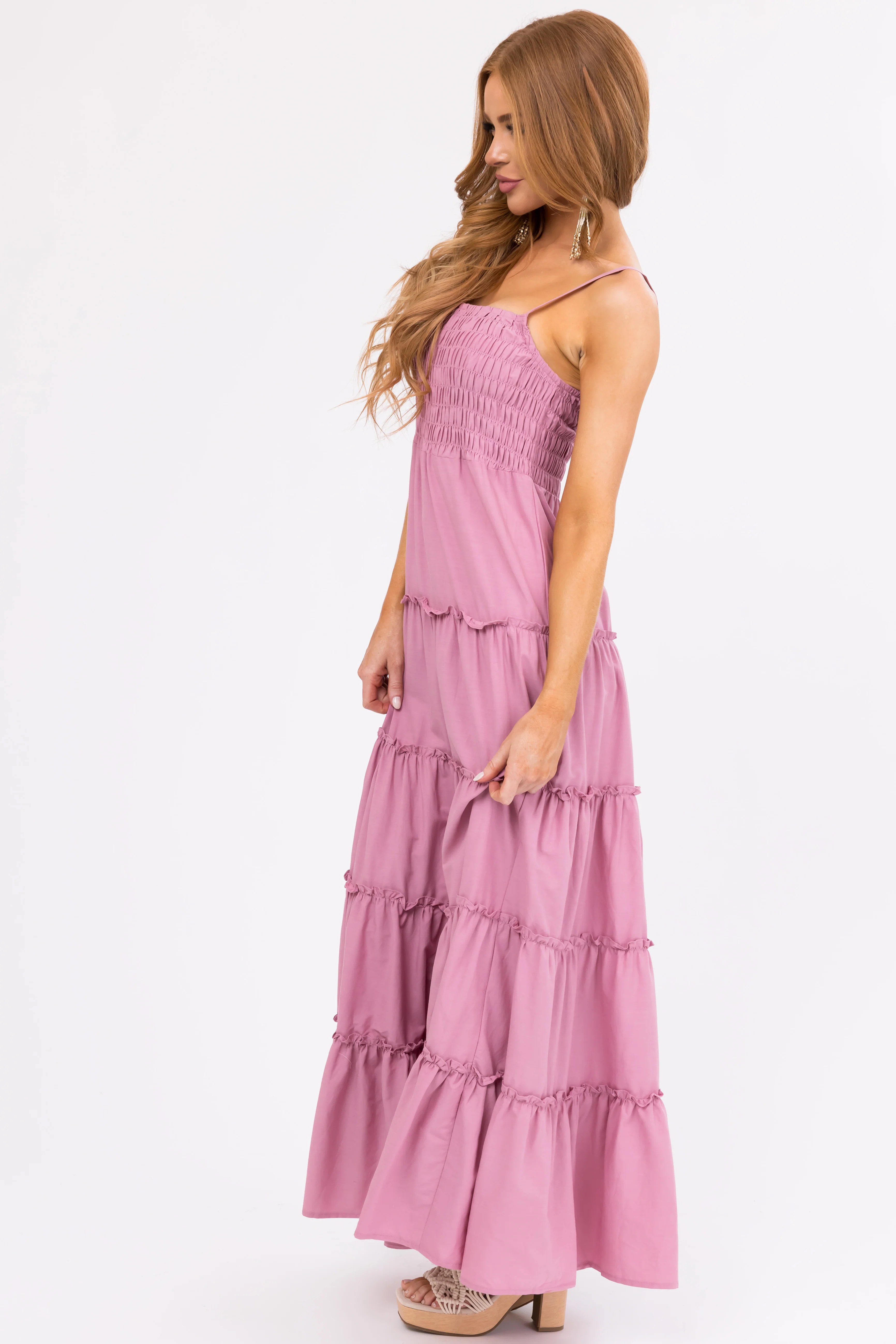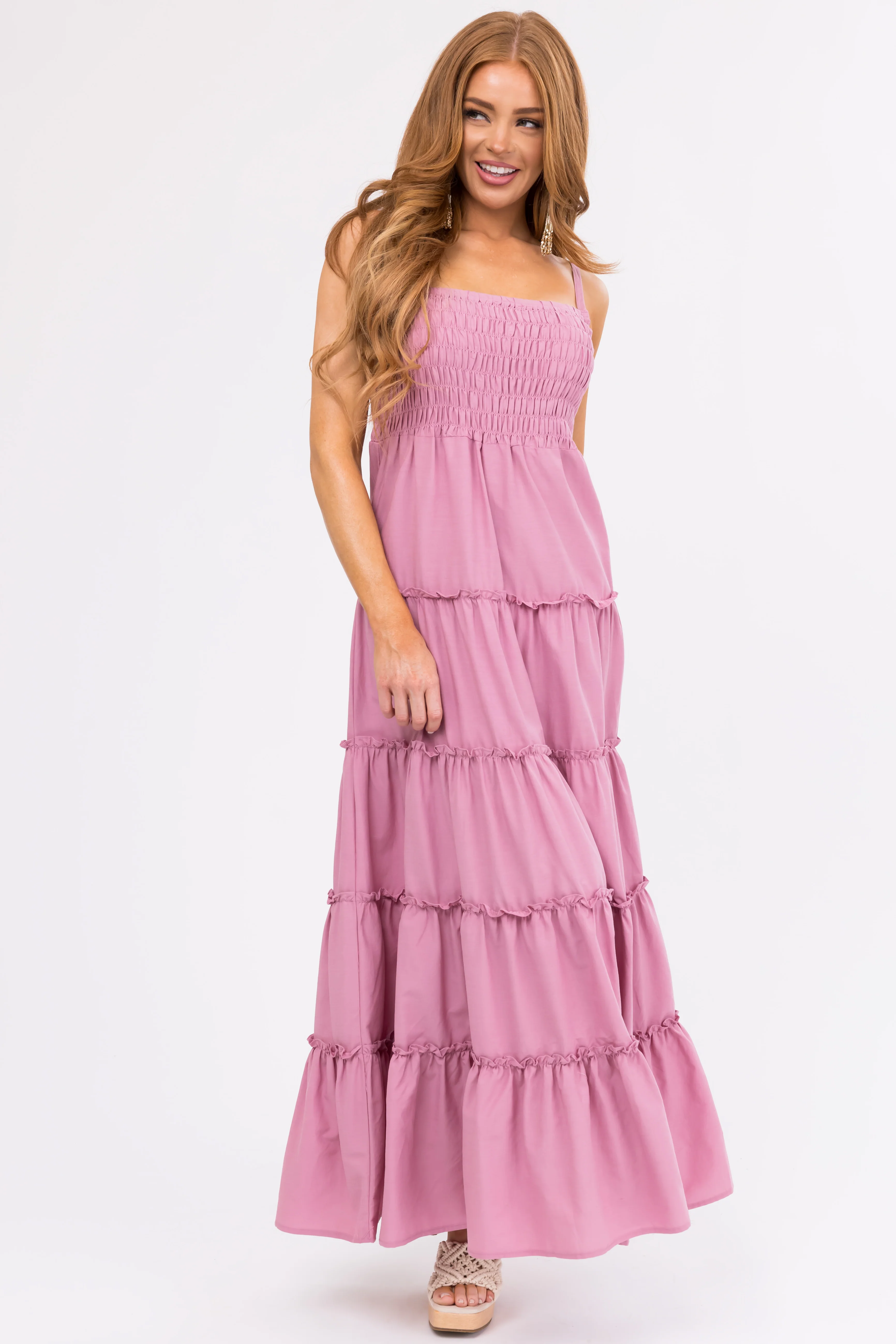 Mauve Smocked Top Tiered Maxi Dress