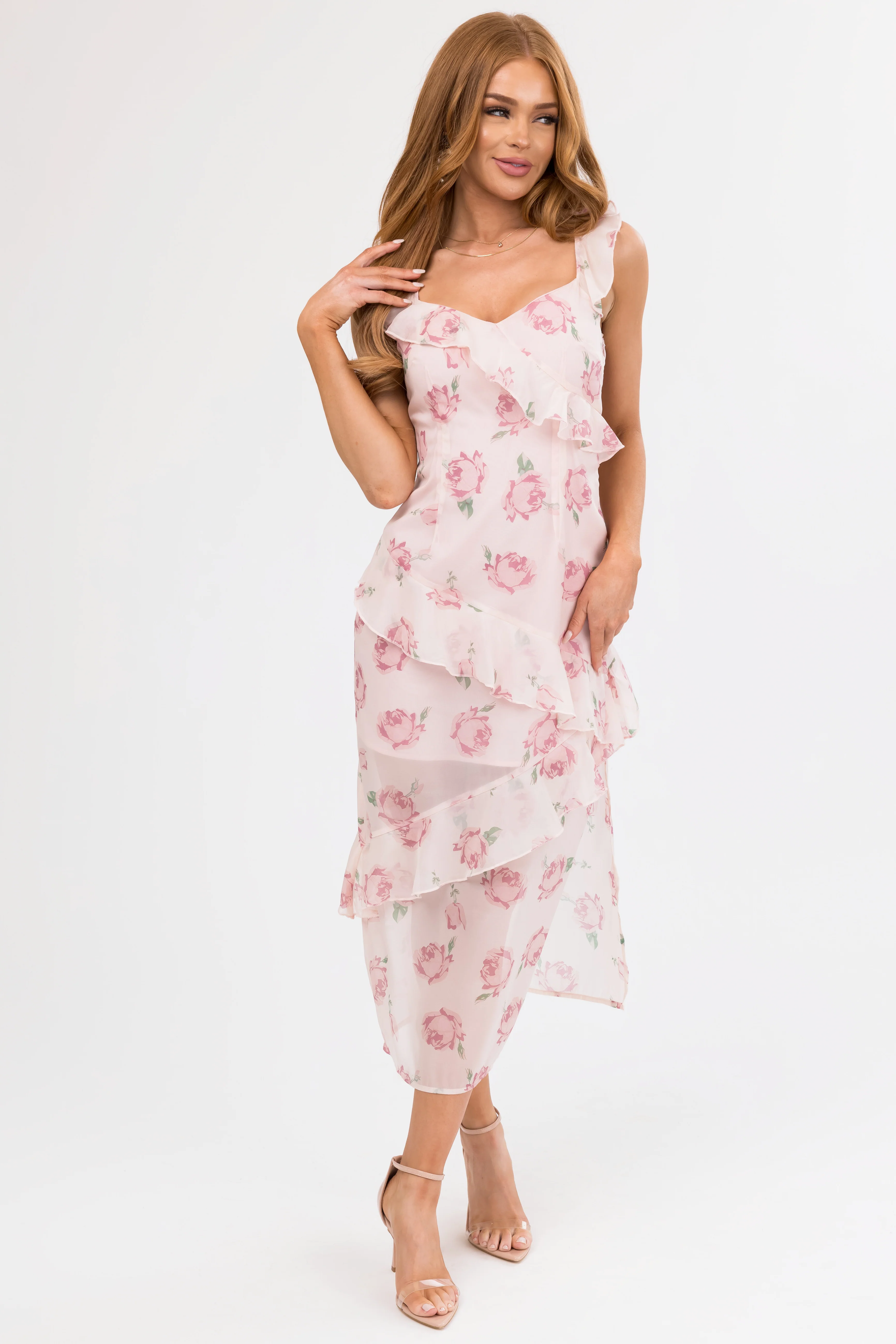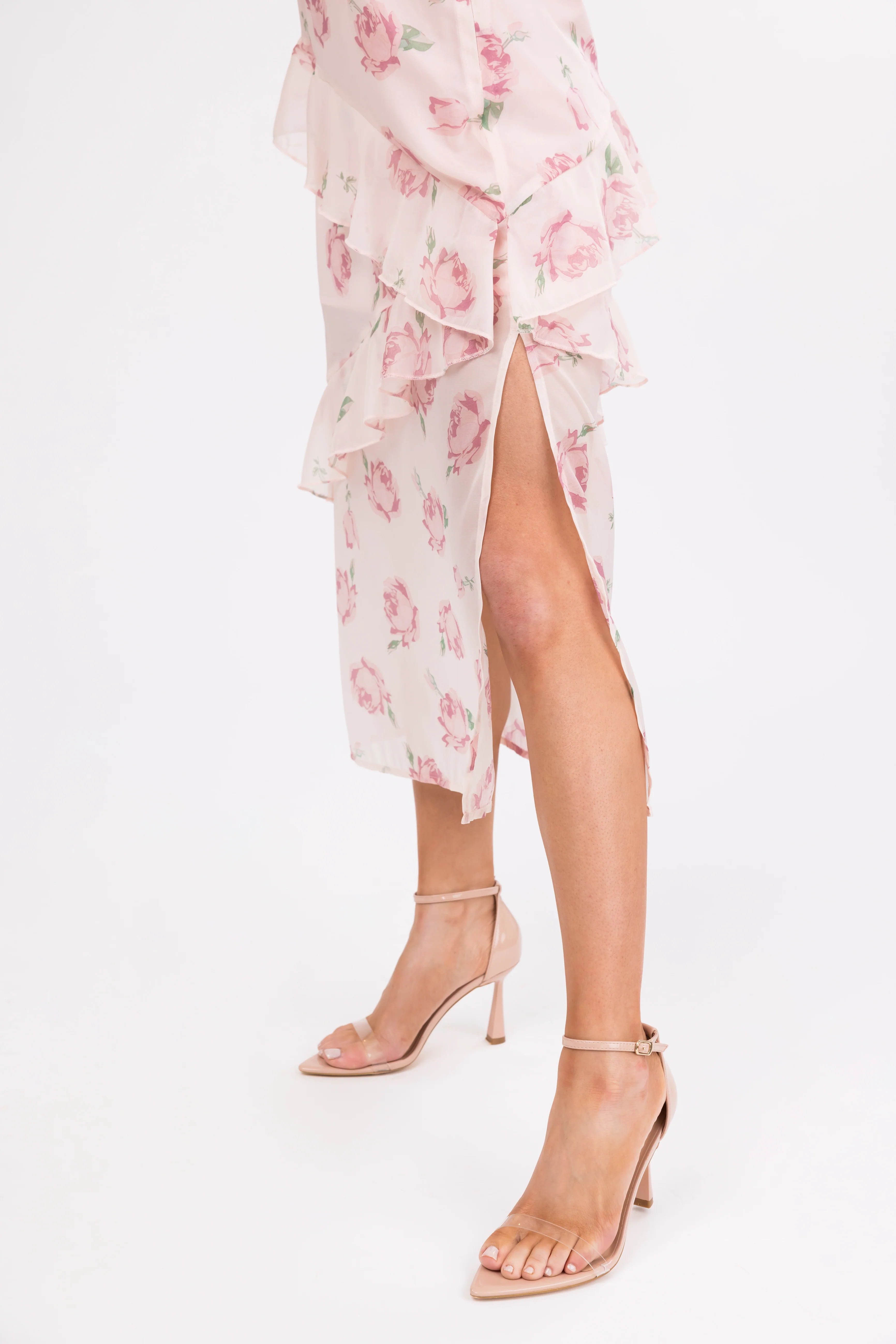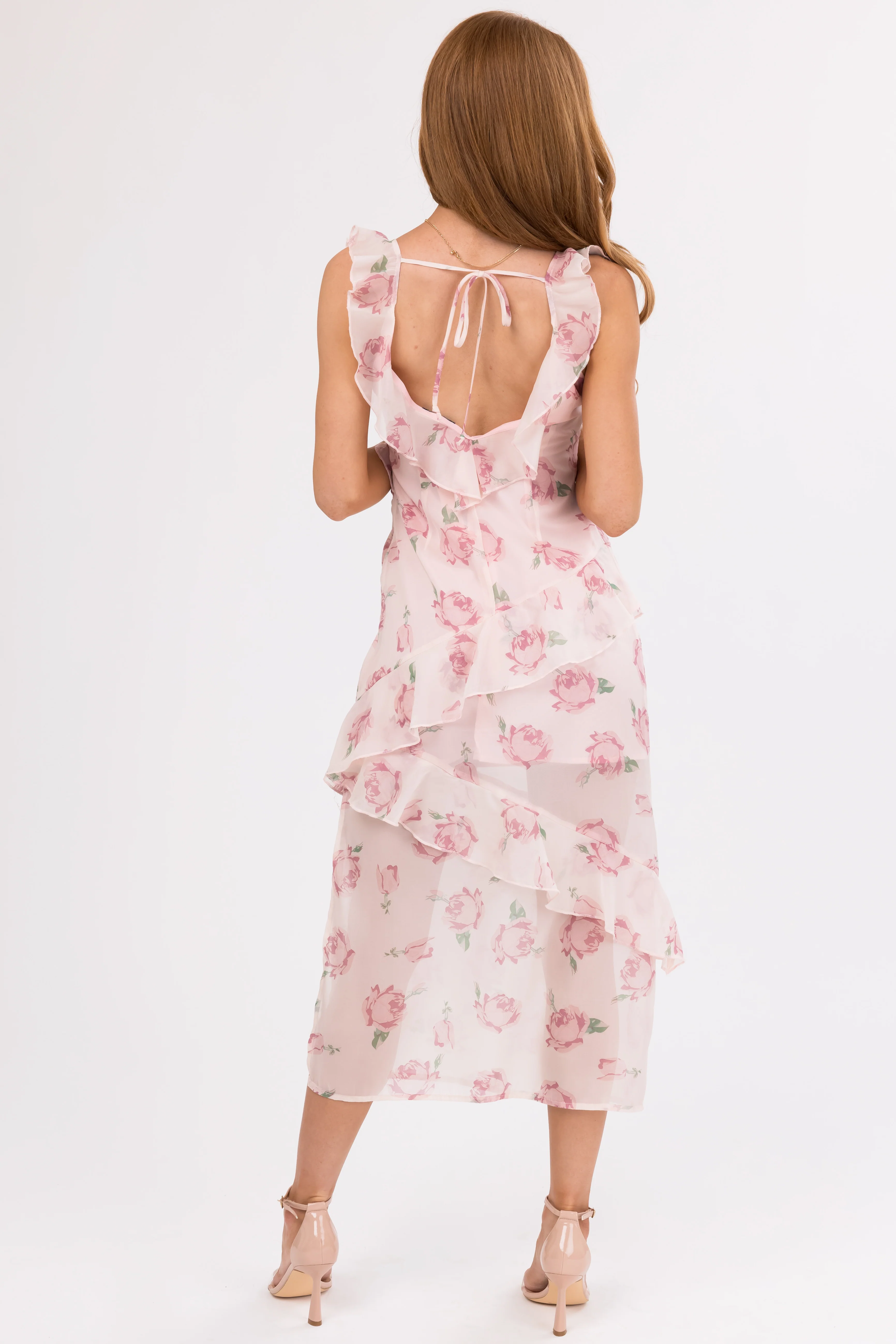 Cherry Blossom Pleated Ruffle Tiered Midi Dress