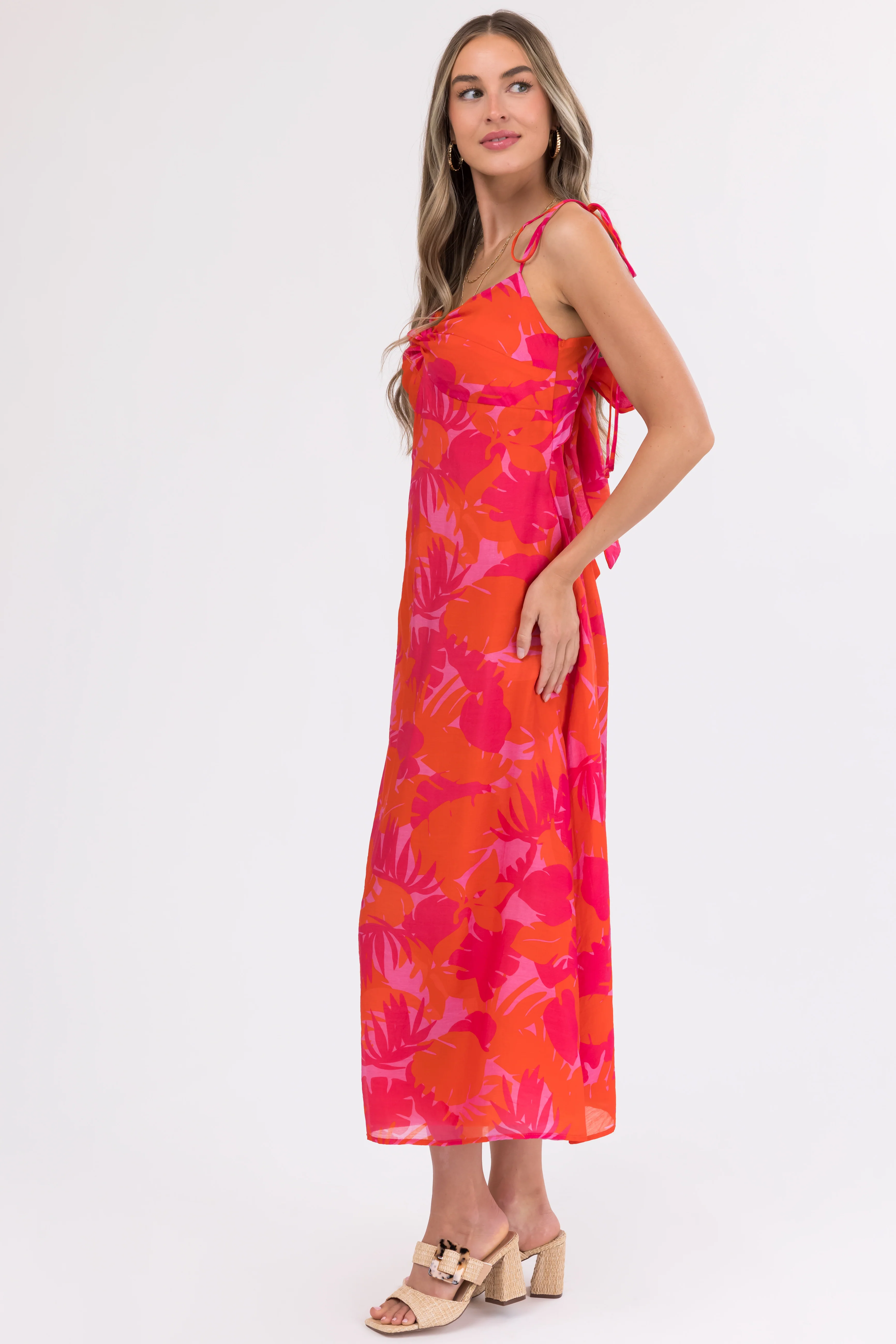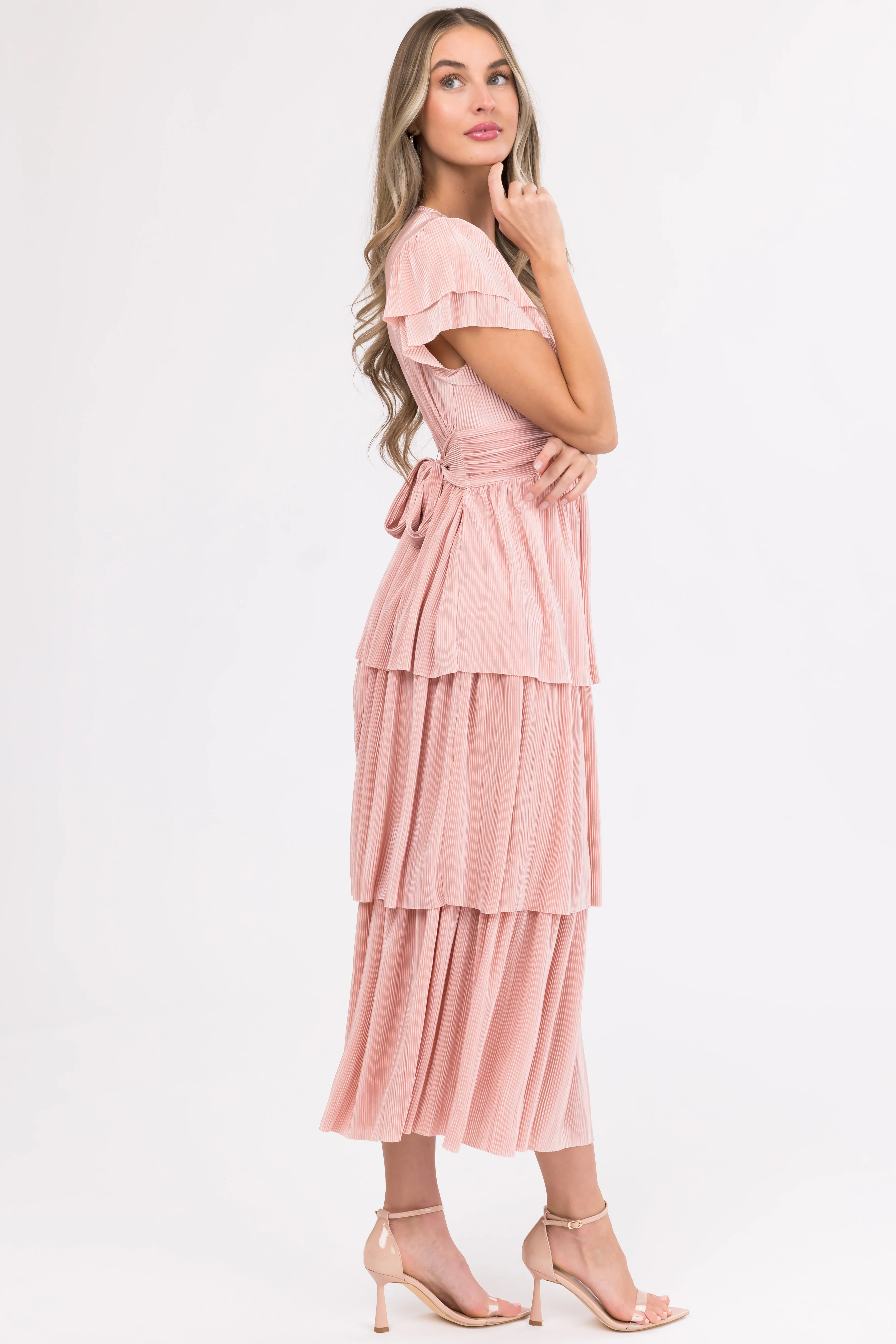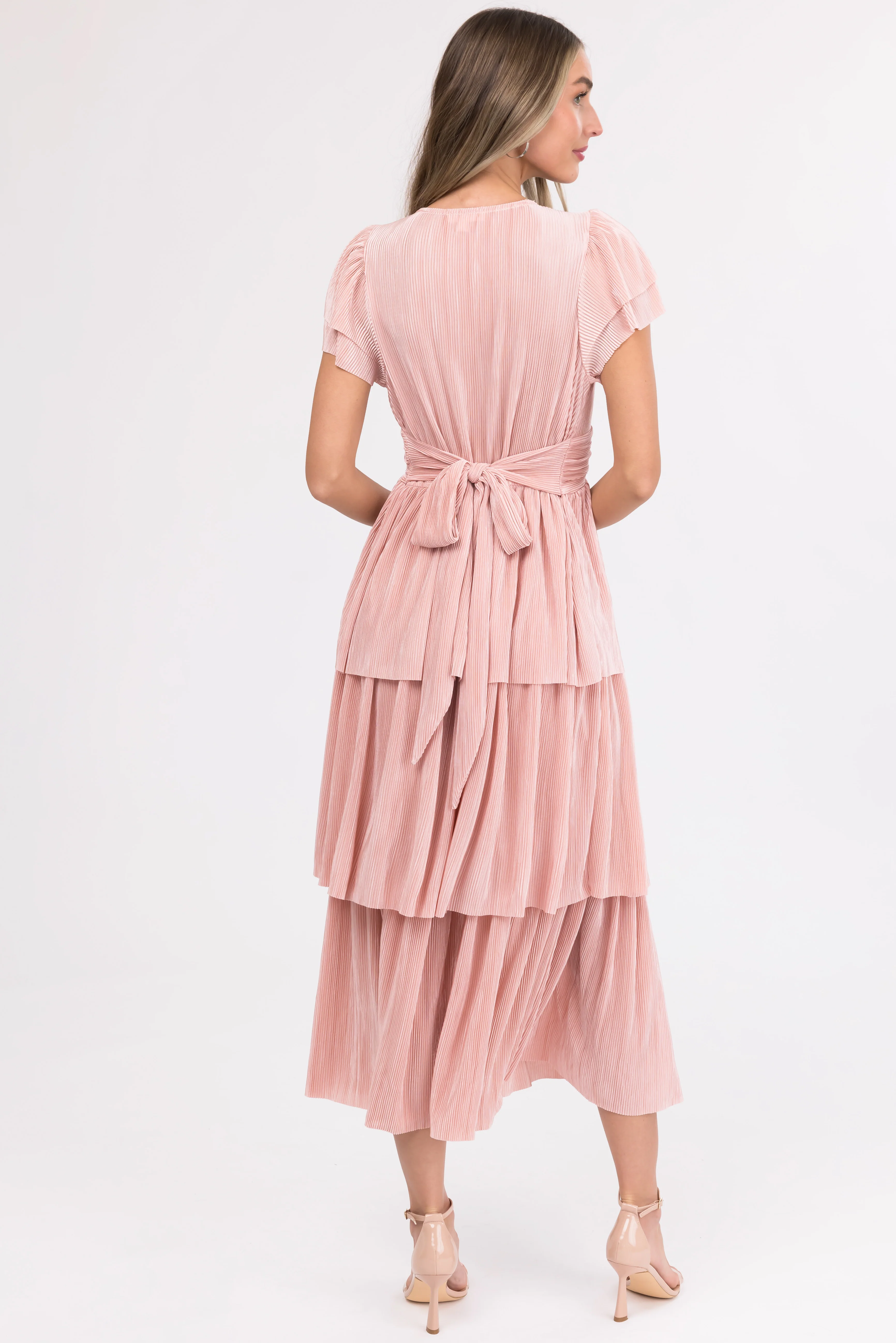 Cherry Blossom Pleated Ruffle Tiered Midi Dress