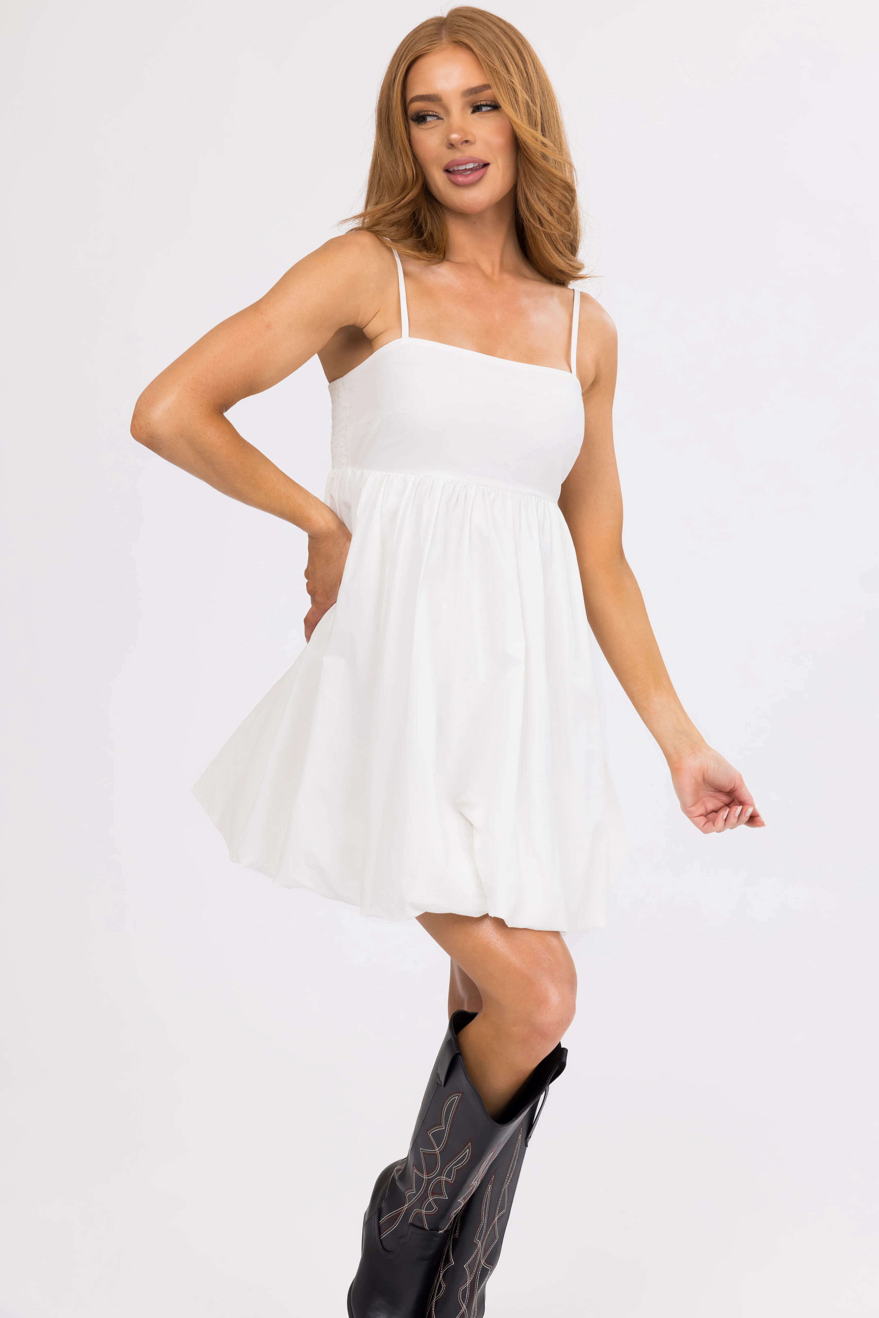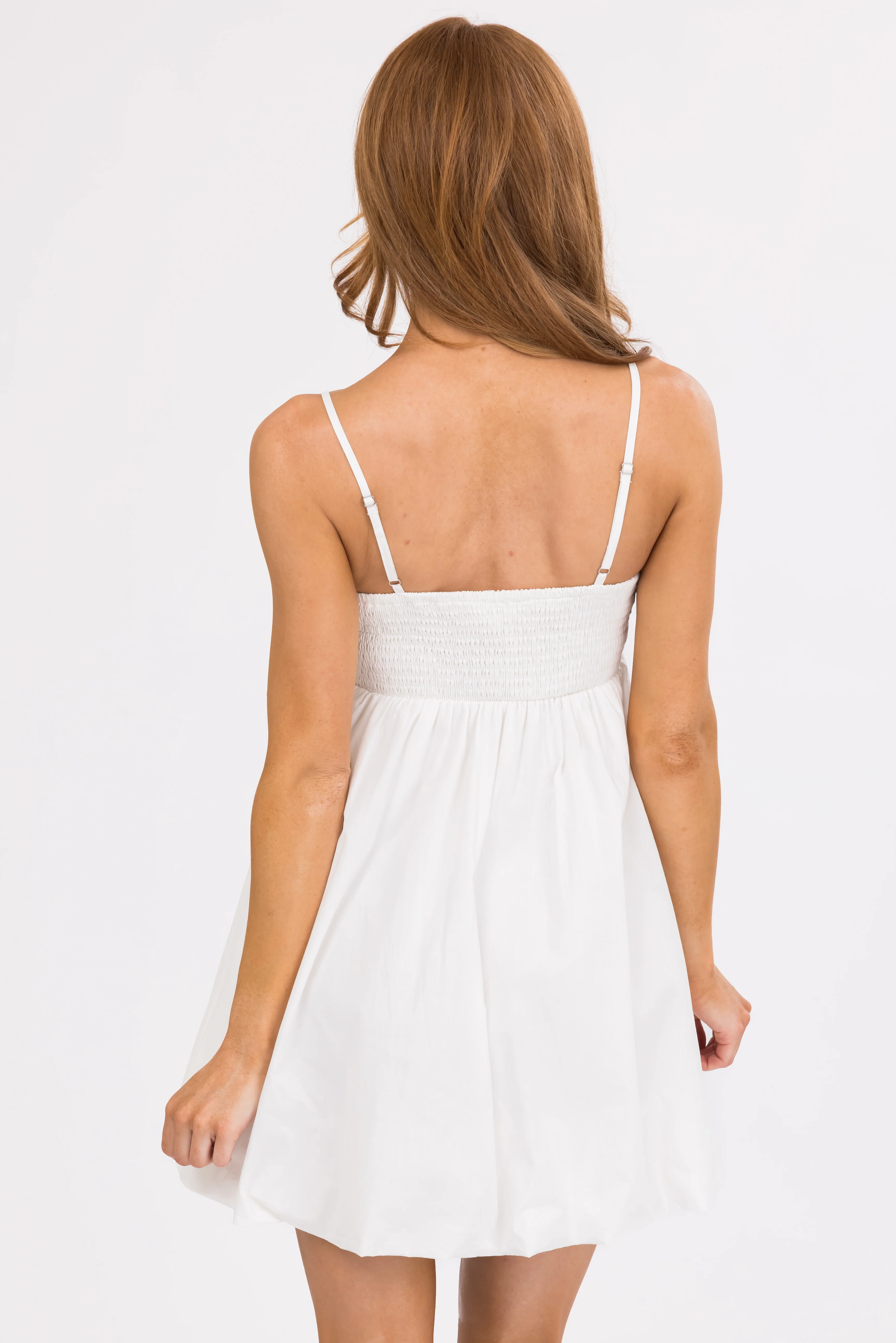 Ivory Sleeveless Babydoll Smocked Mini Dress