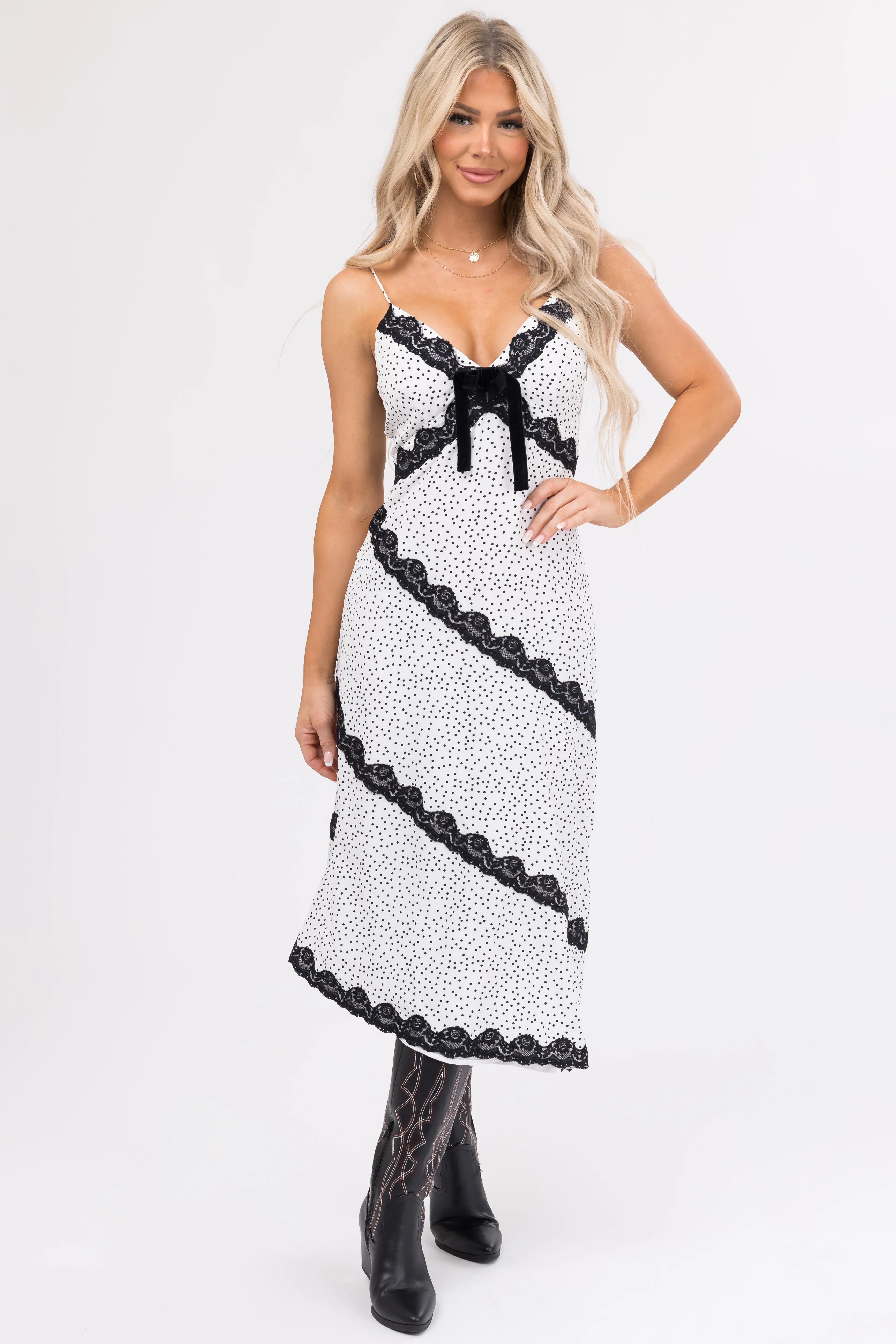Black and White Polka Dot Lace Midi Dress