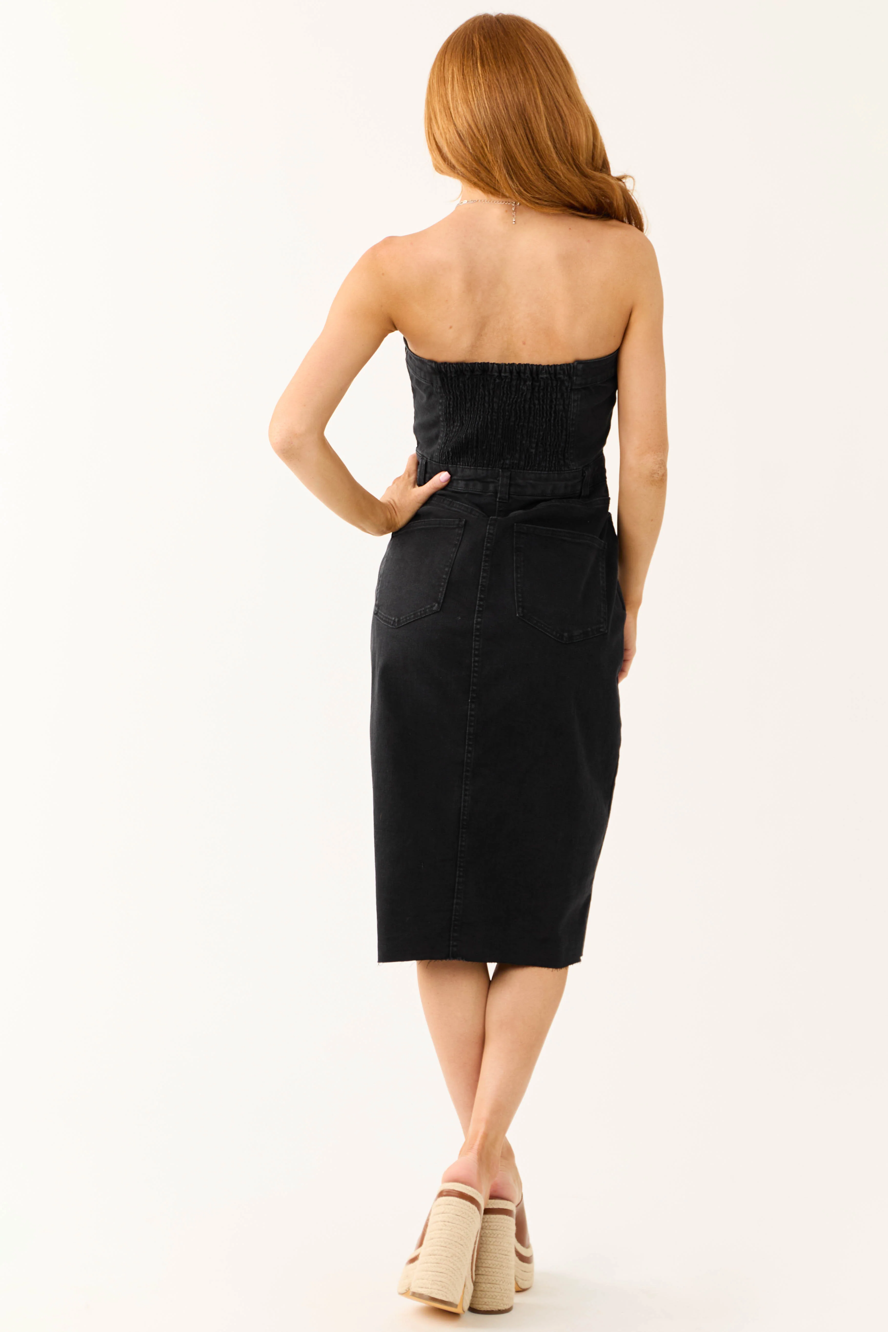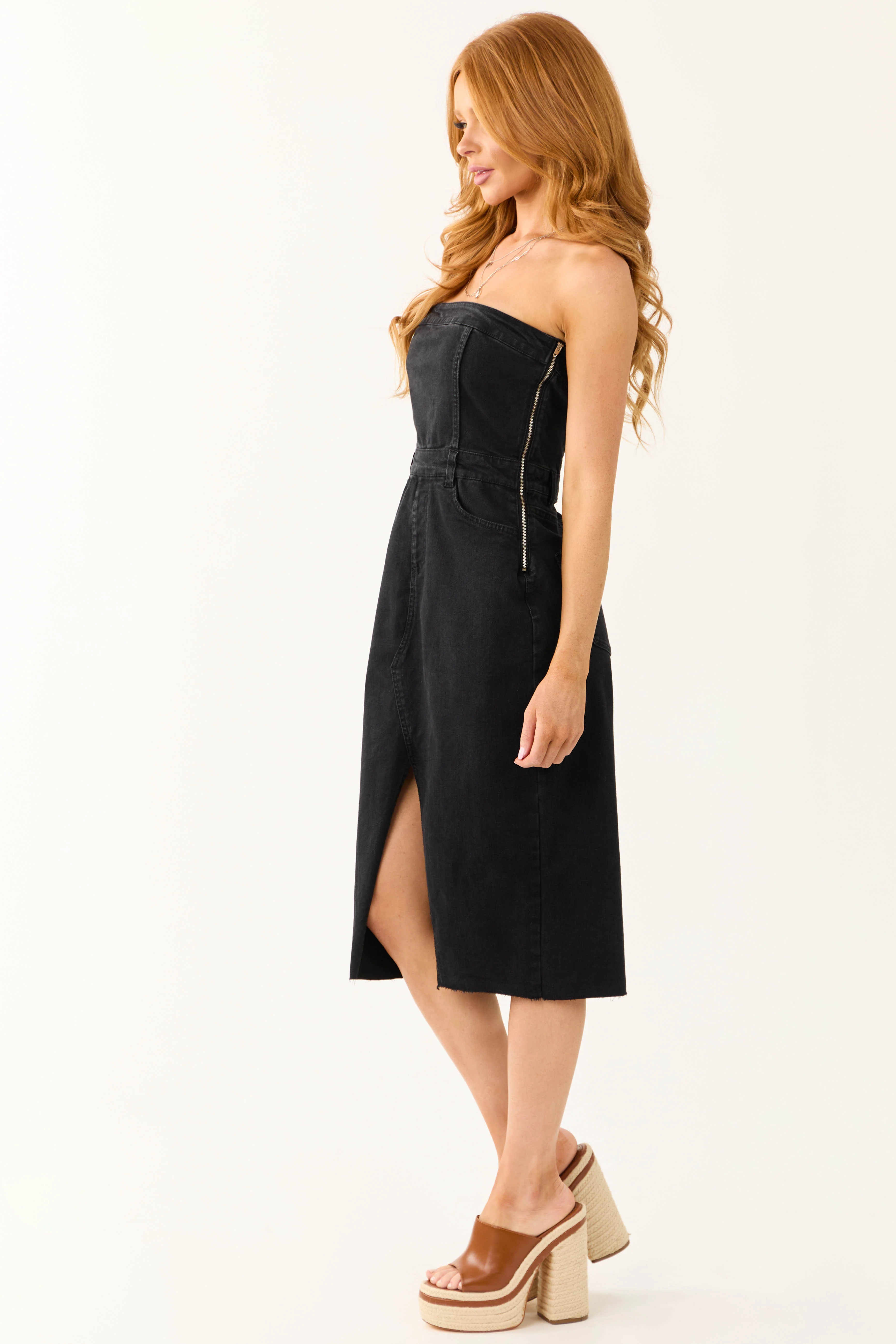 Black Denim Strapless Dress with Slit