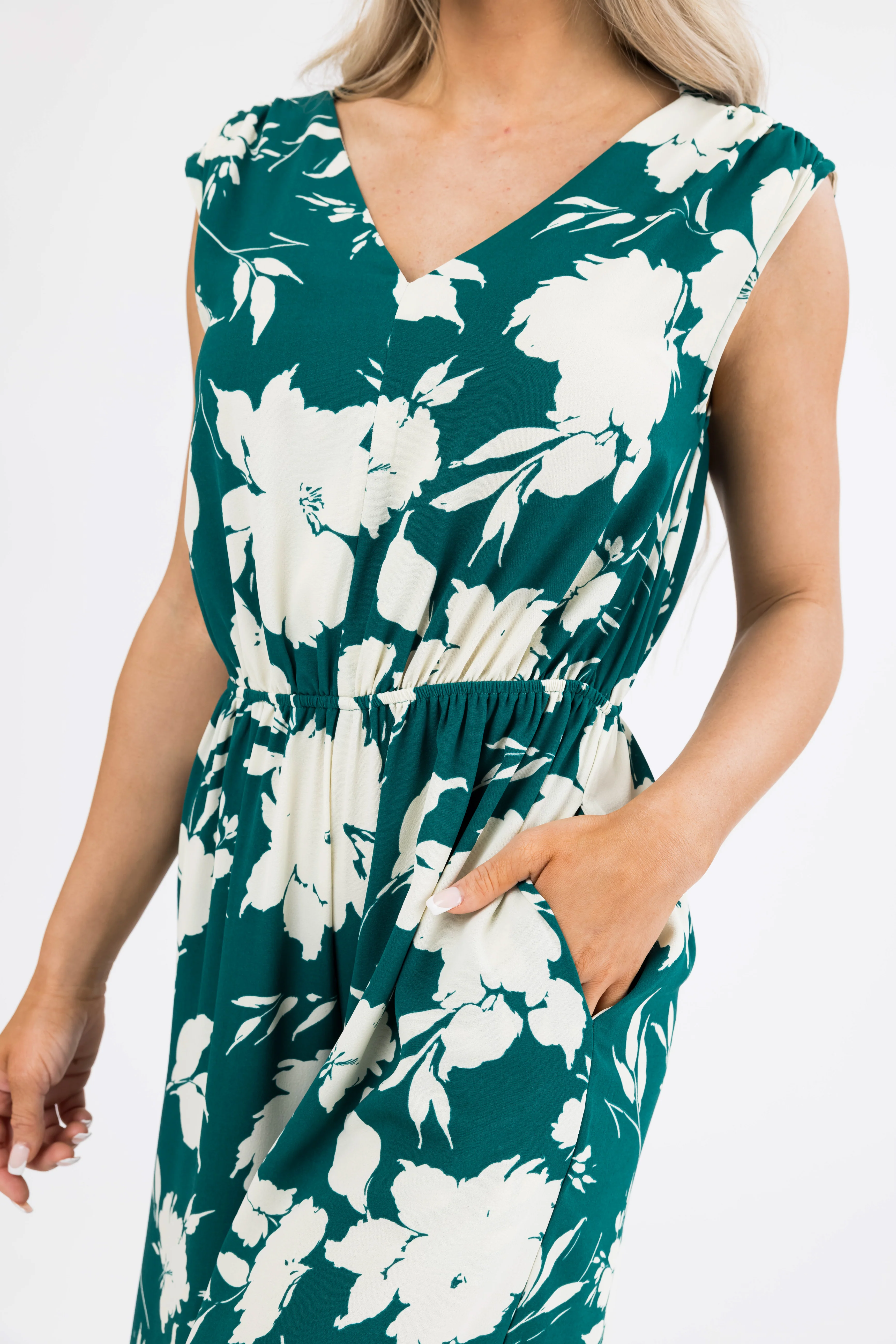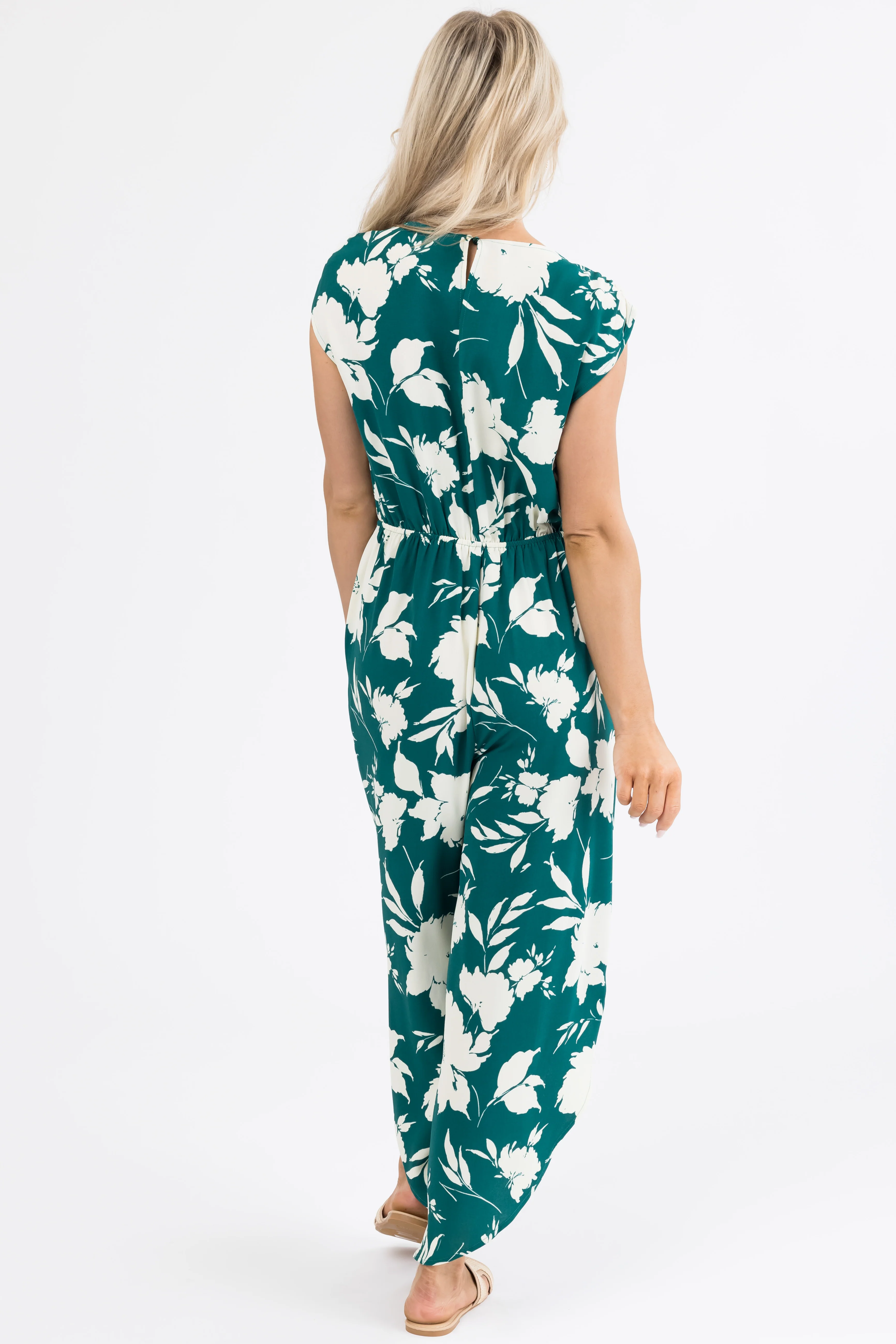 Pine and Cream Floral Print V Neck Jumpsuit