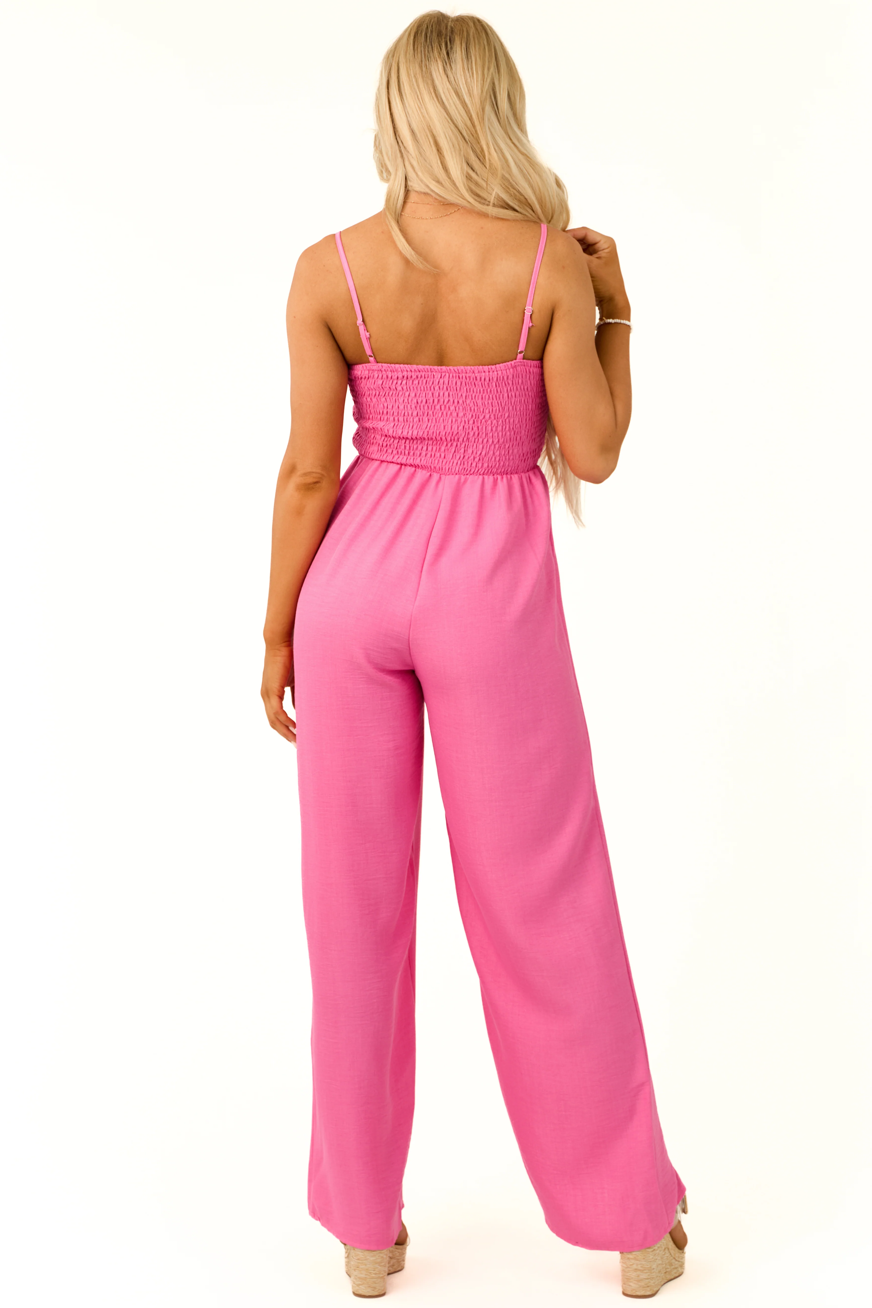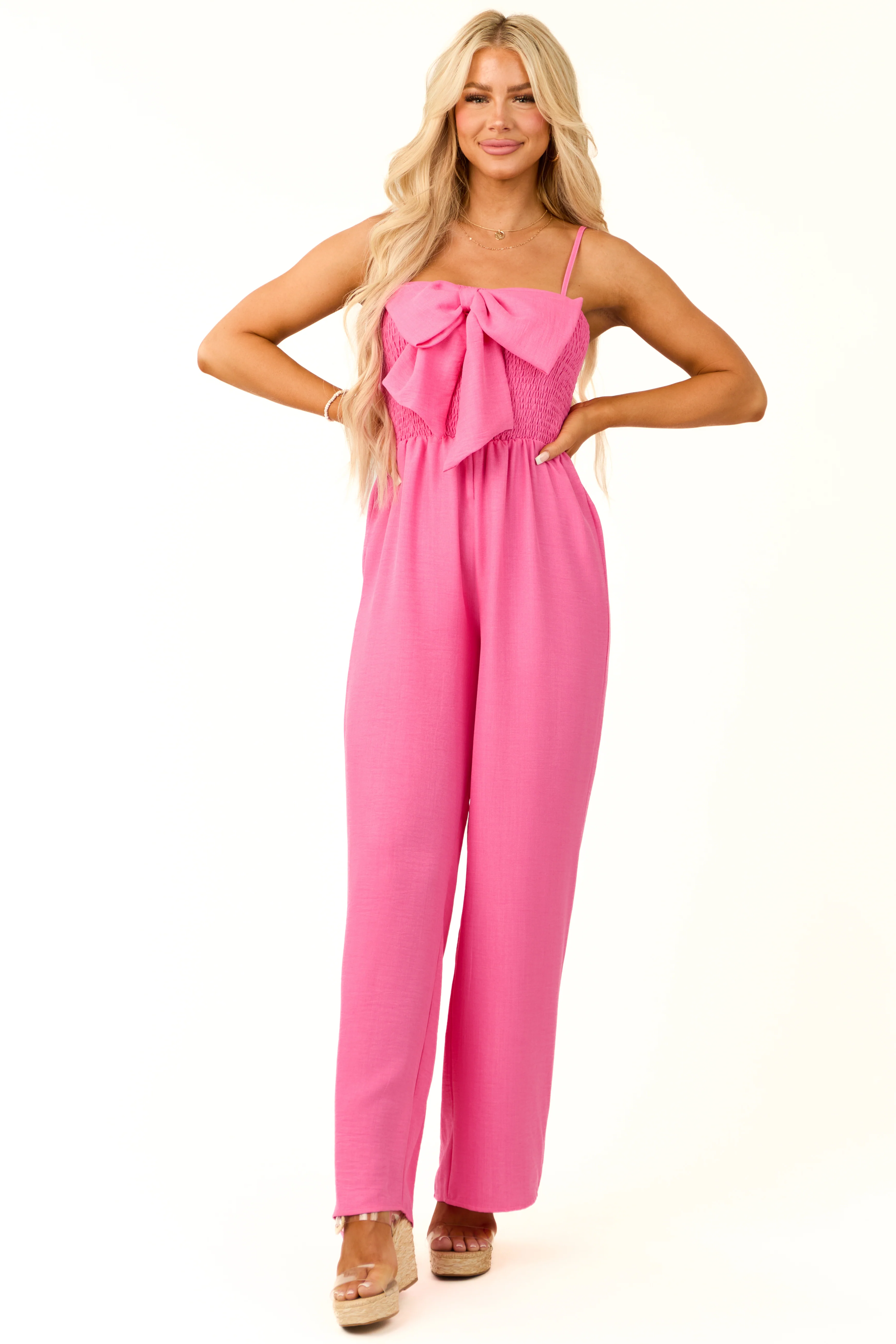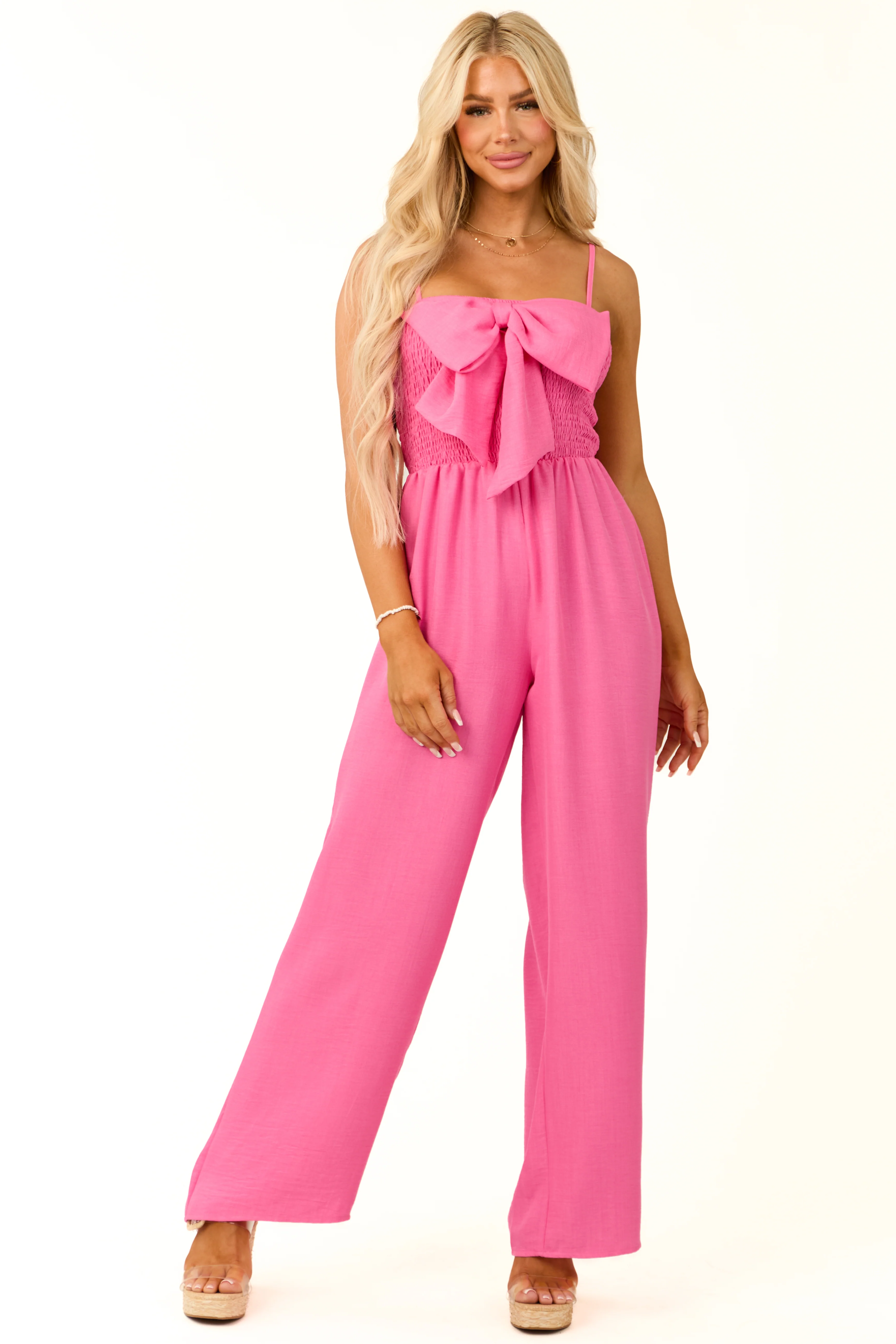 Bubblegum Bow Front Smocked Jumpsuit
