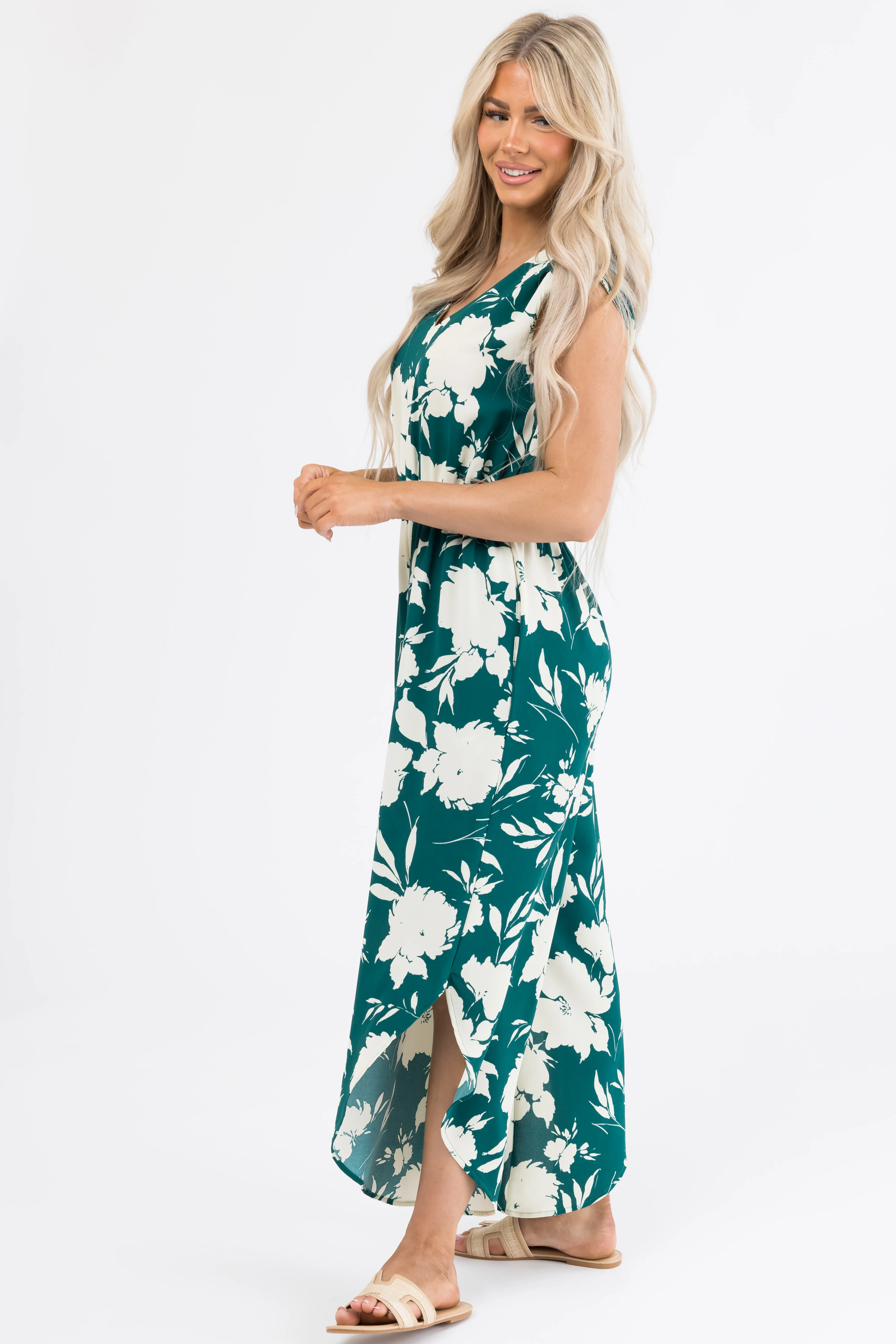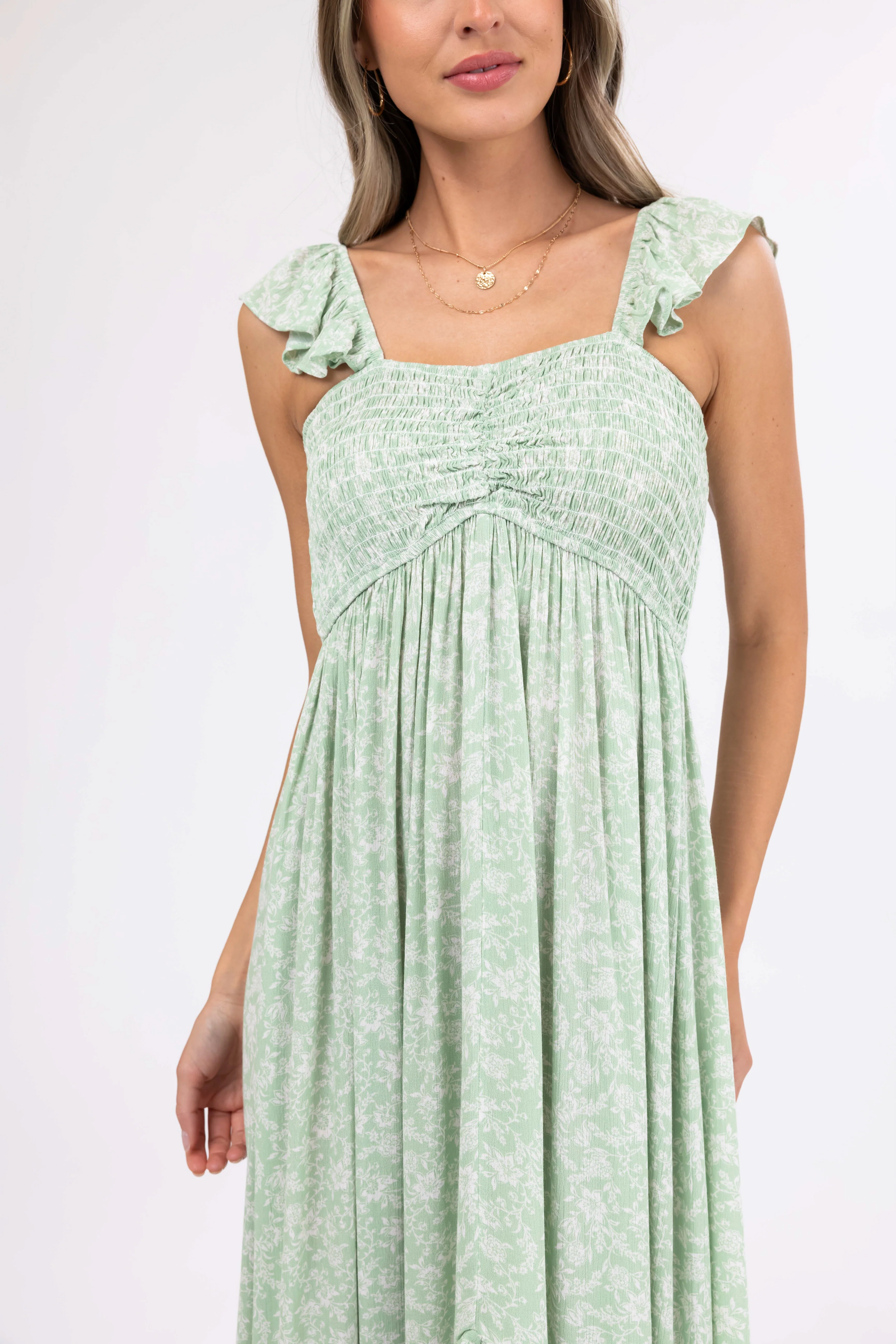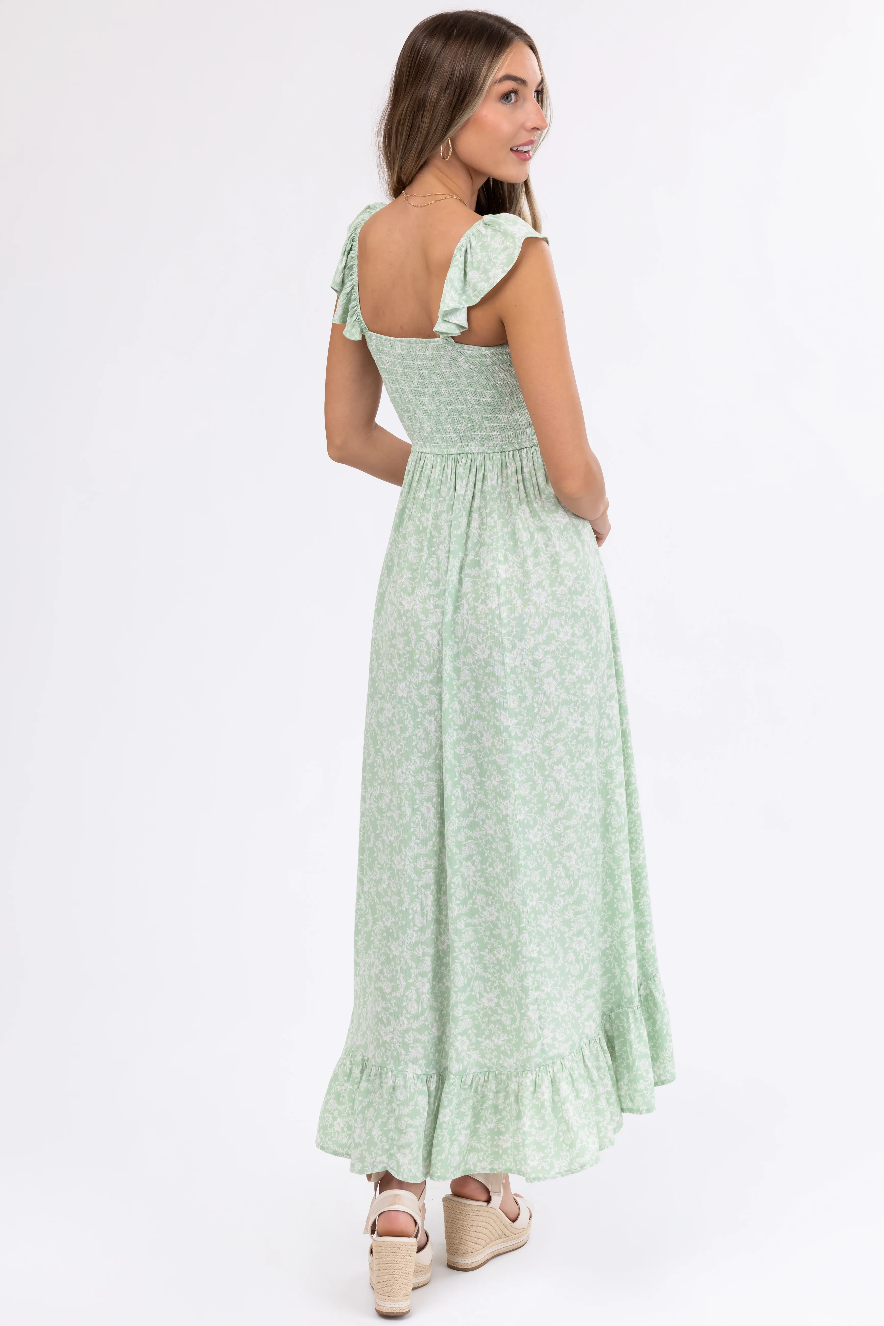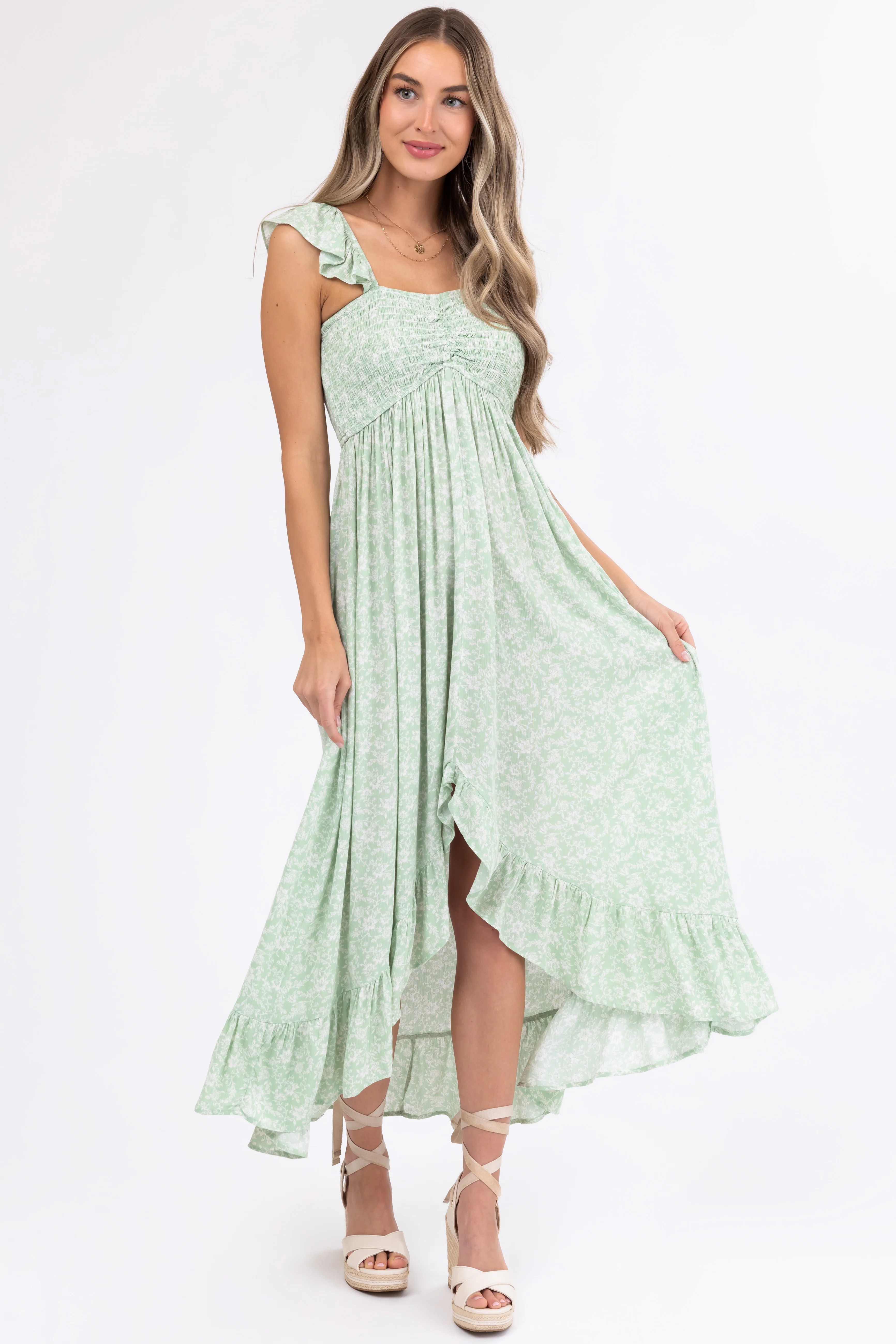 Sage Floral Print High Low Maxi Dress