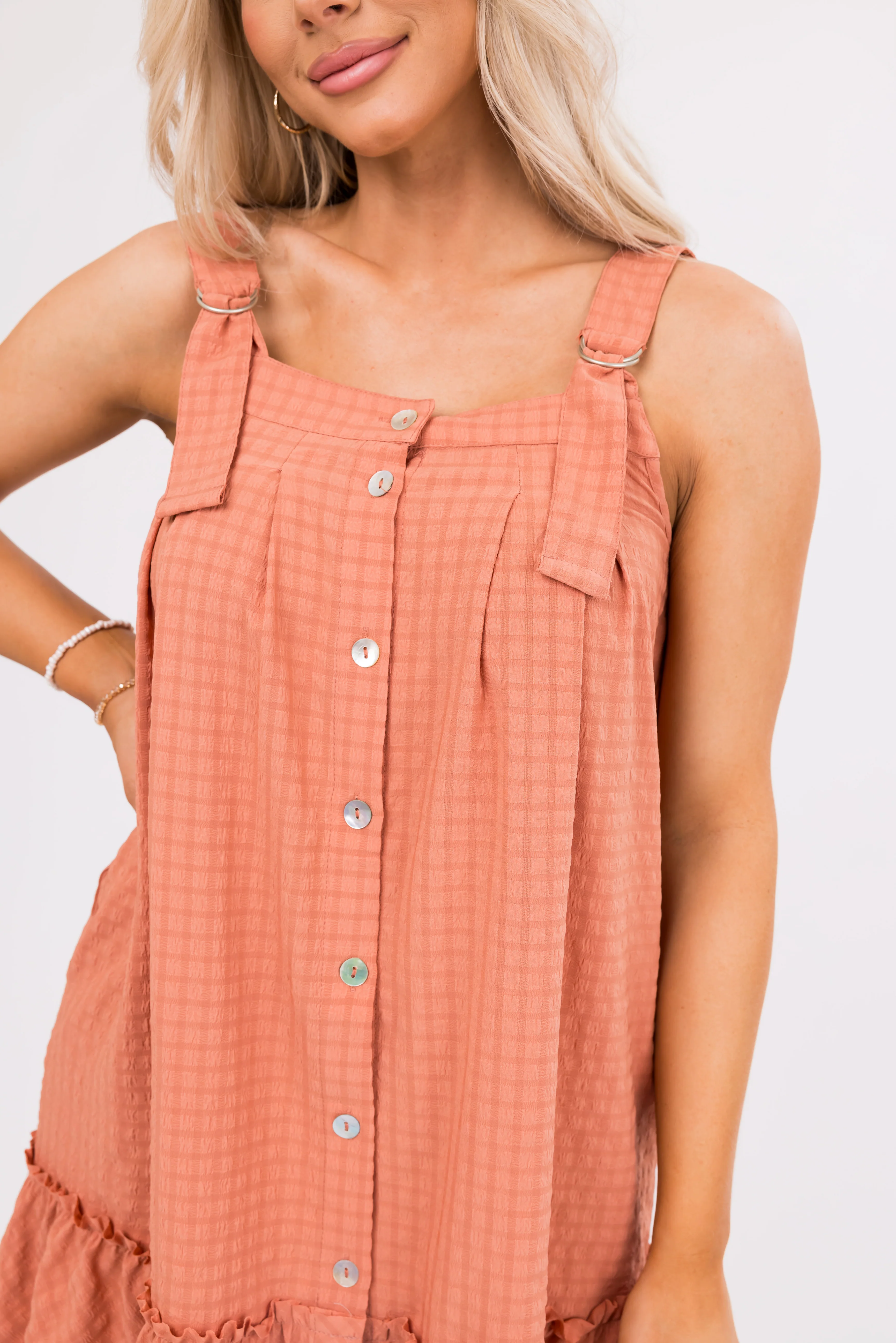 Terracotta Plaid Textured Flowy Mini Dress