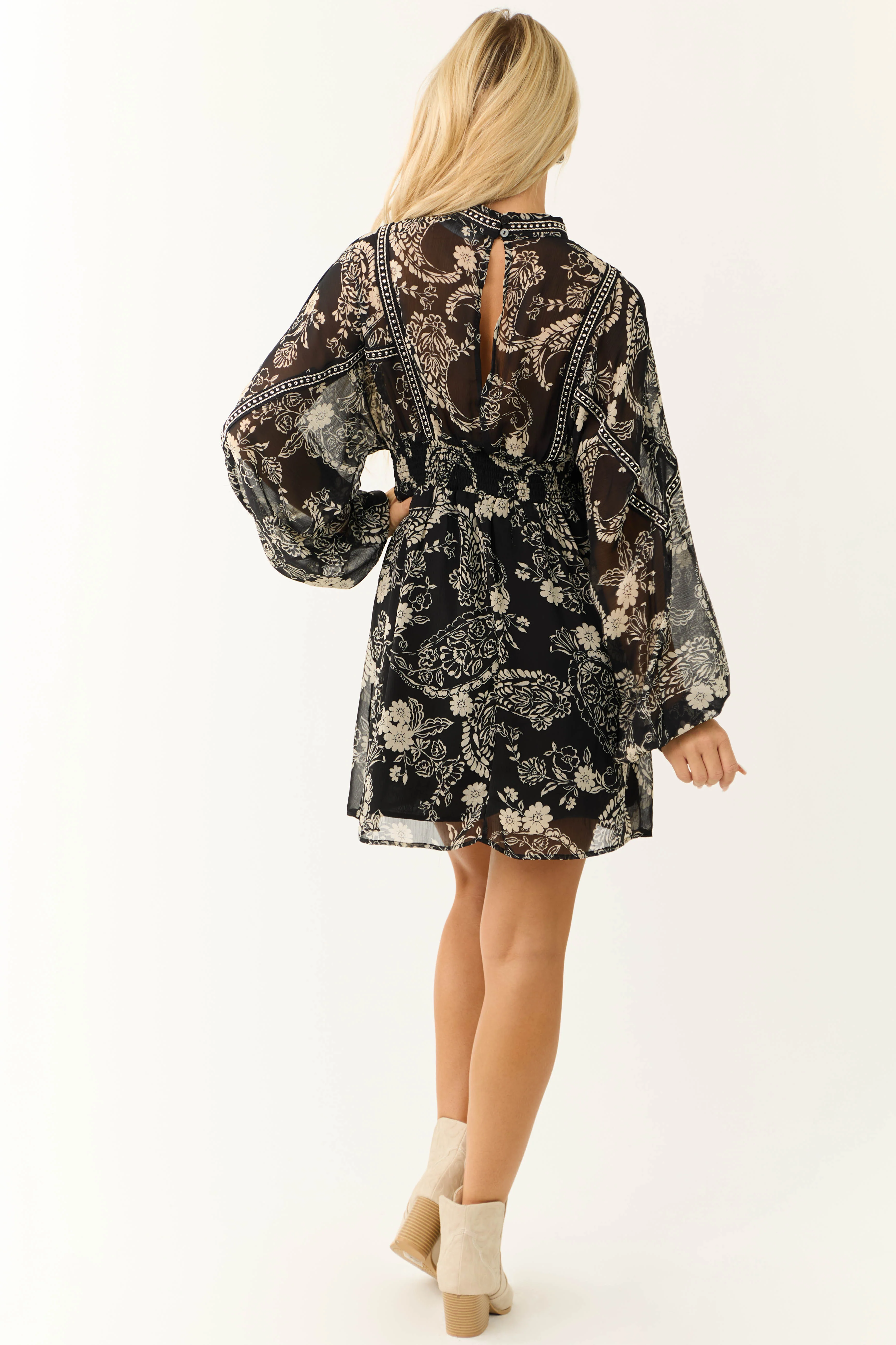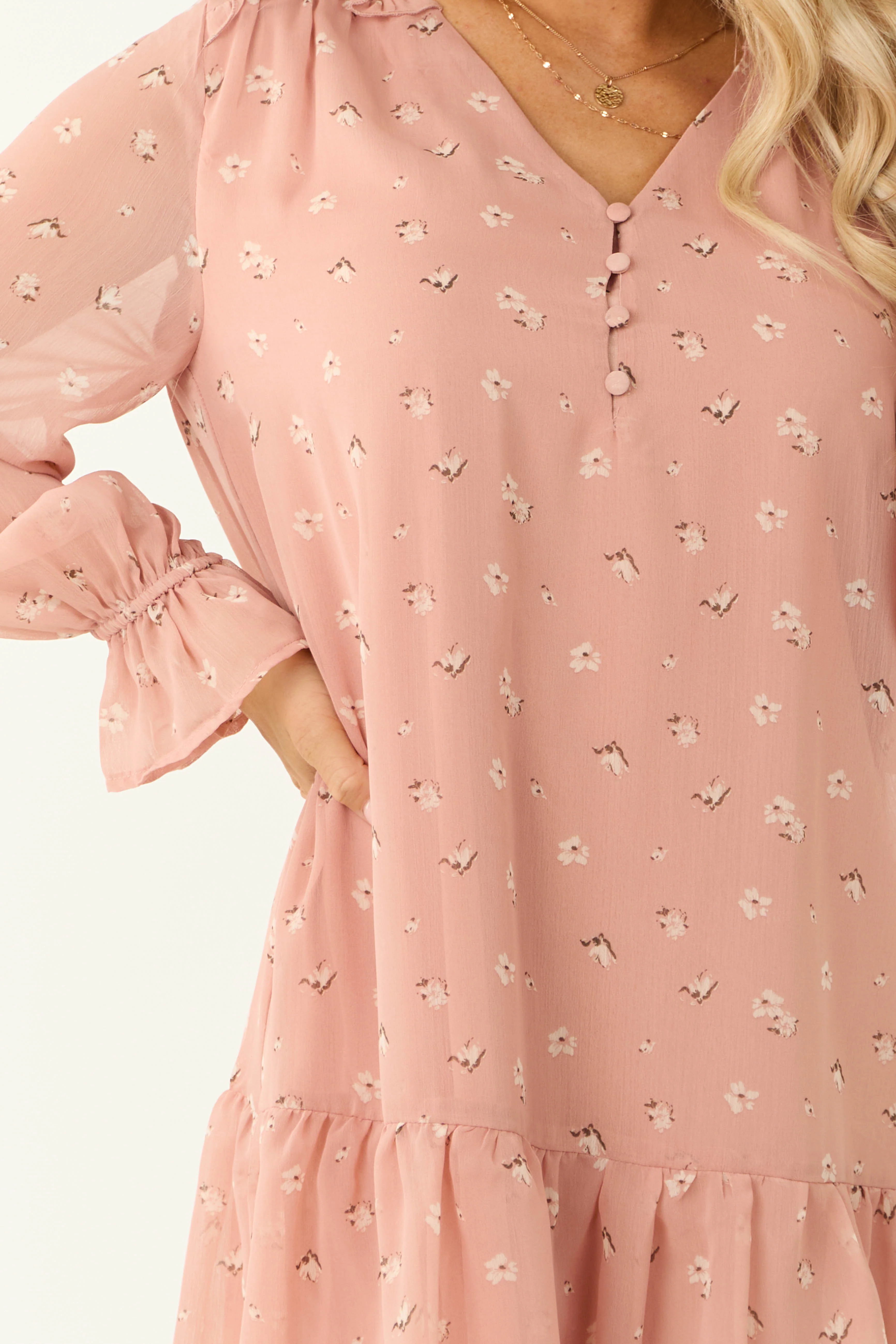 Tea Rose Floral Print V Neck Chiffon Short Dress