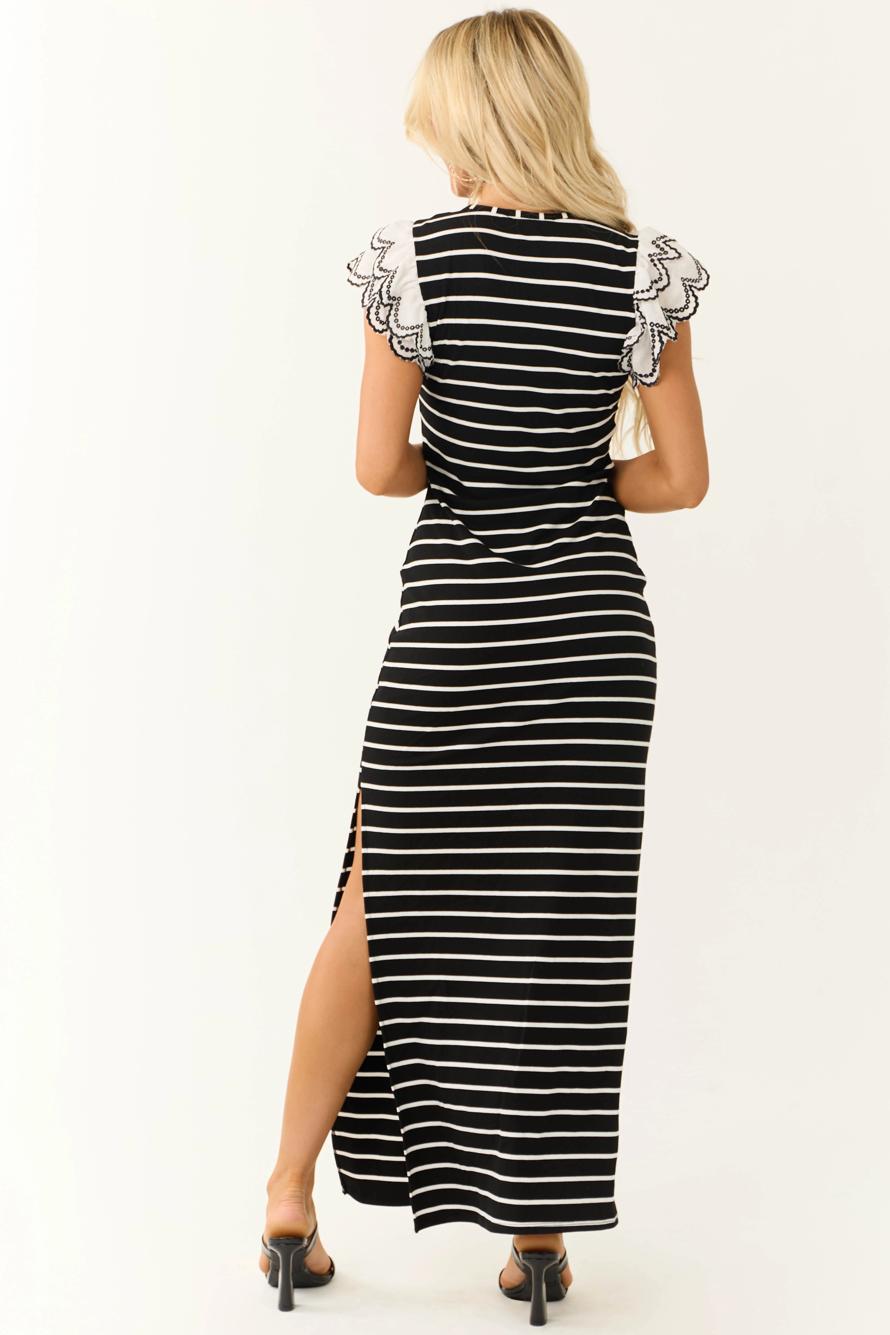 Black and White Striped Ruffle Sleeve Maxi Dress