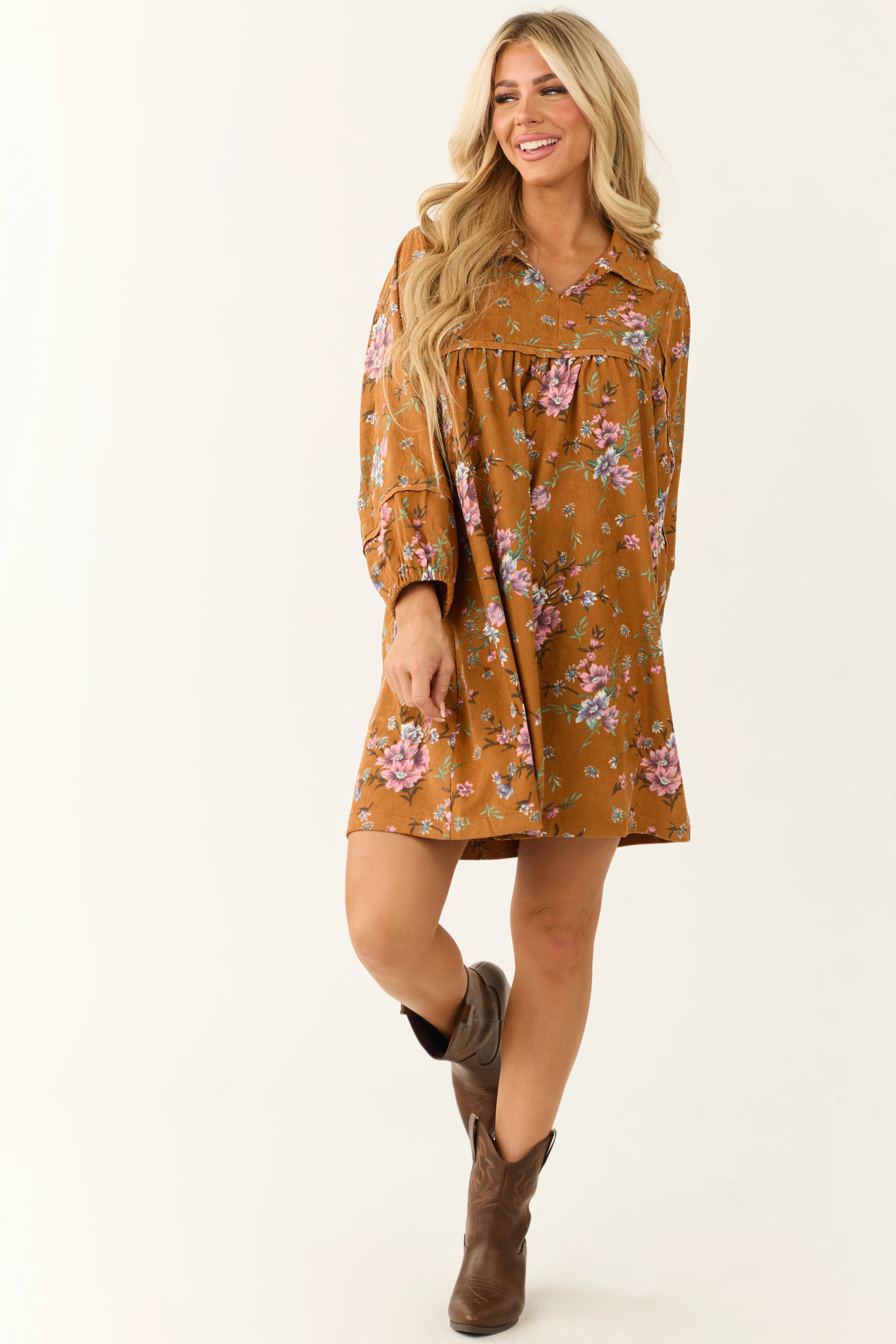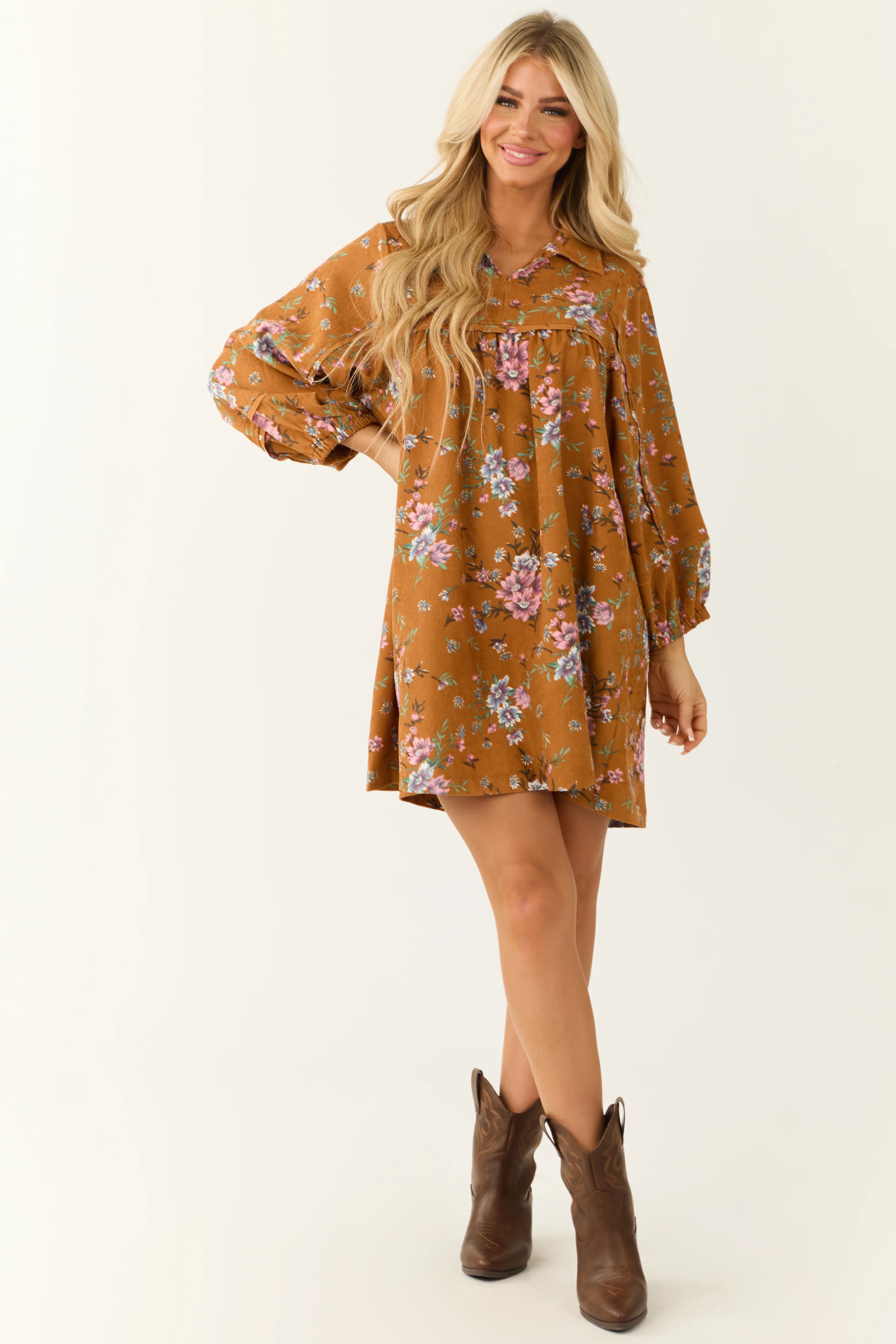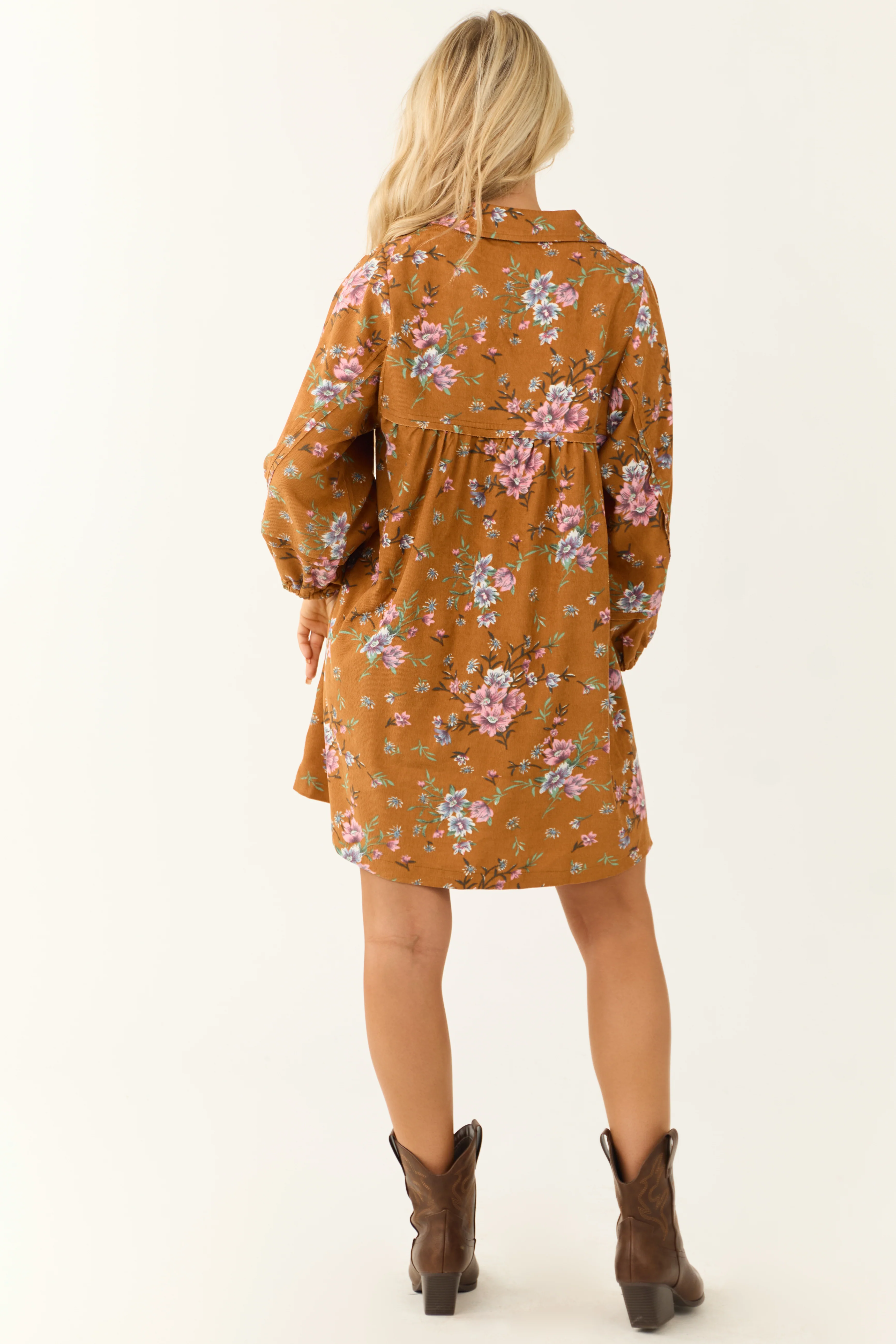 Sedona Floral Print Corduroy Collared Mini Dress