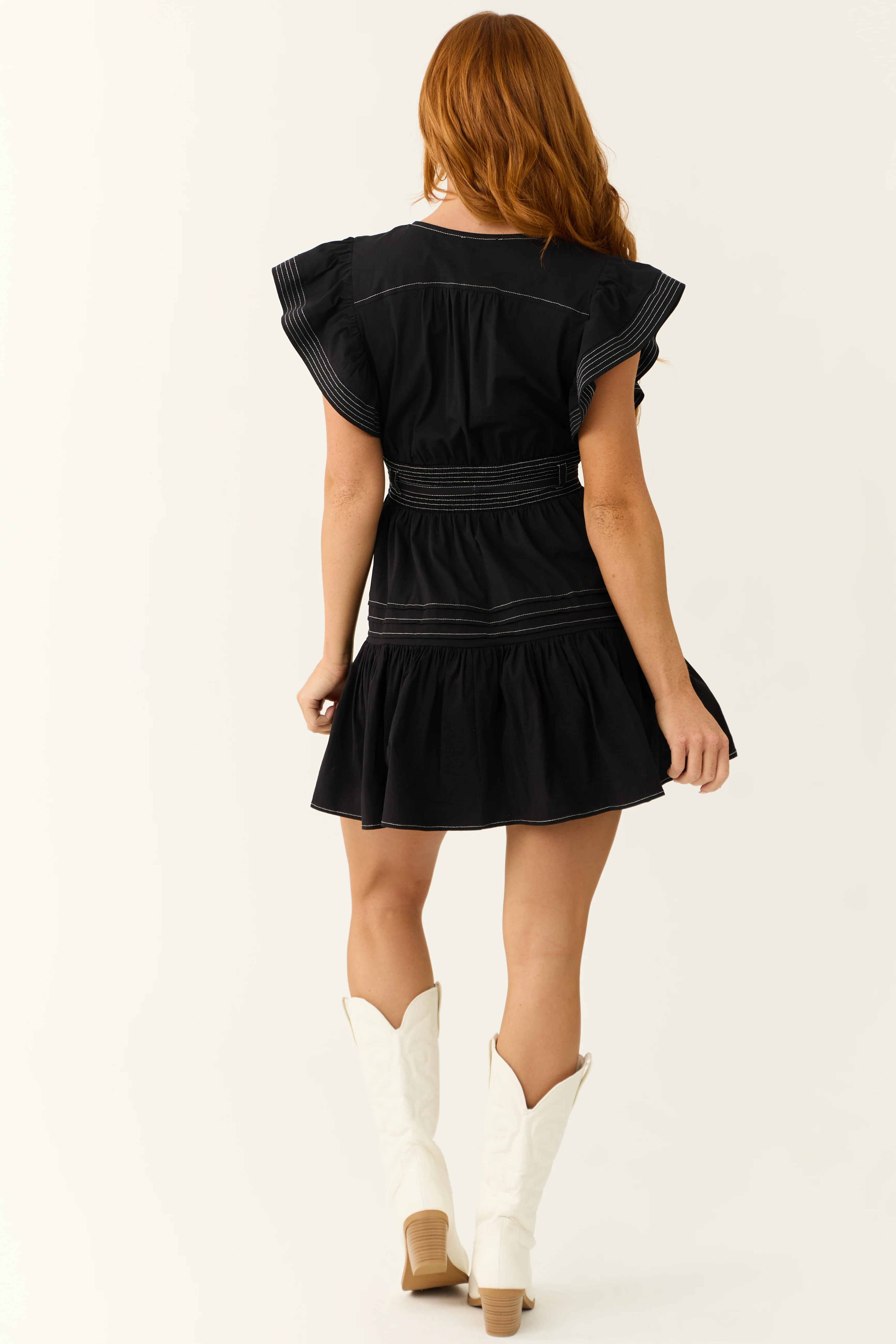 Black Ruffle Short Sleeve V Neck Mini Dress