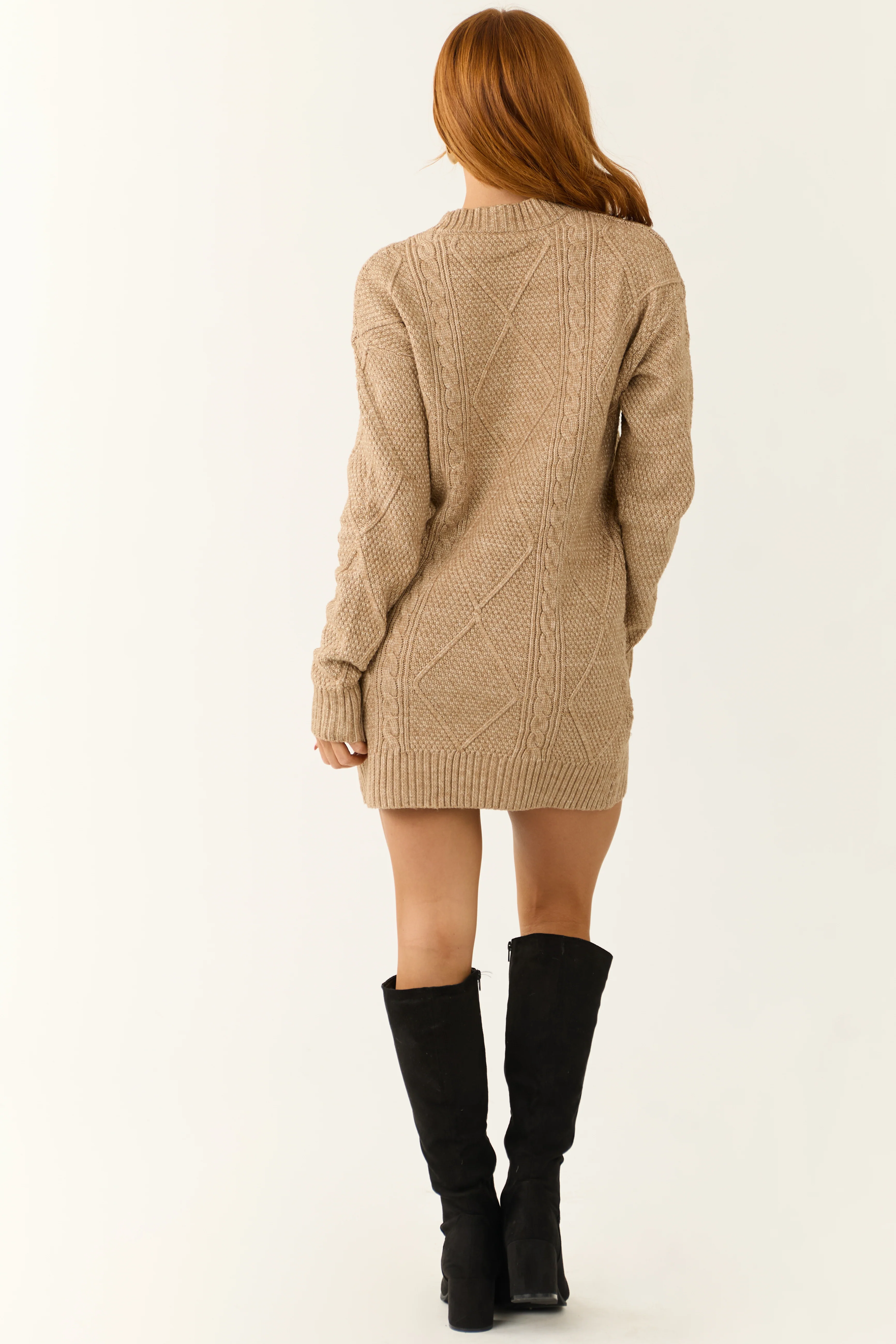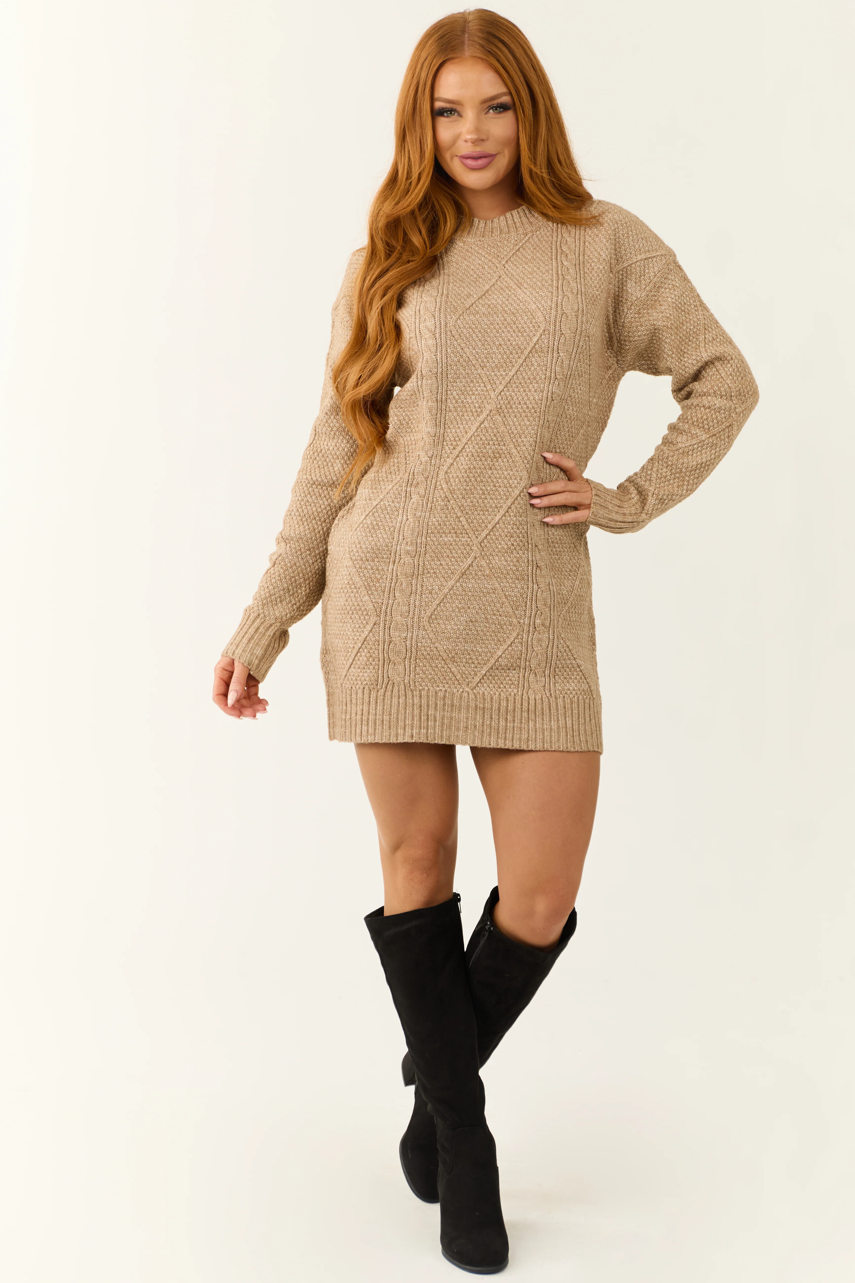 Latte Cable Knit Loose Fit Short Sweater Dress