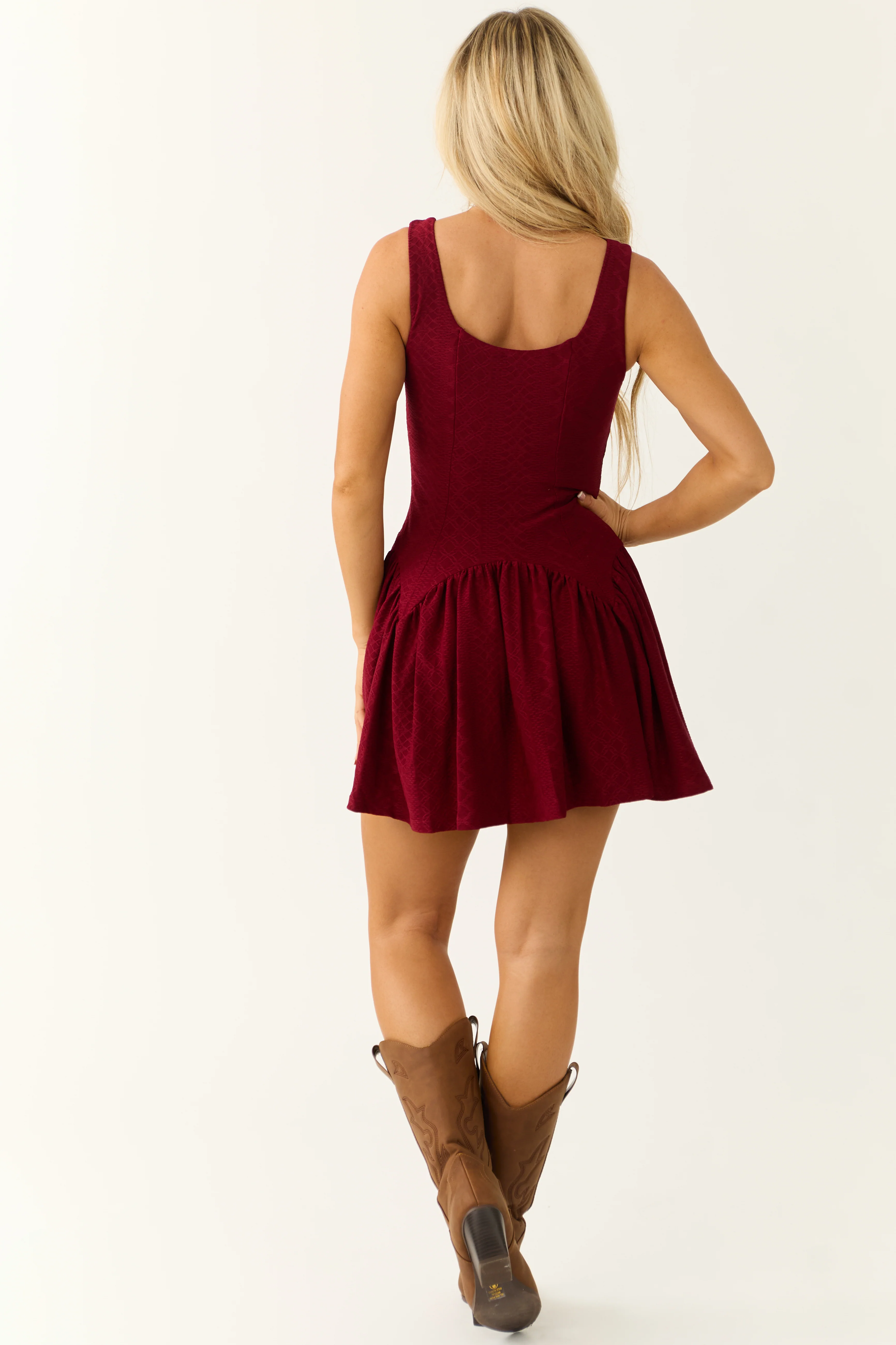 Wine Sleeveless Textured Knit Short Dress