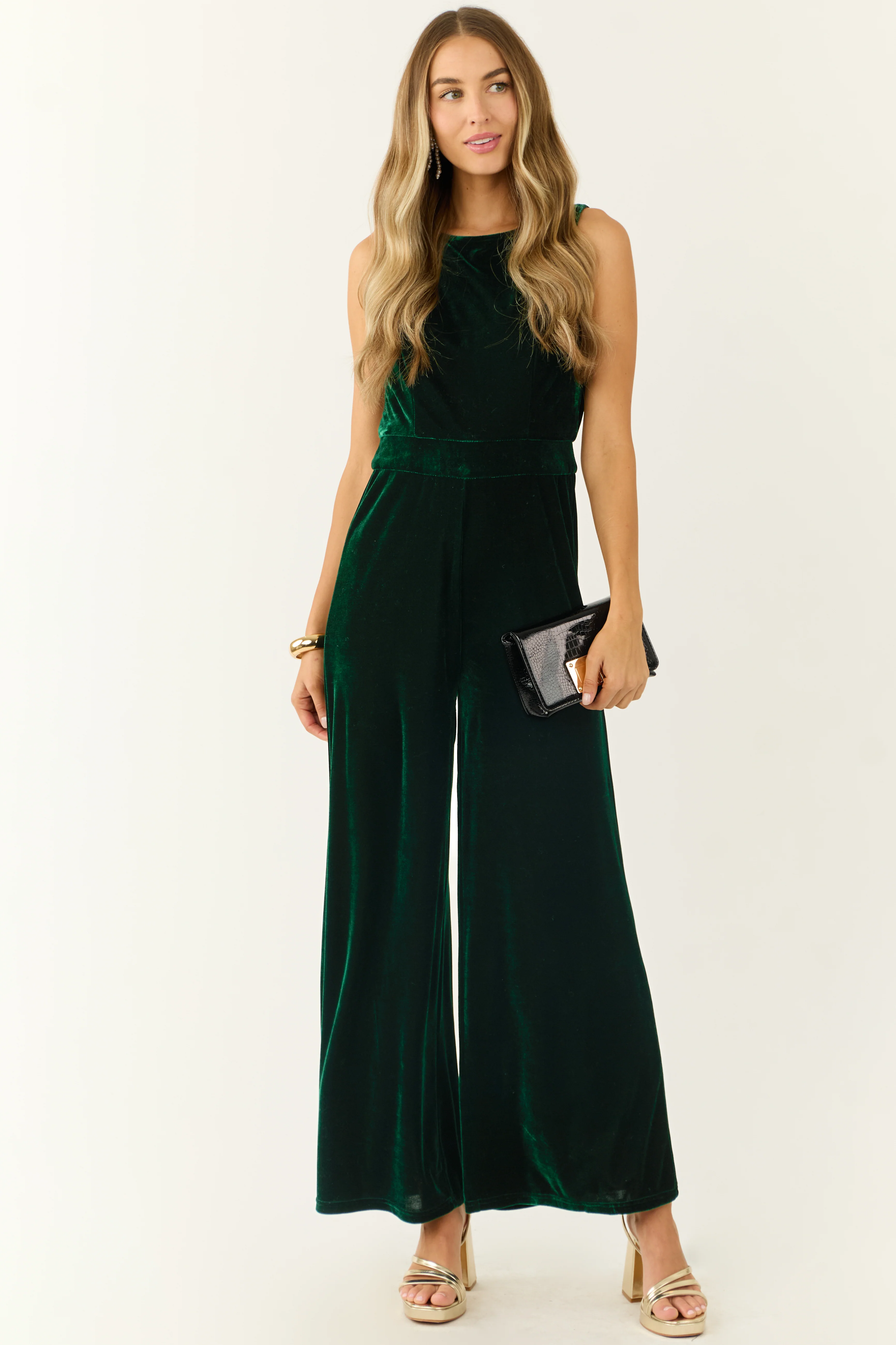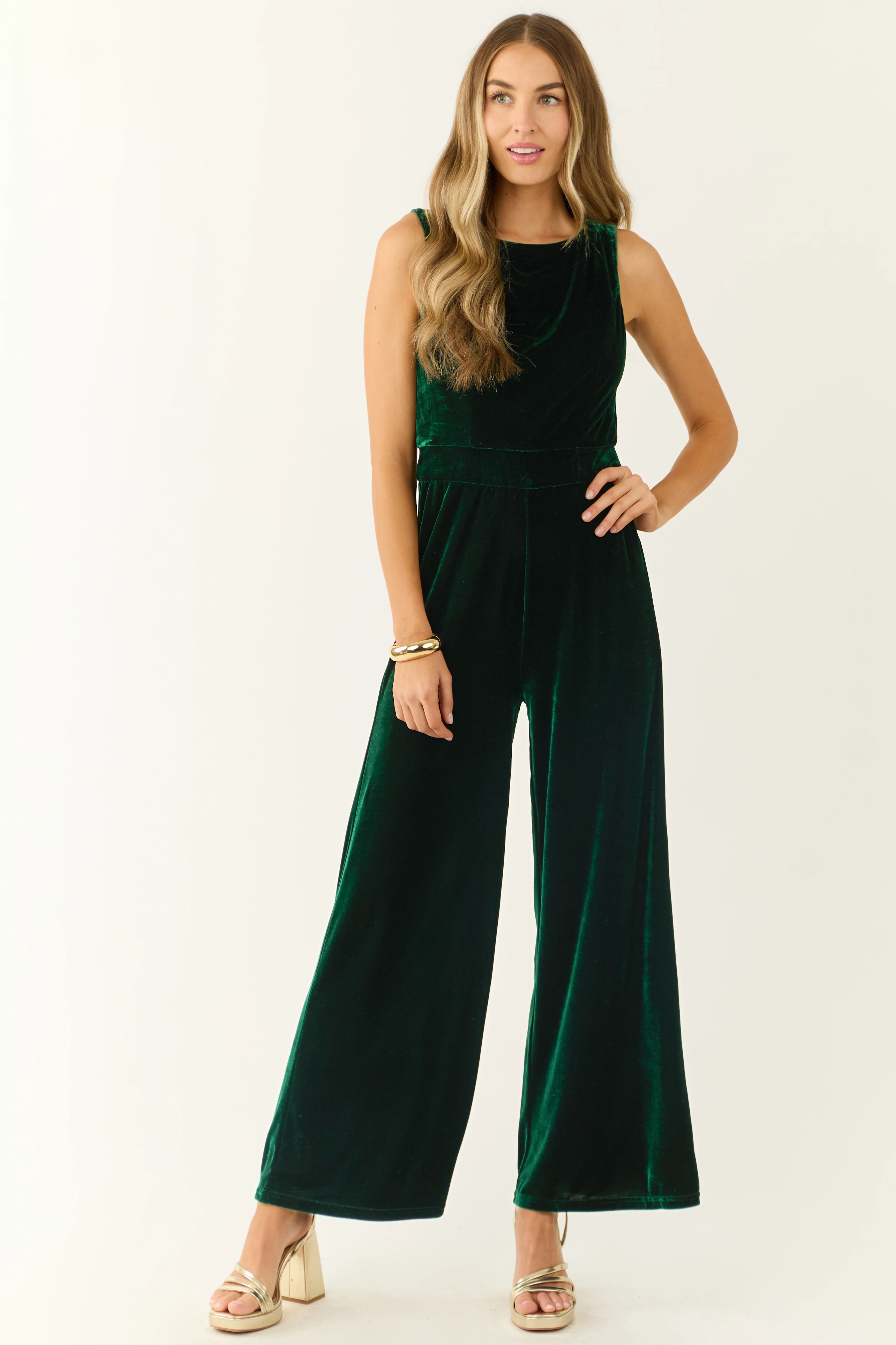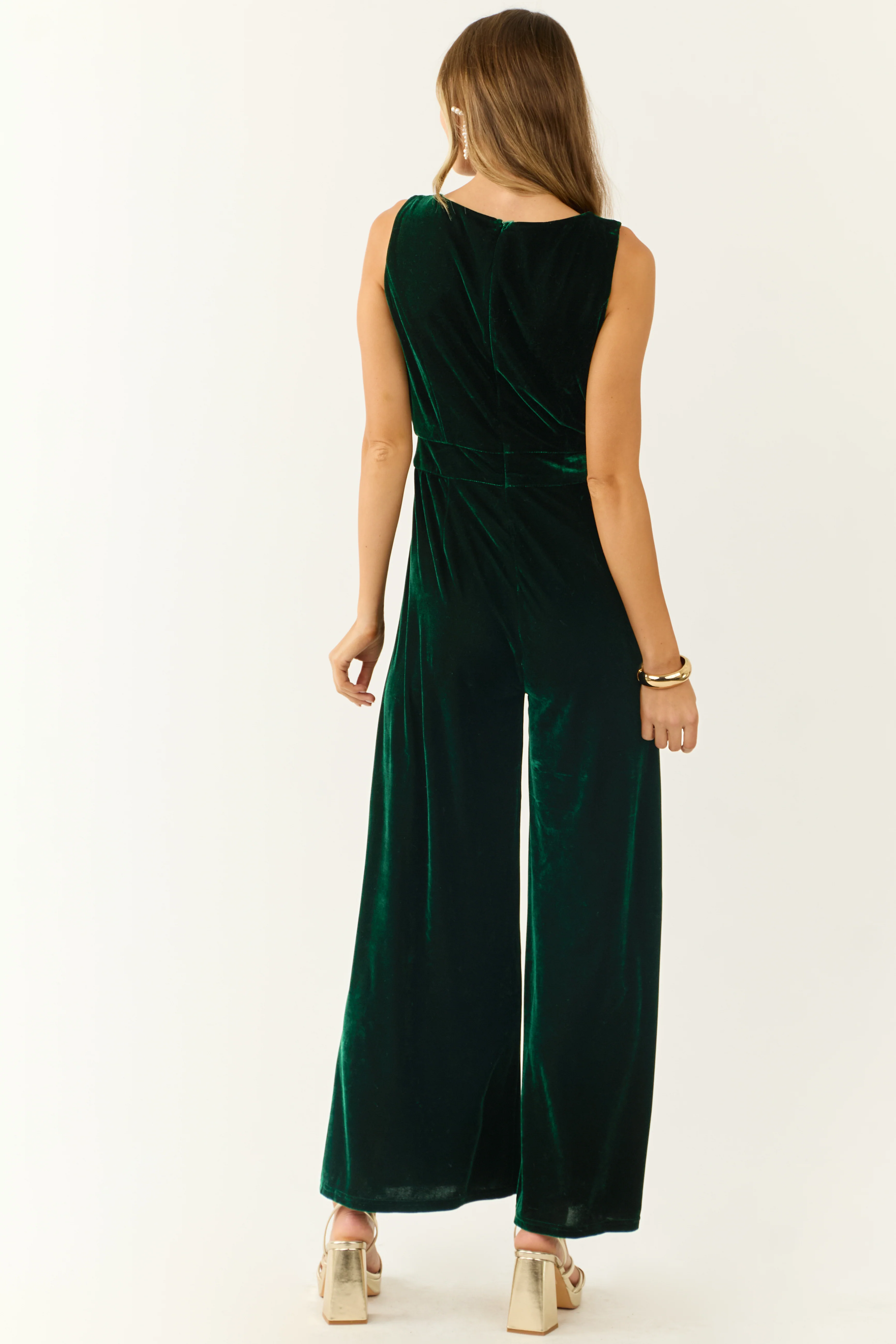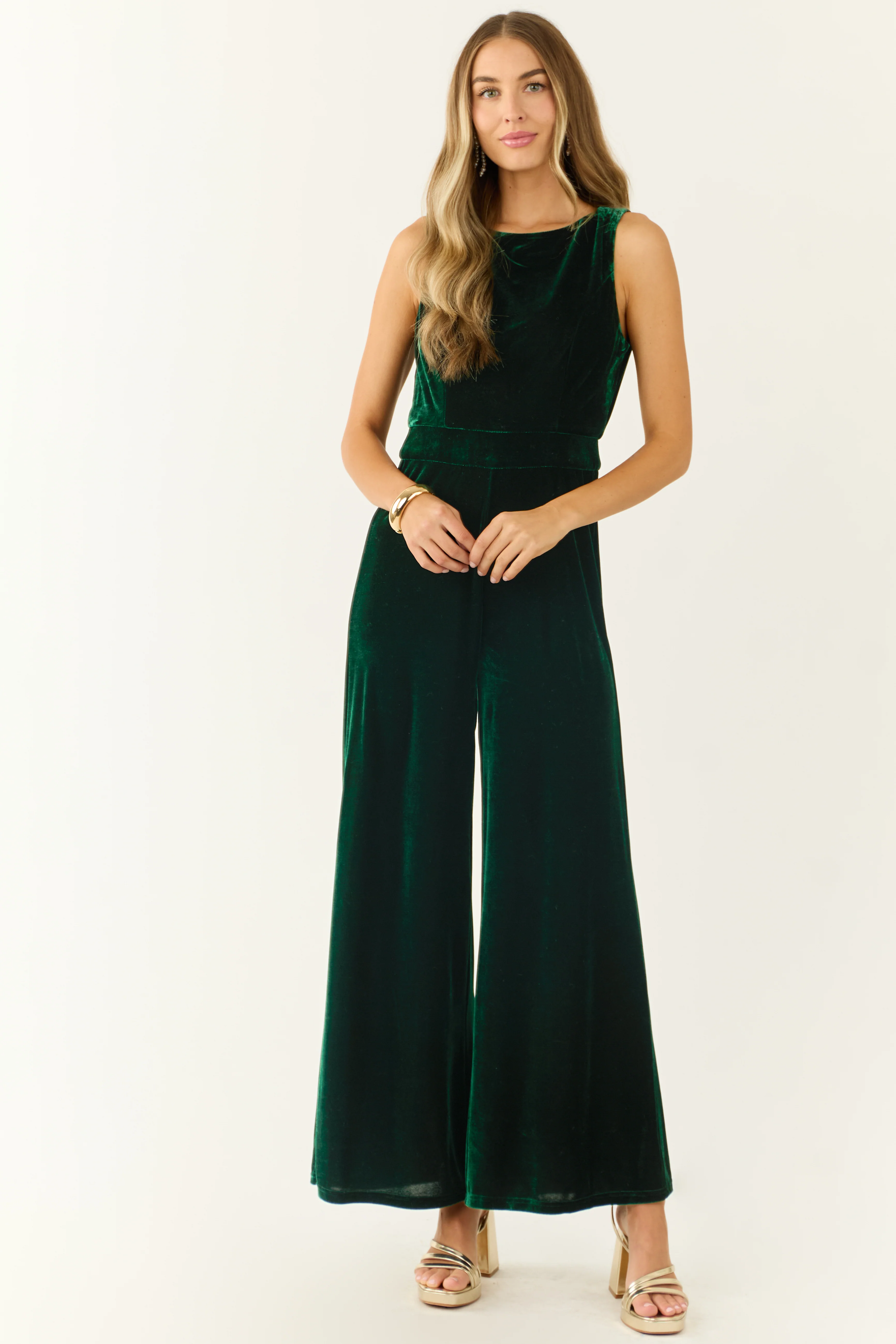 Forest Green Velvet Sleeveless Wide Leg Jumpsuit
