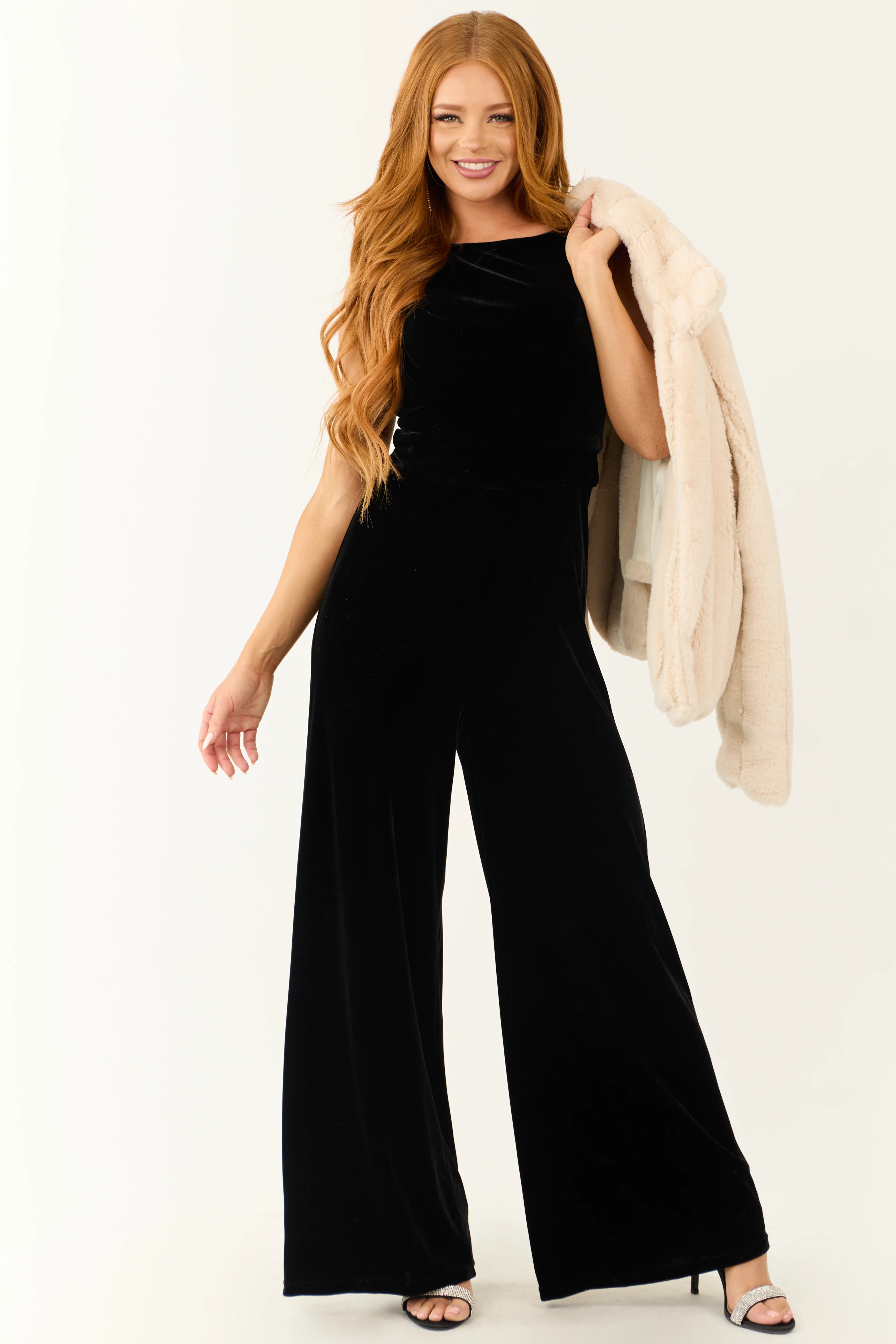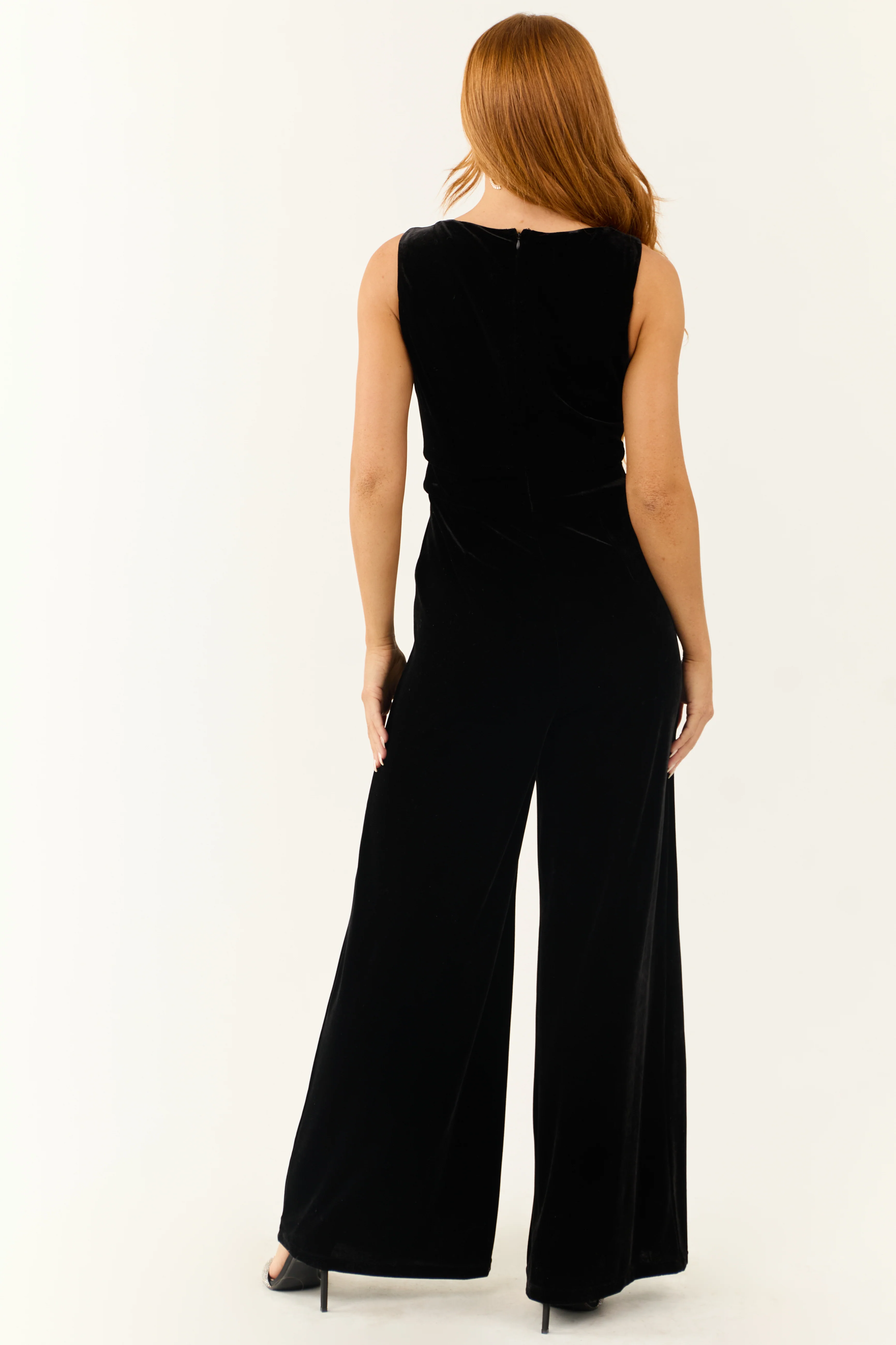 Black Velvet Sleeveless Wide Leg Jumpsuit