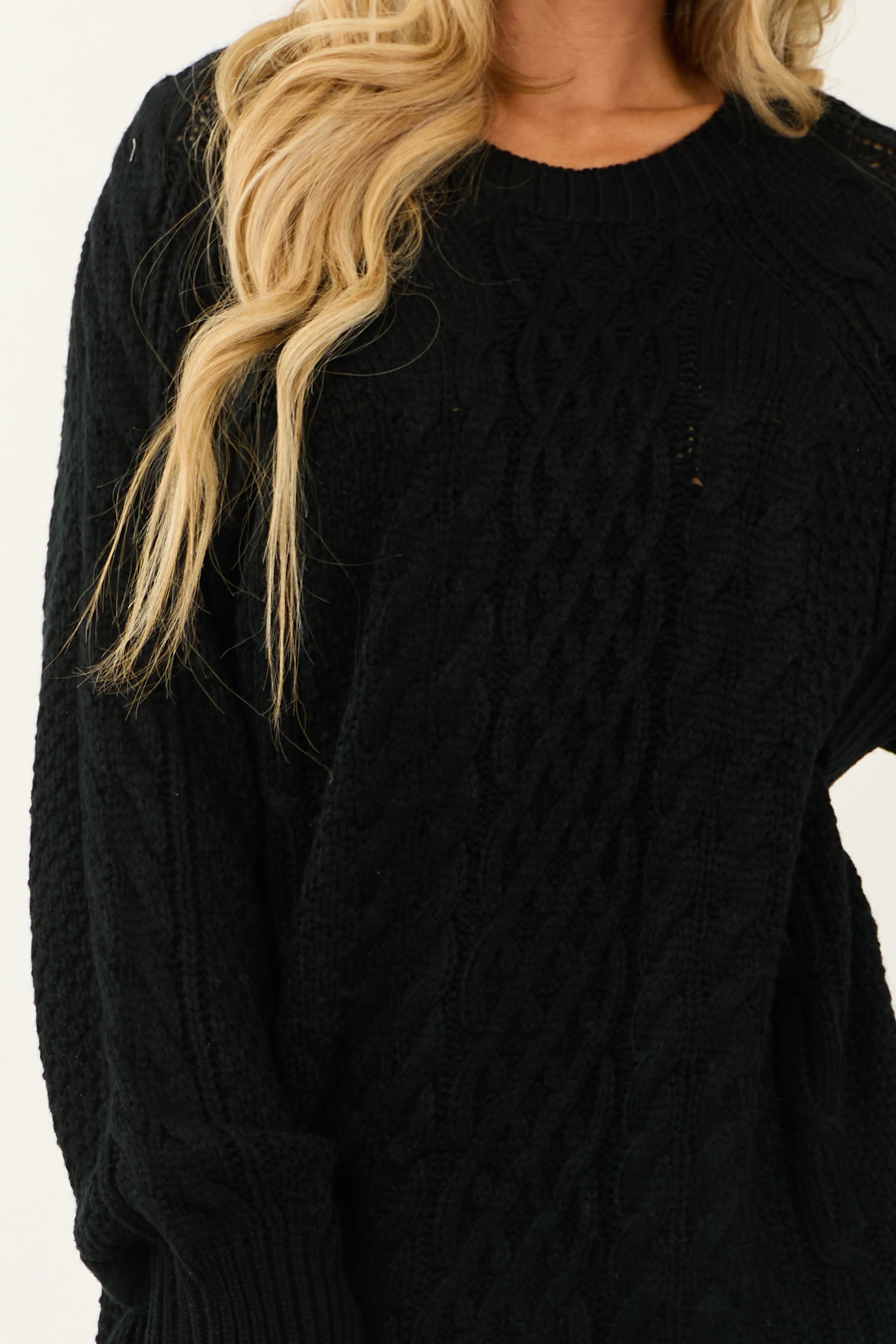 Black Long Balloon Sleeve Short Sweater Dress
