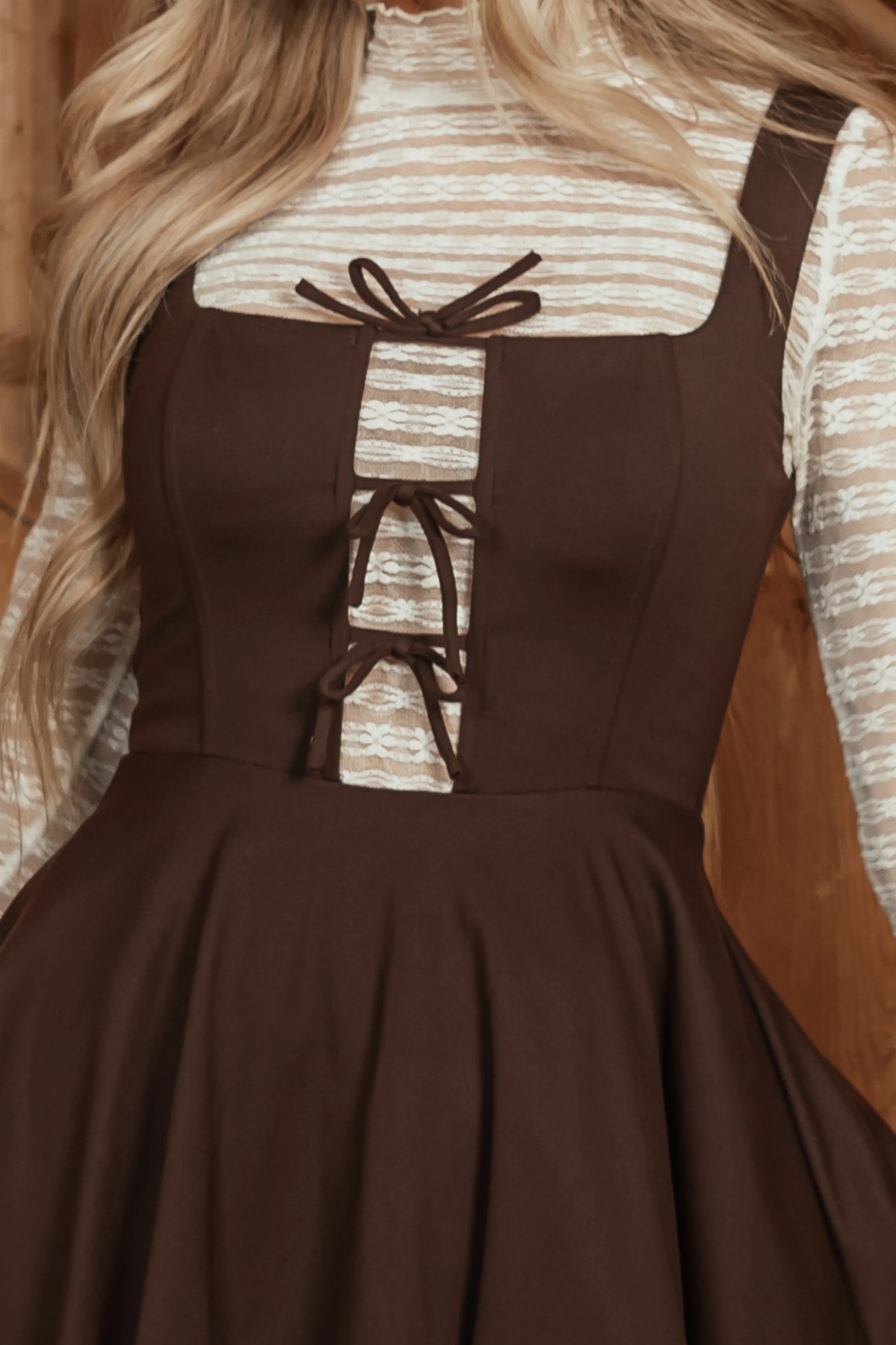 Chocolate Sleeveless Tie Front Mini Dress