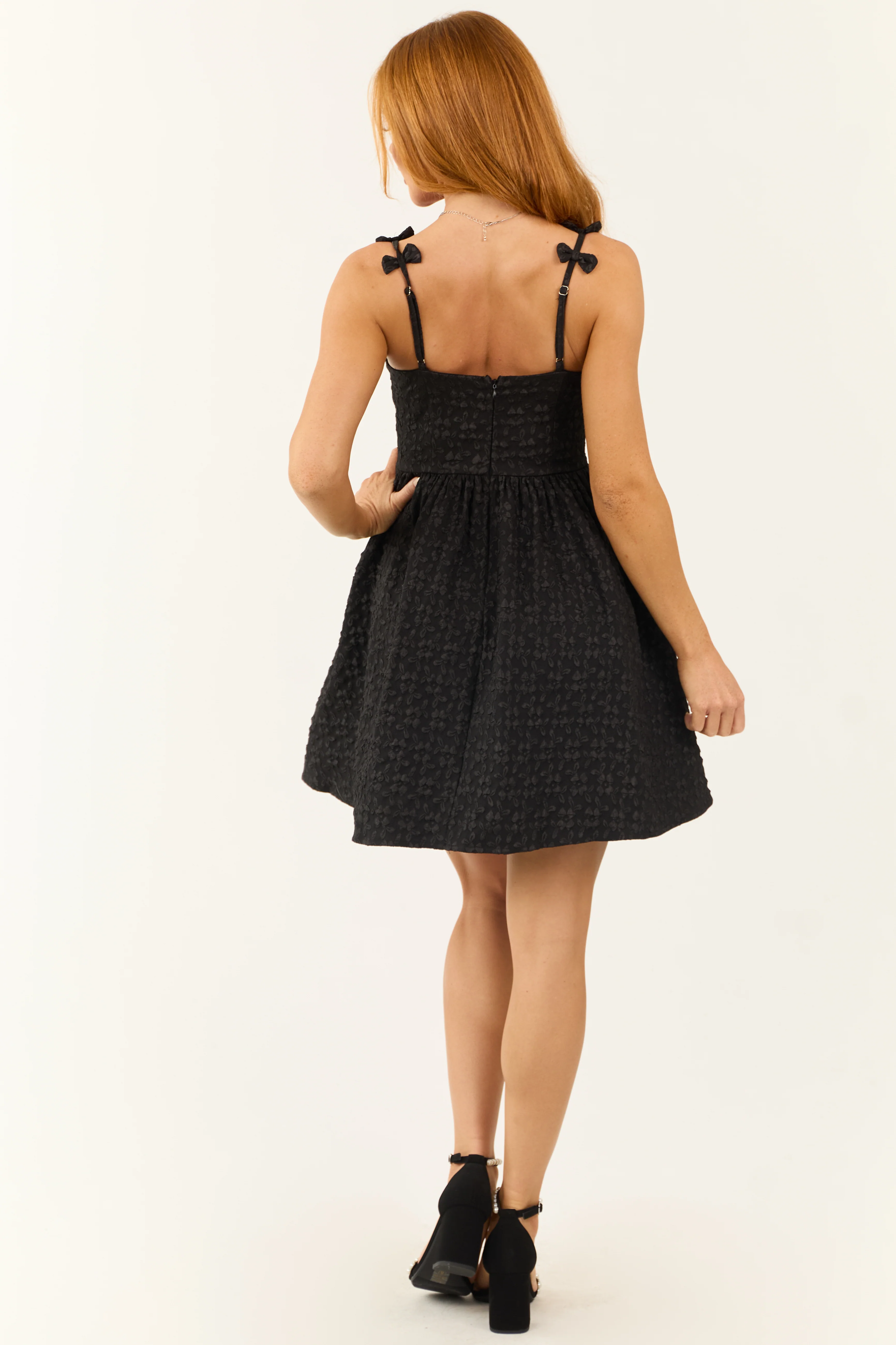 Black Sleeveless Floral Open Back Mini Dress