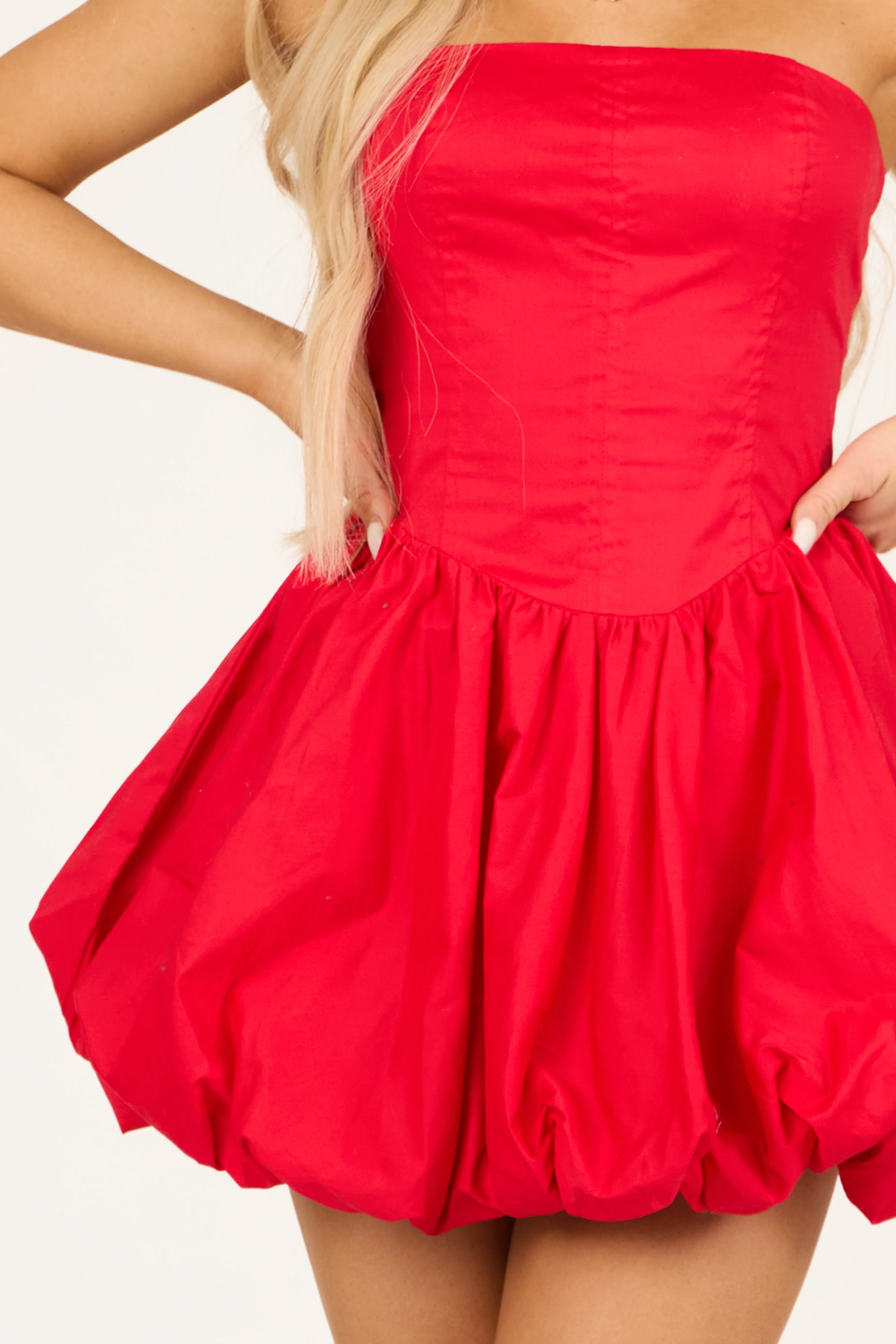 Lipstick Strapless Bubble Hem Corset Style Mini Dress