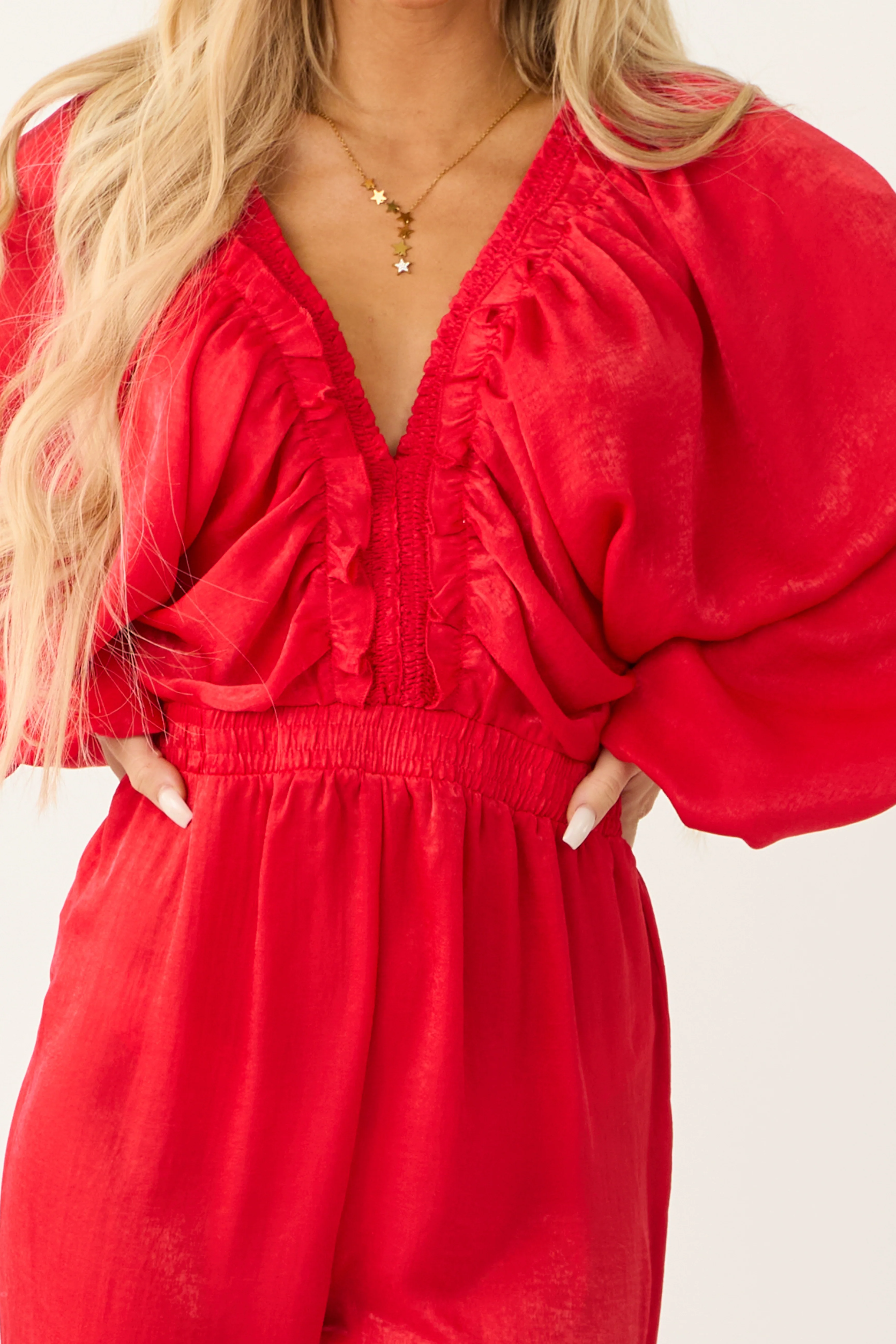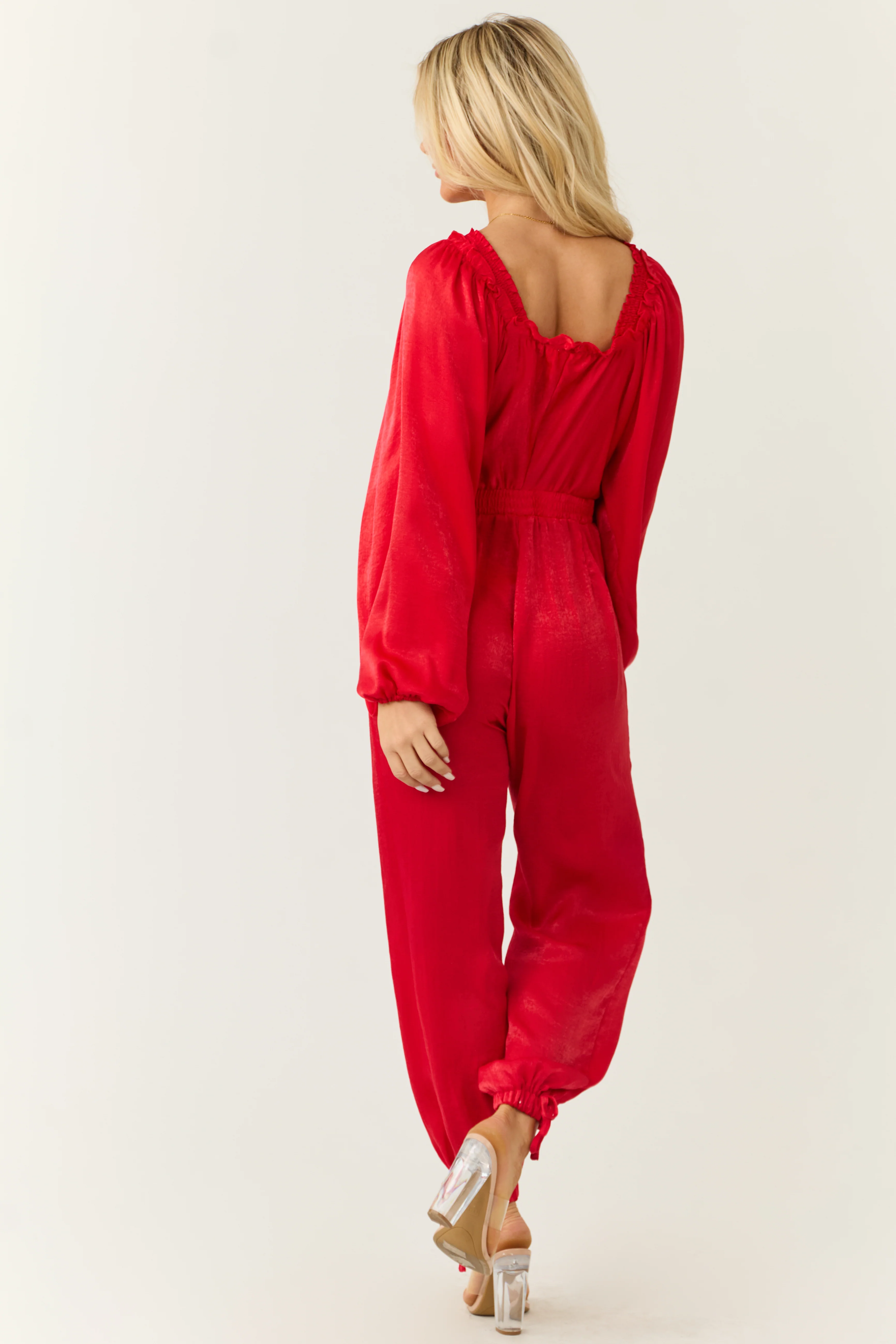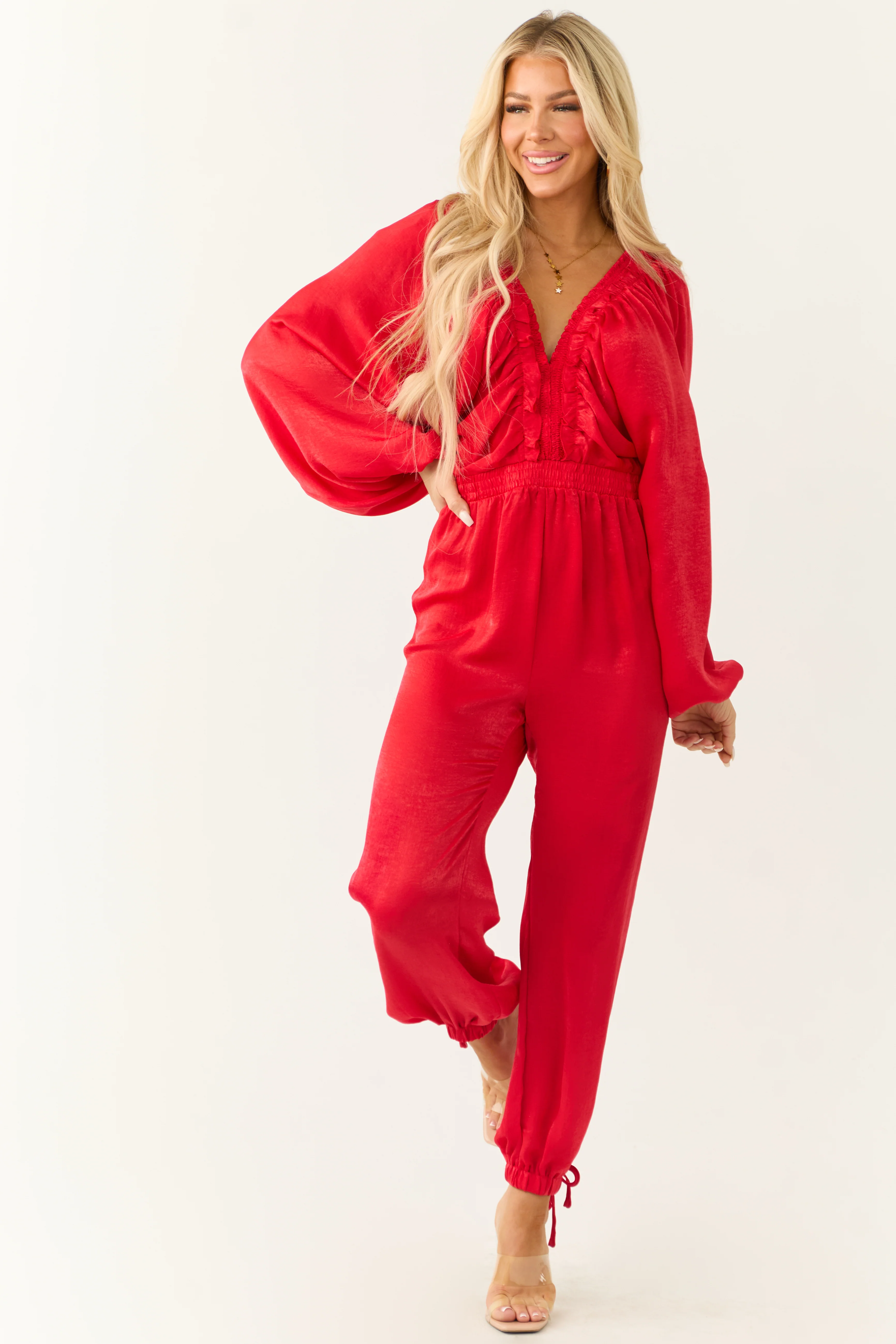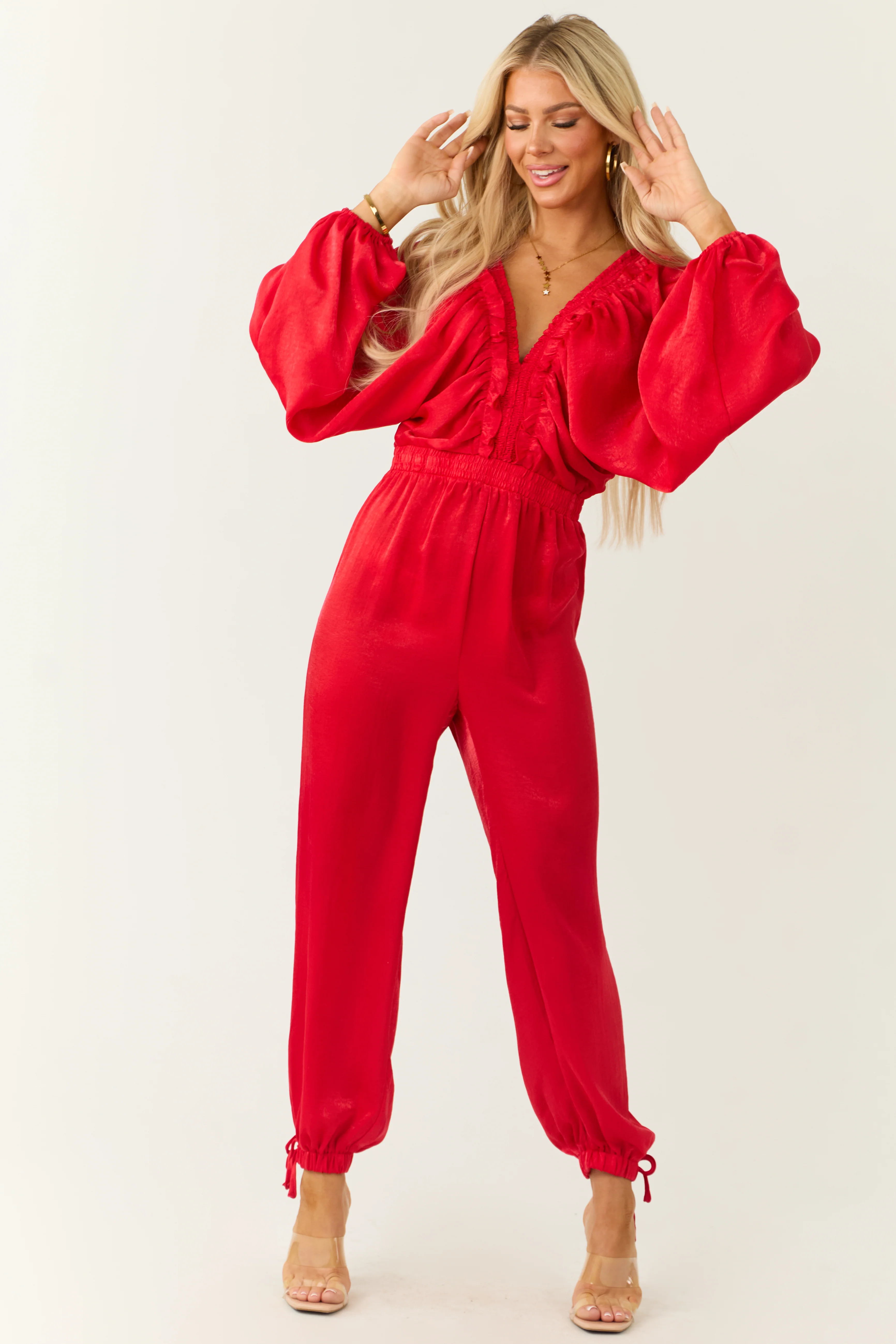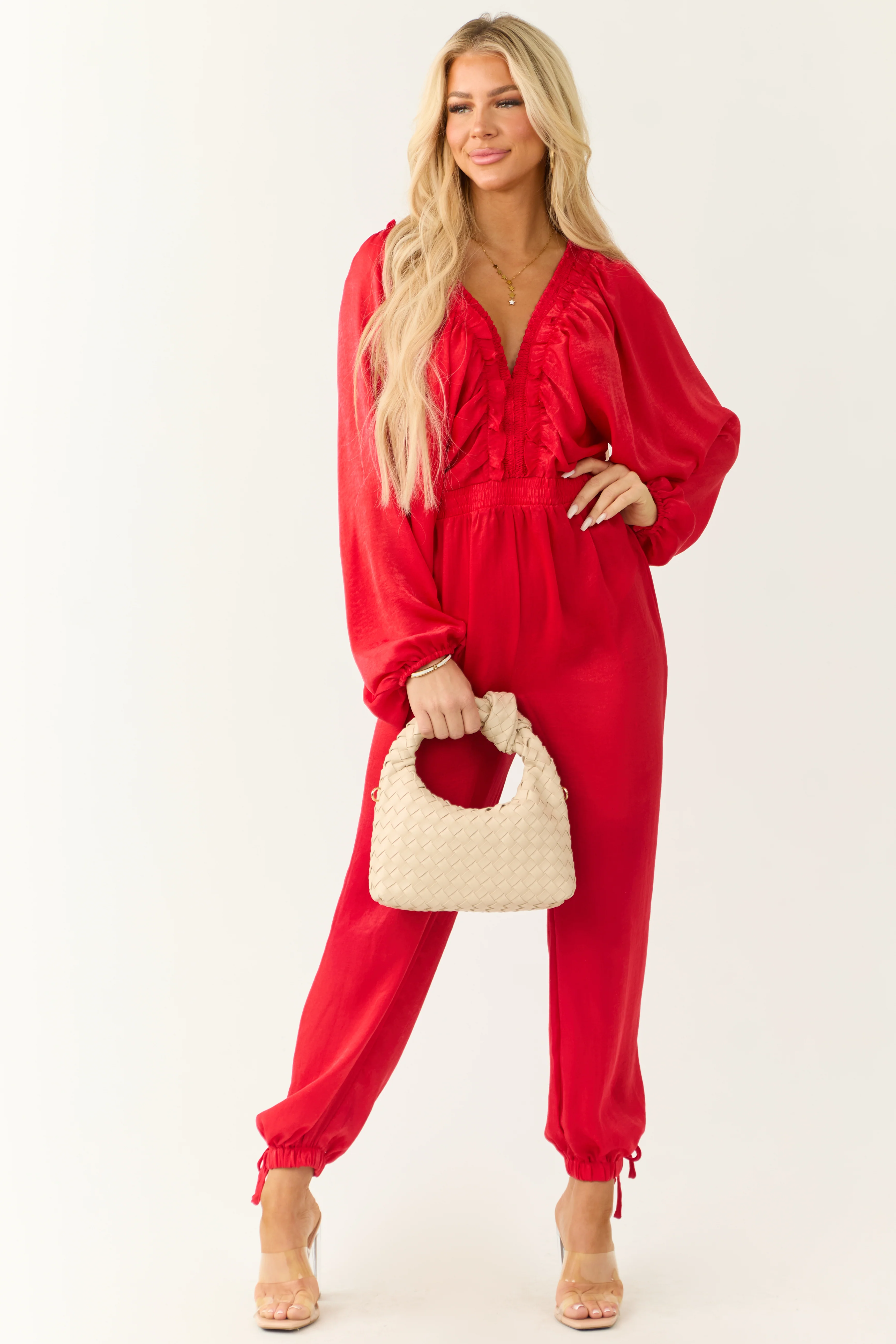 Ruby Textured Satin Deep V Neck Jumpsuit