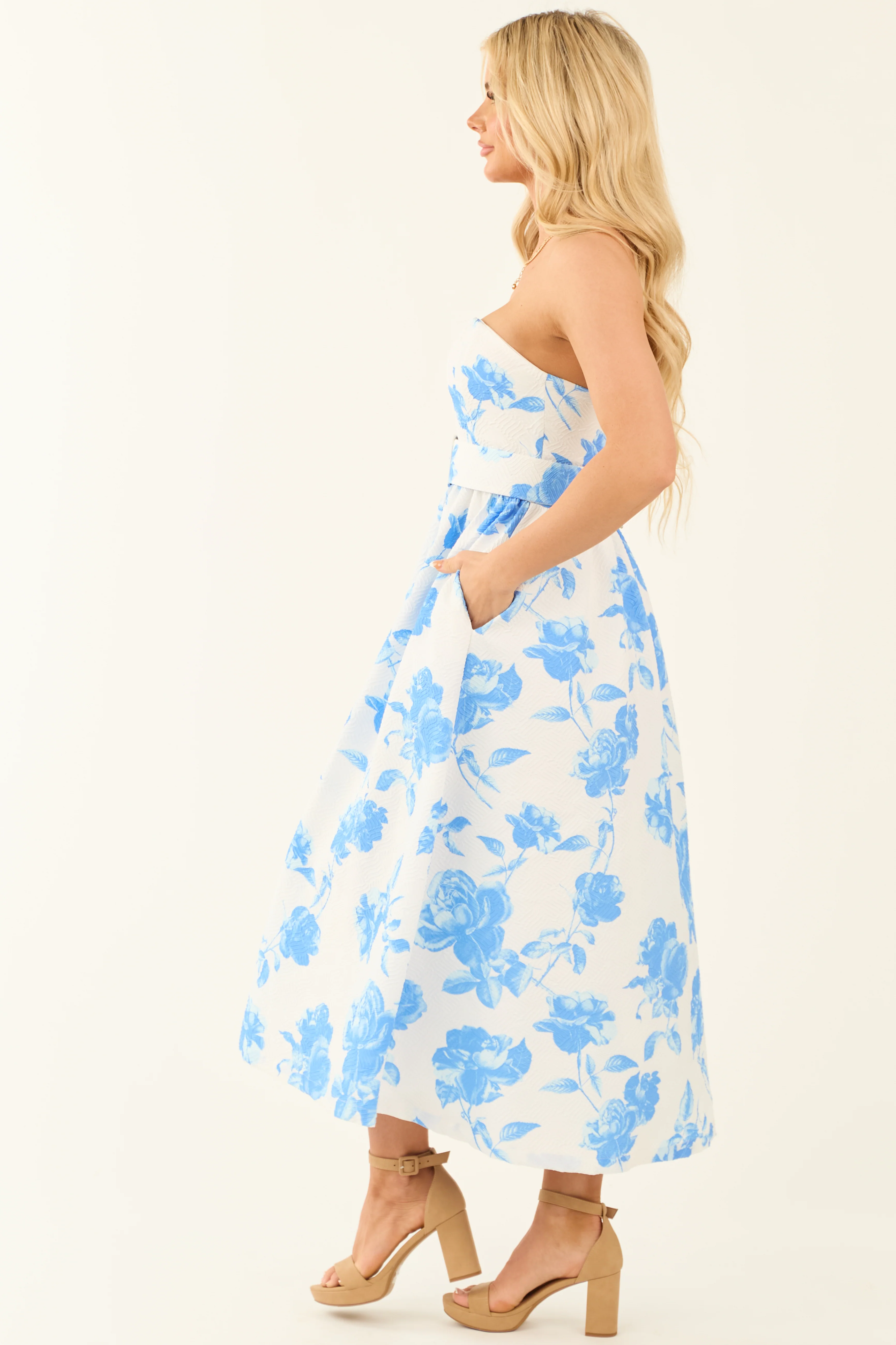 Flying Tomato Off White Floral Print Midi Dress
