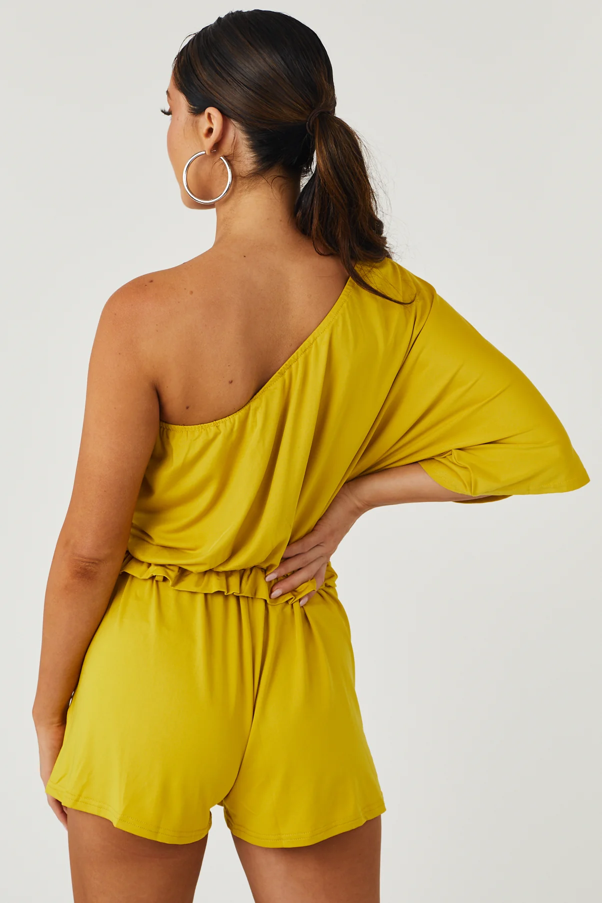 Mustard One Shoulder Waist Tie Romper