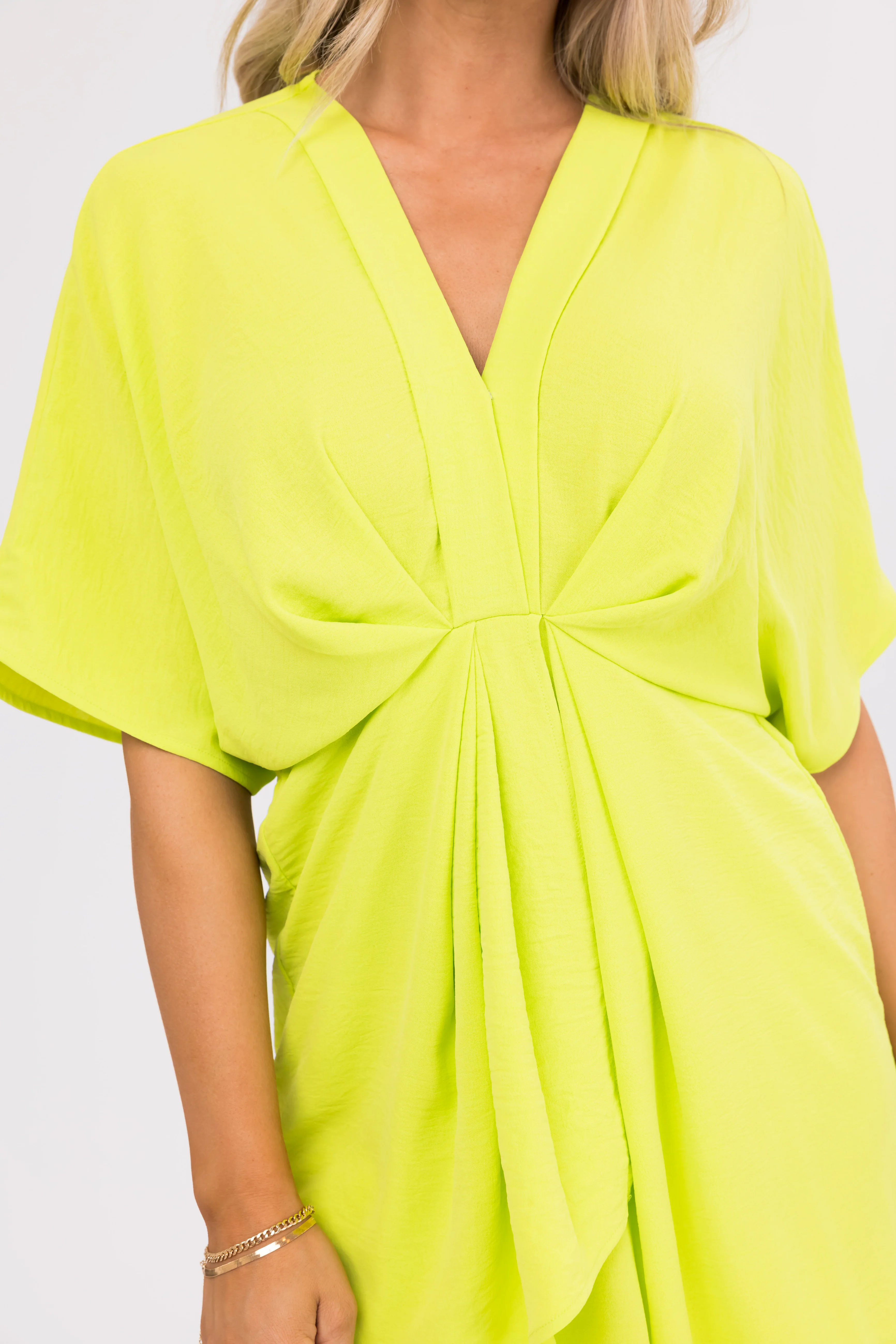 She+Sky Lime Loose Sleeve Gathered Dress