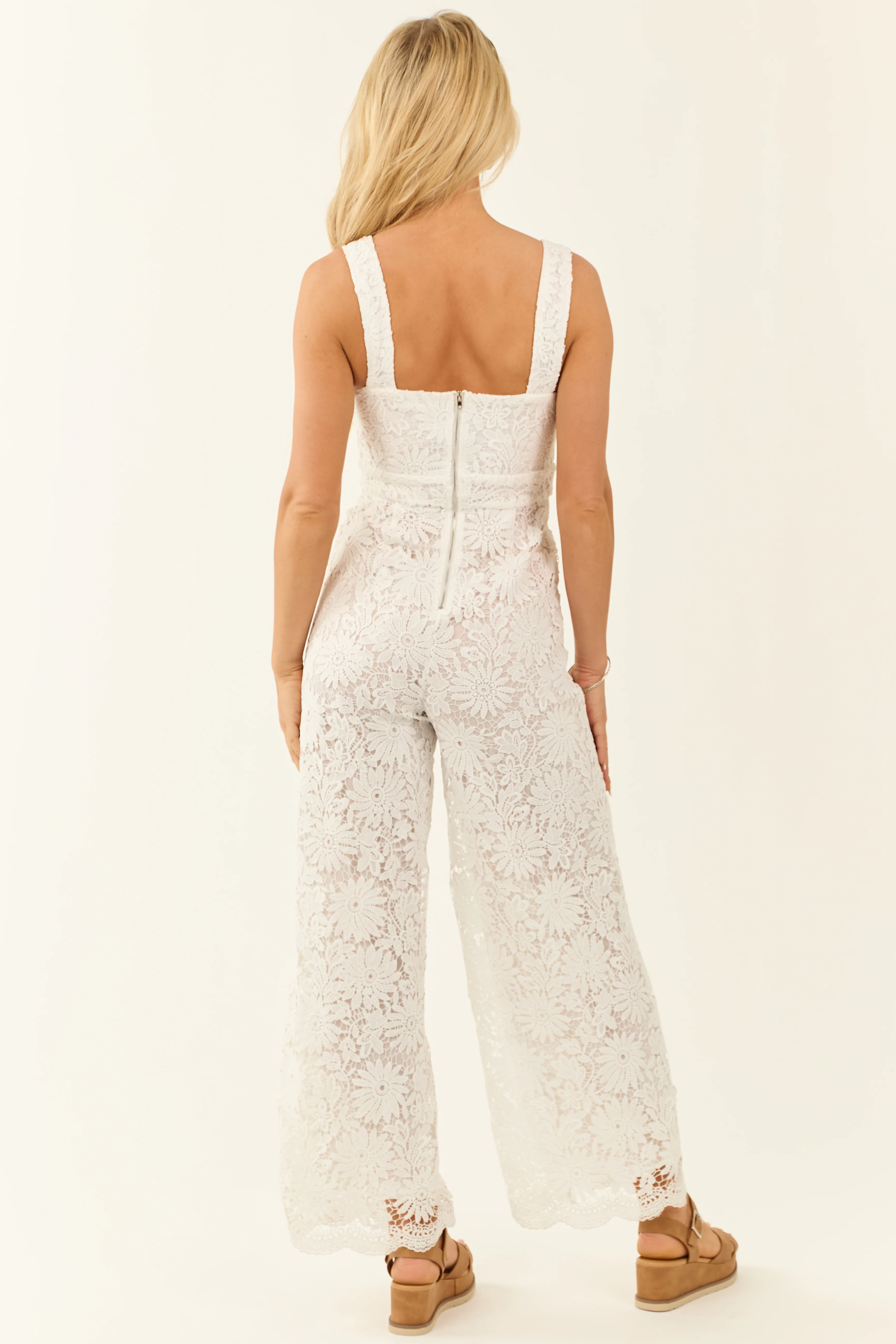 Flying Tomato Ivory Lace Wide Leg Square Neck Jumpsuit