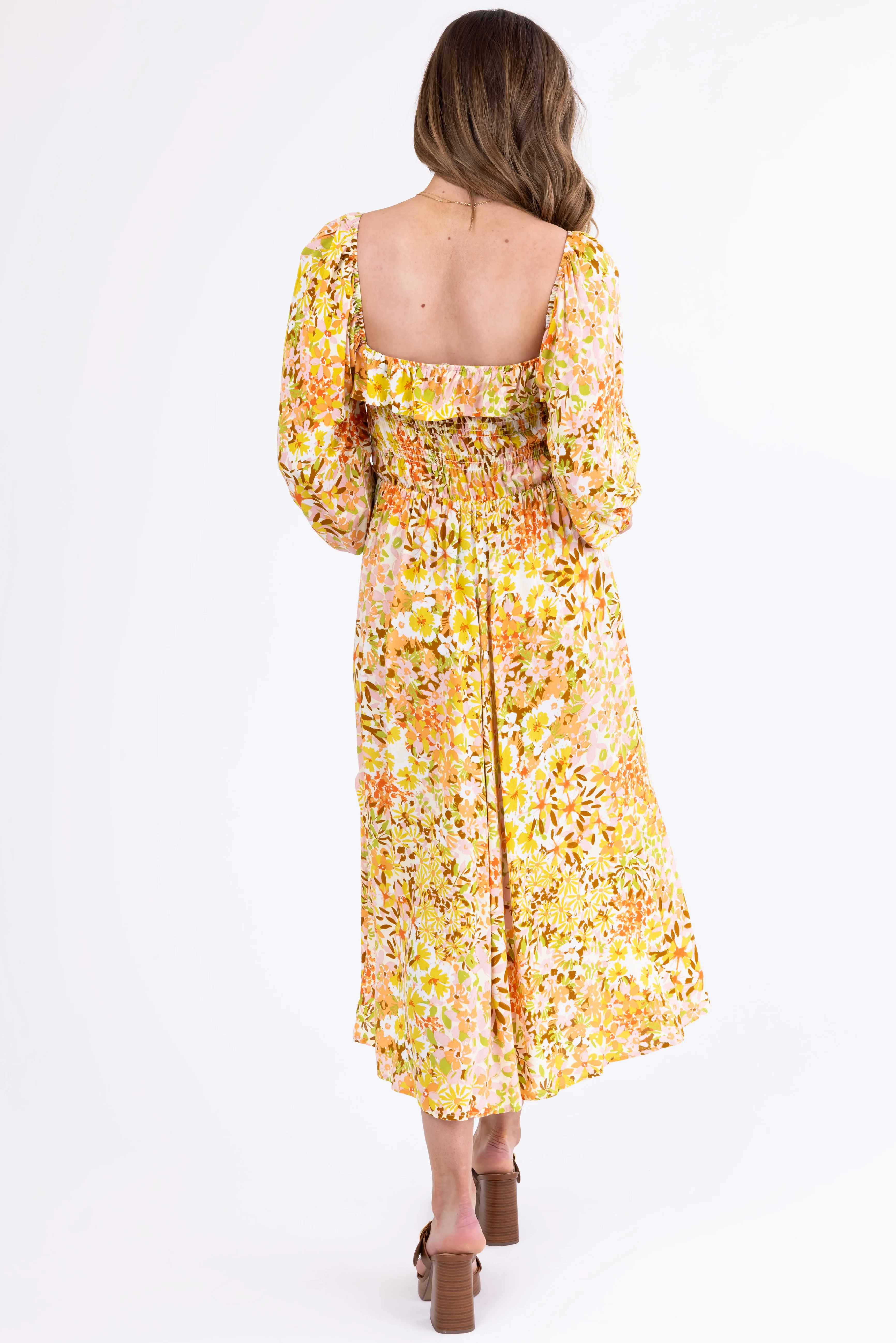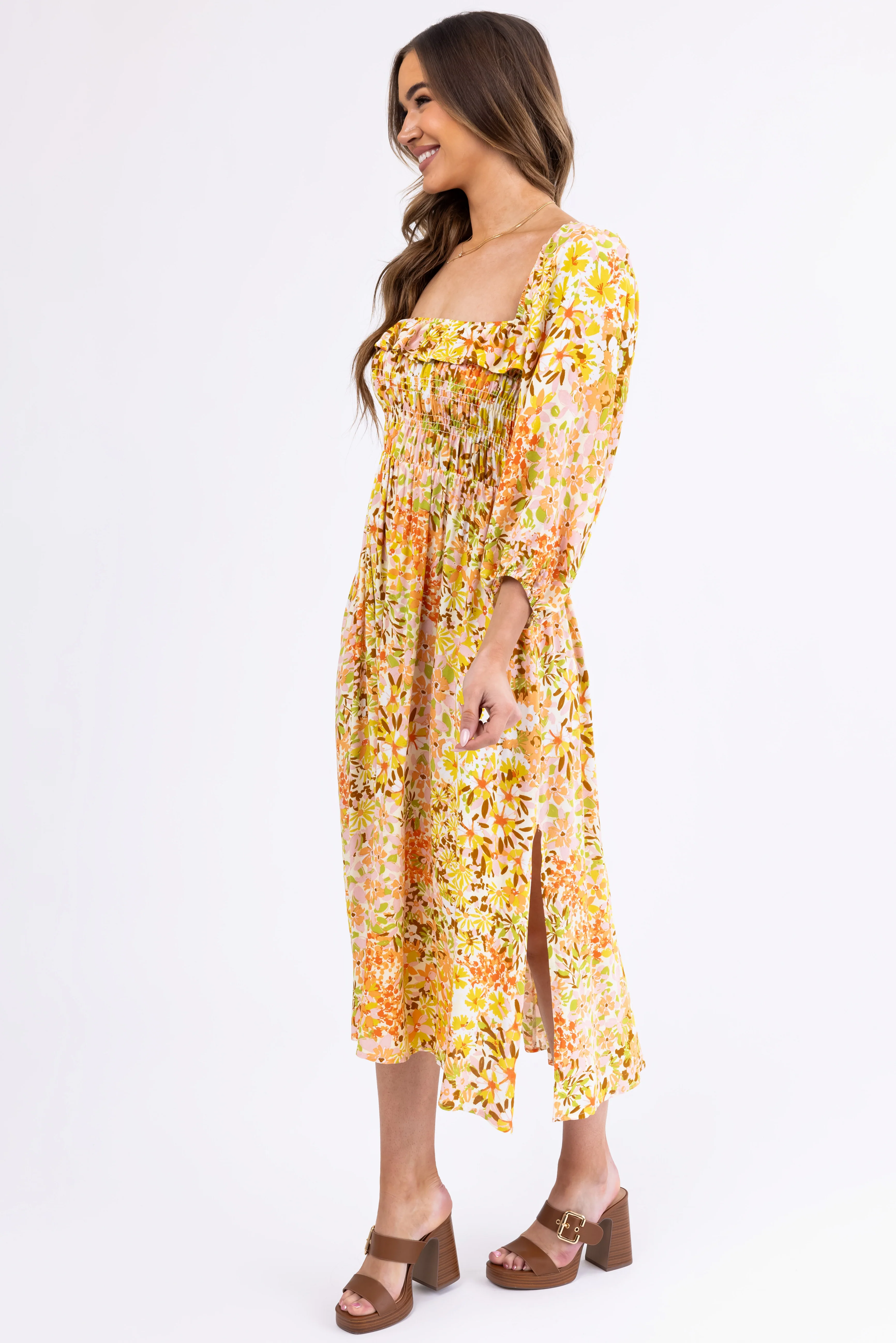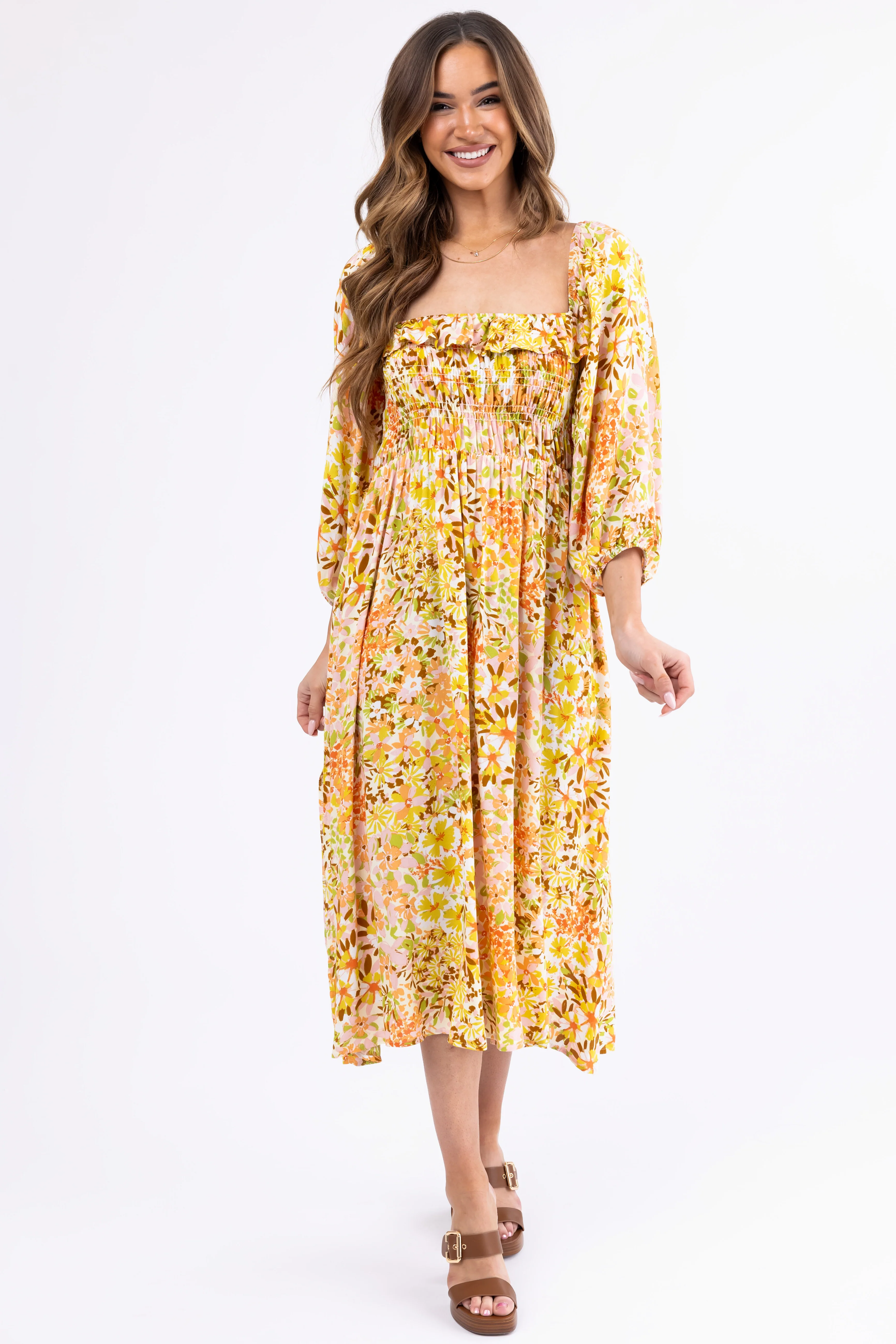 Buttercream Floral Print Smocked Midi Dress