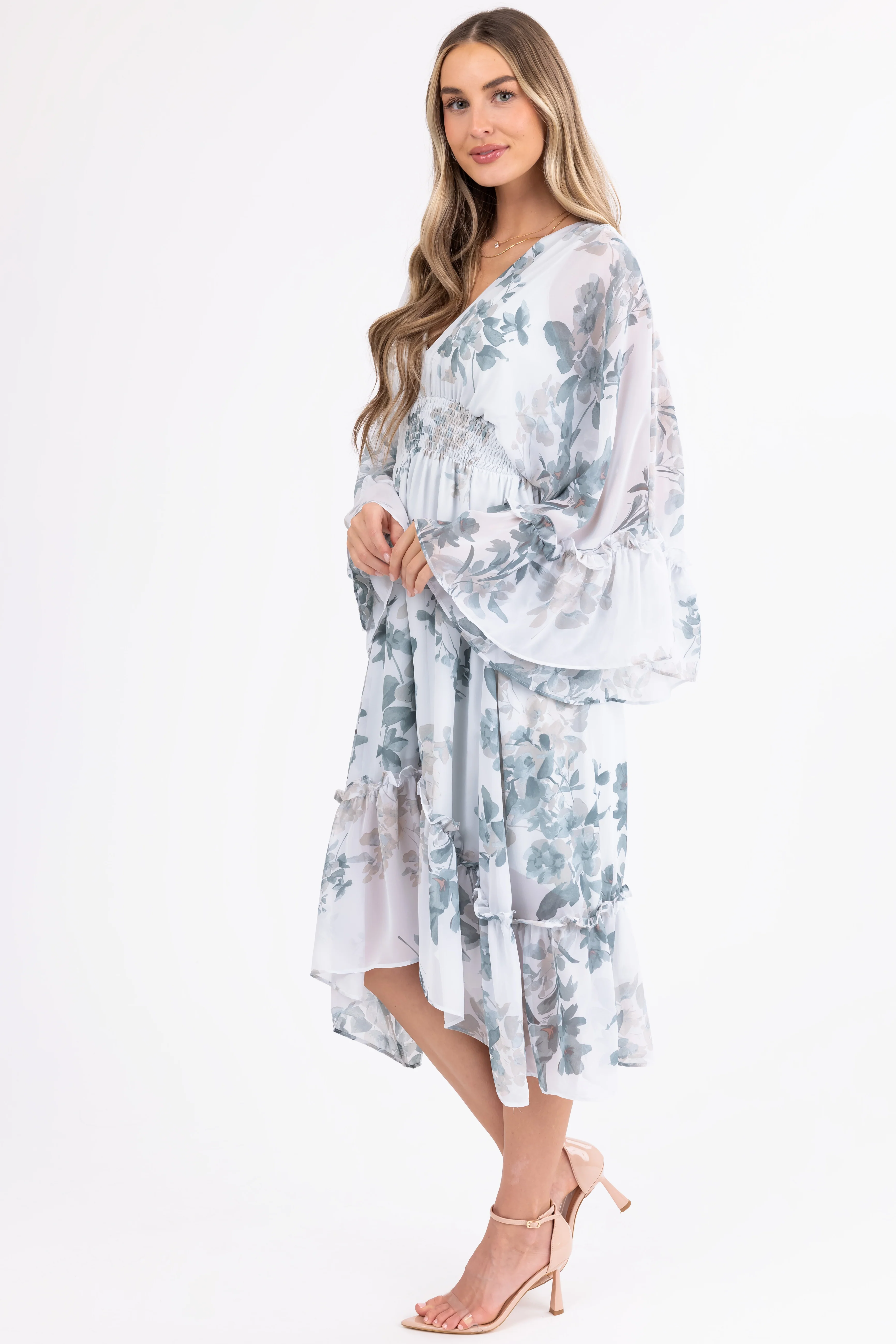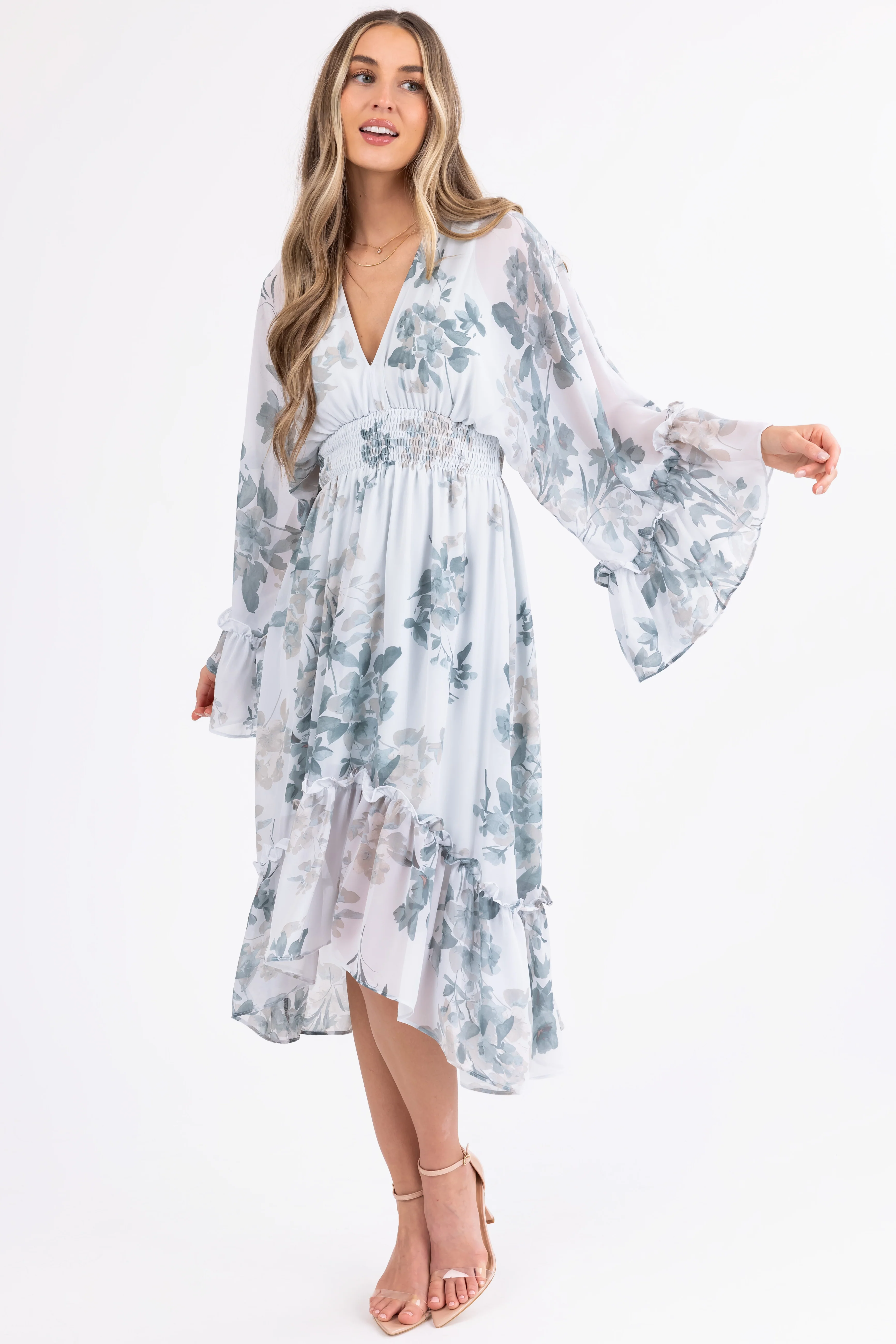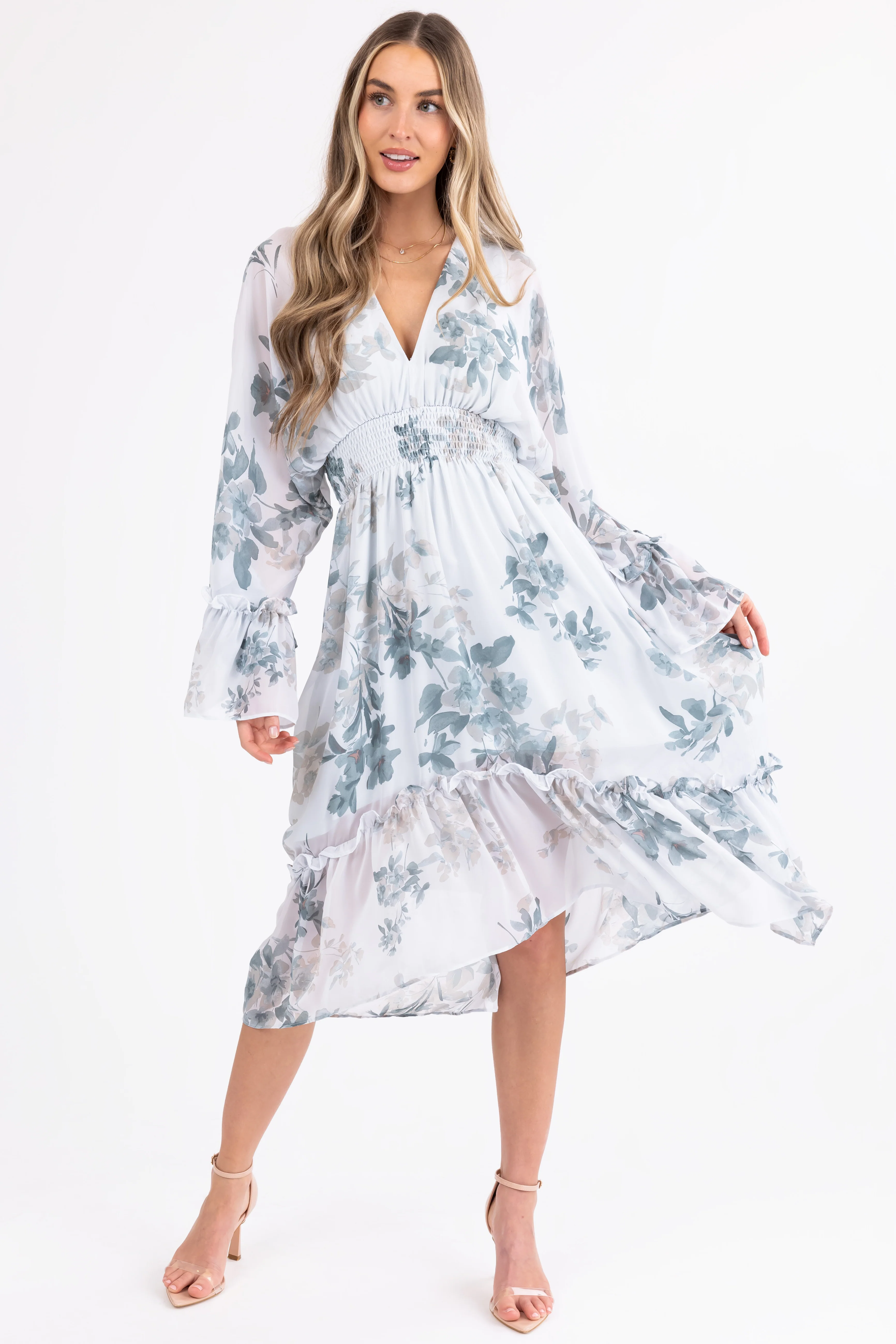 Buttercream Floral Print Smocked Midi Dress
