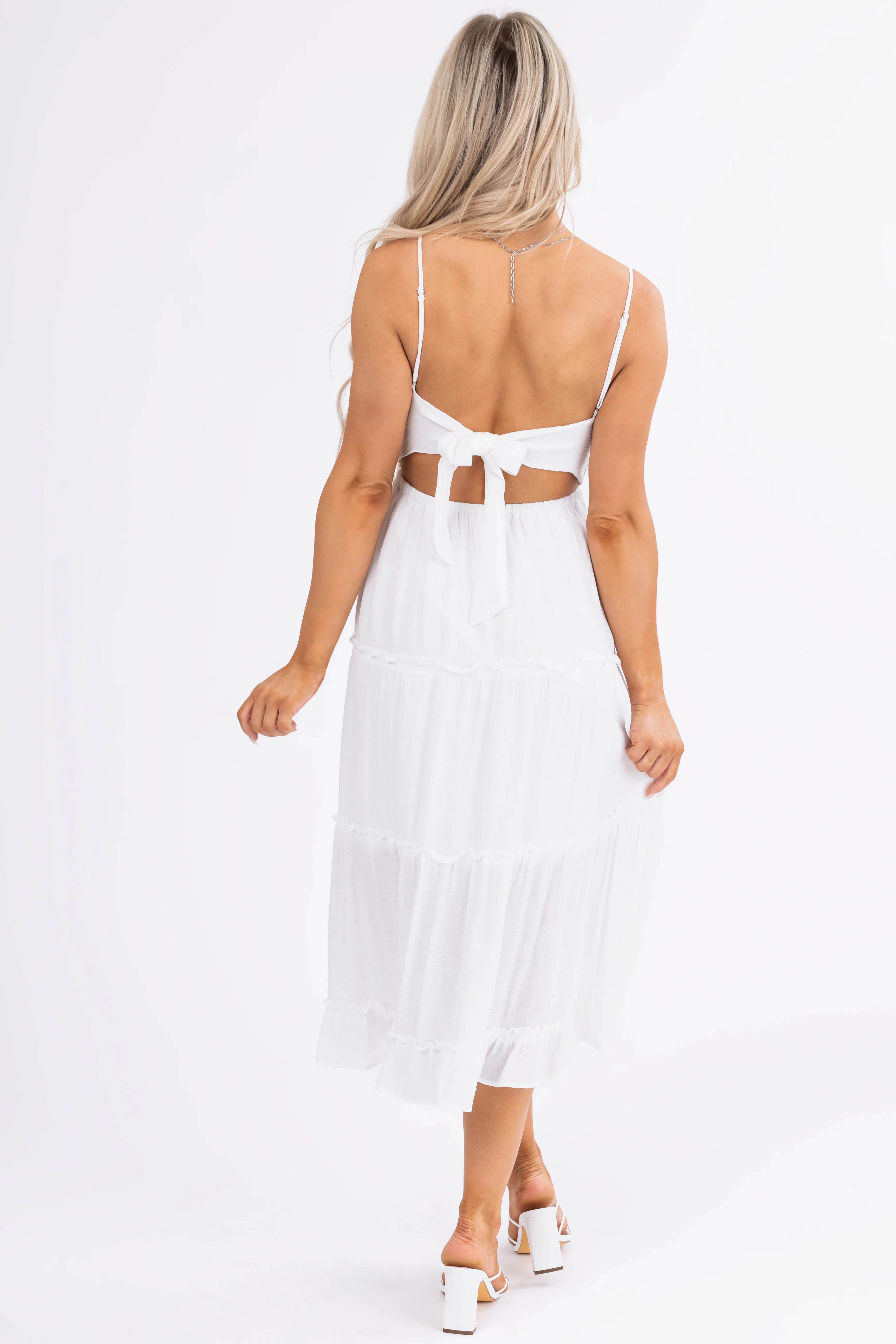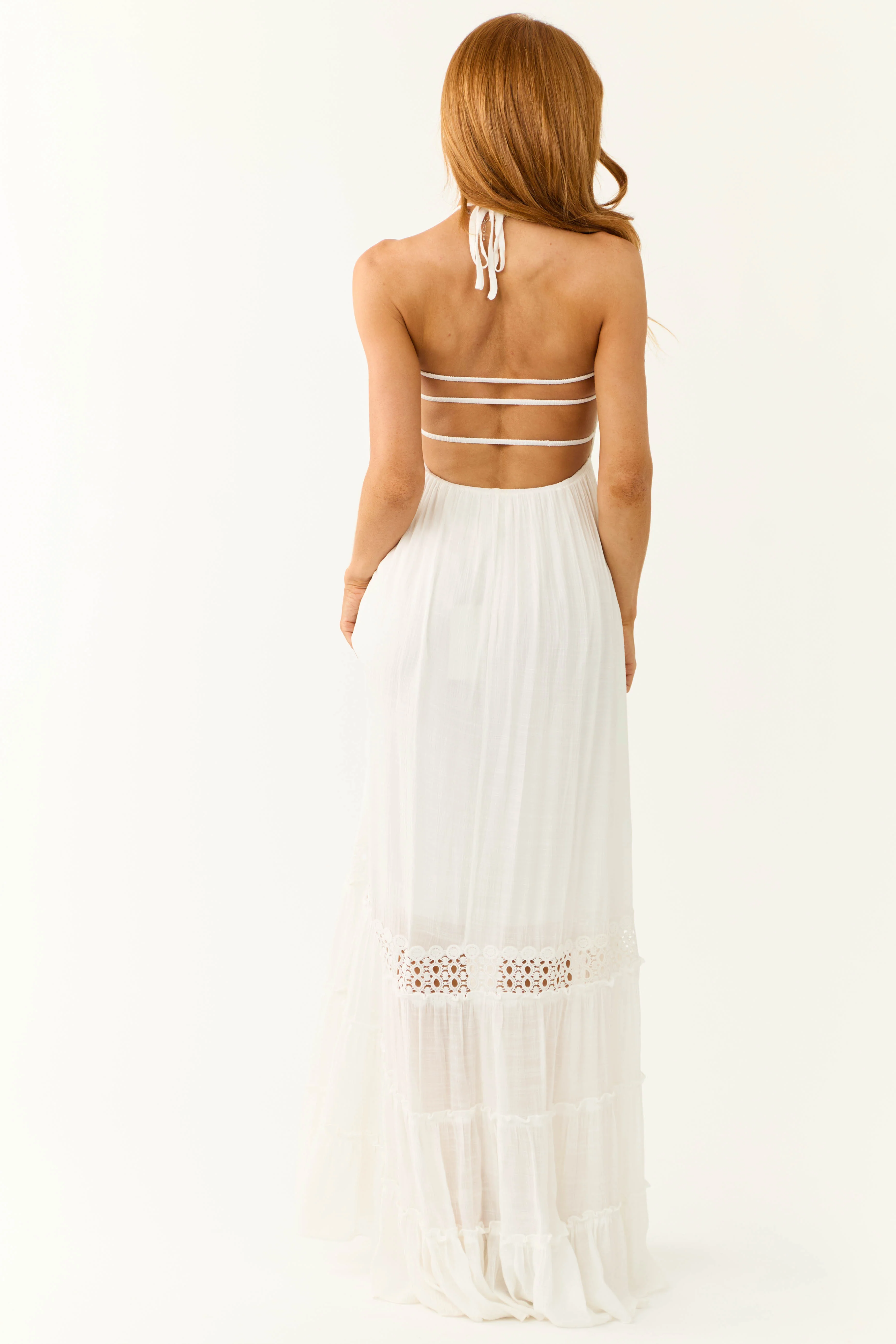Off White Crochet Bodice Tiered Midi Dress