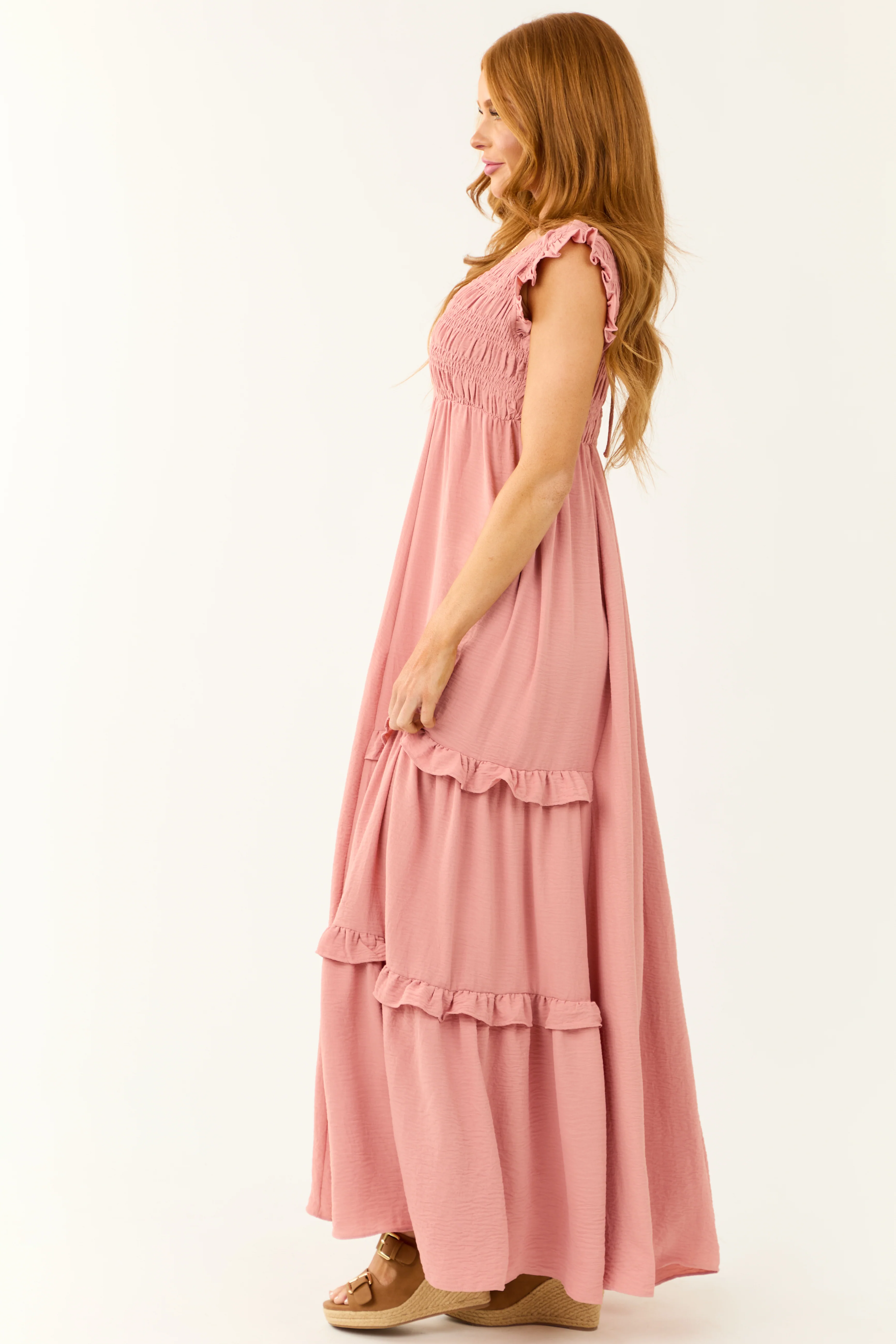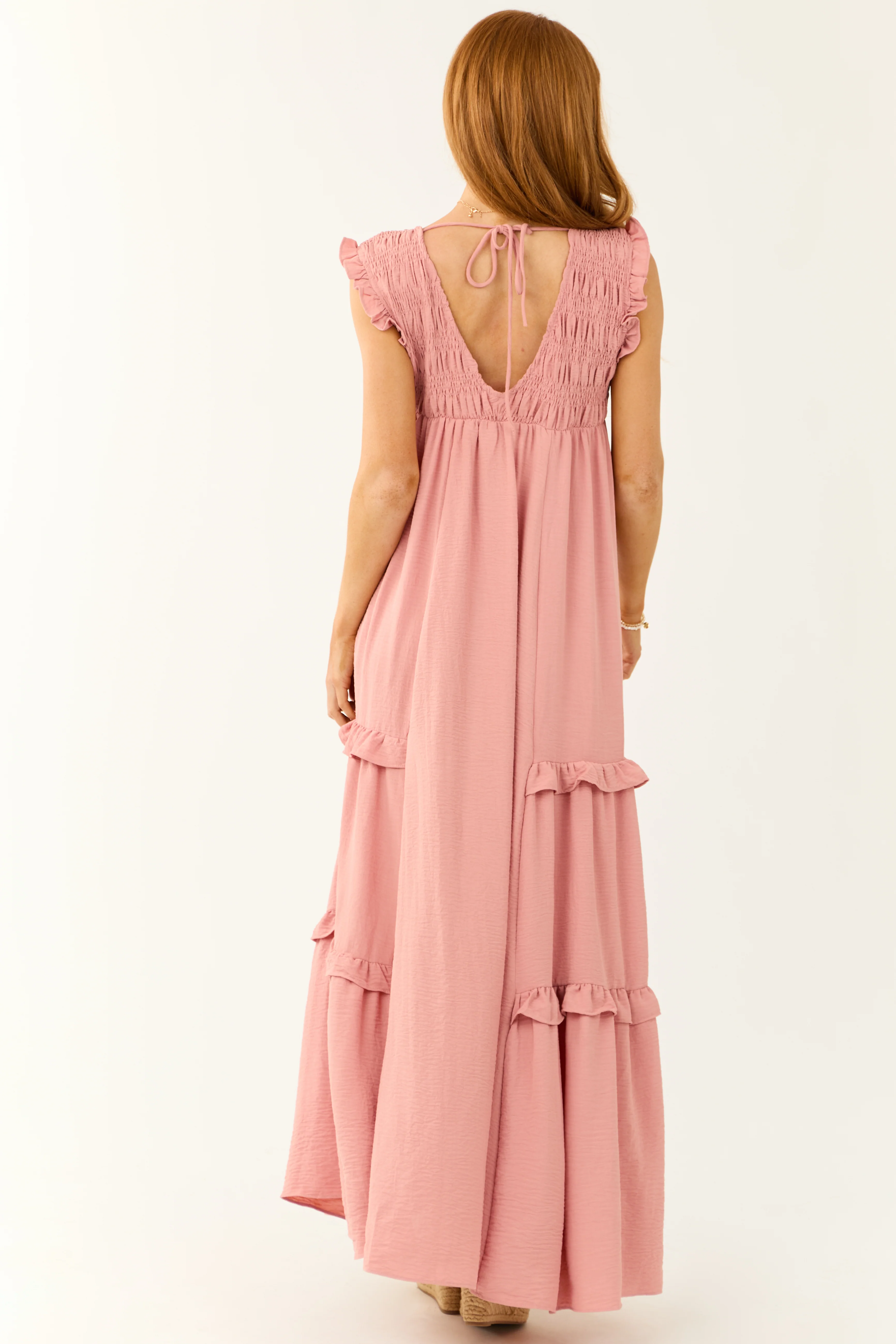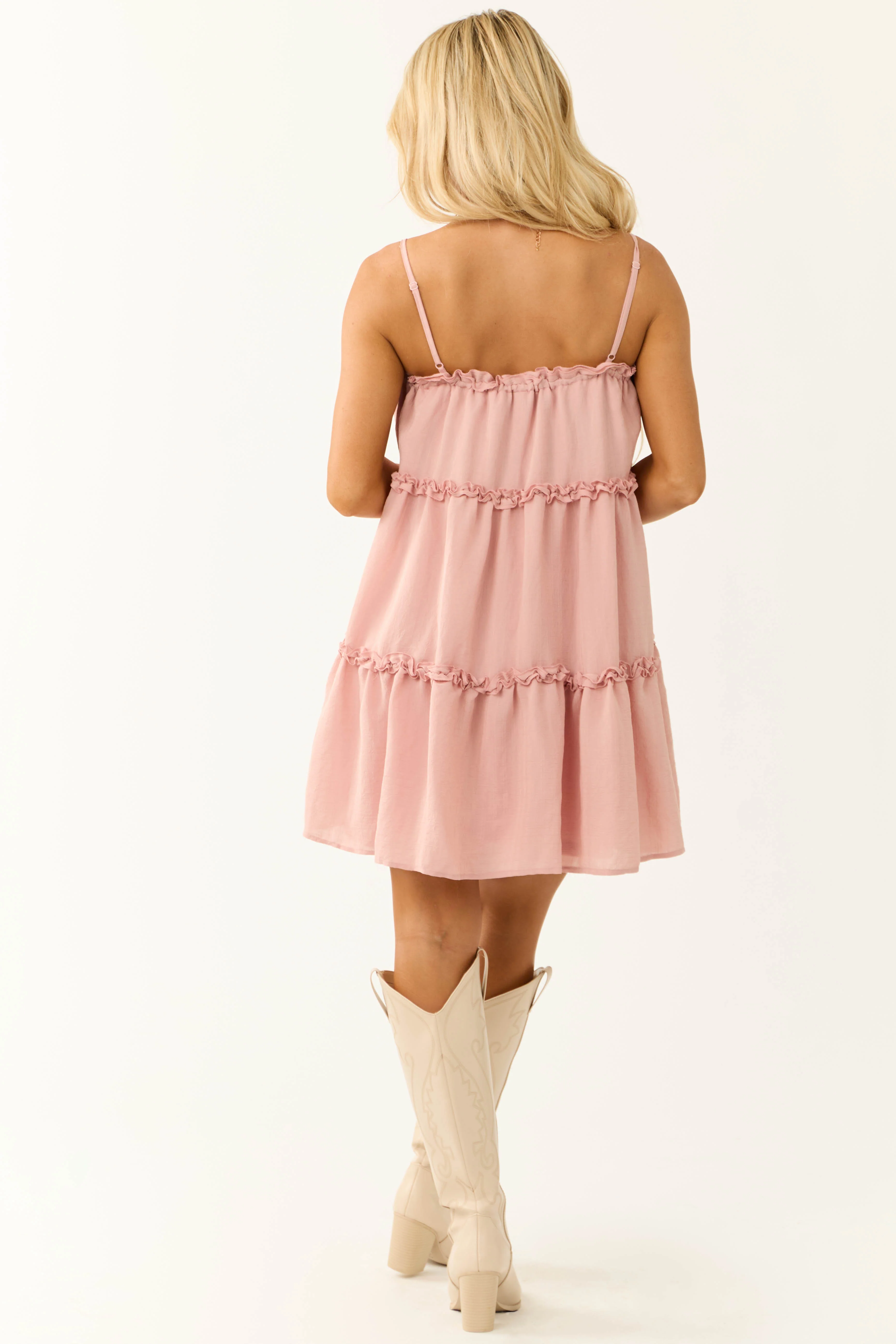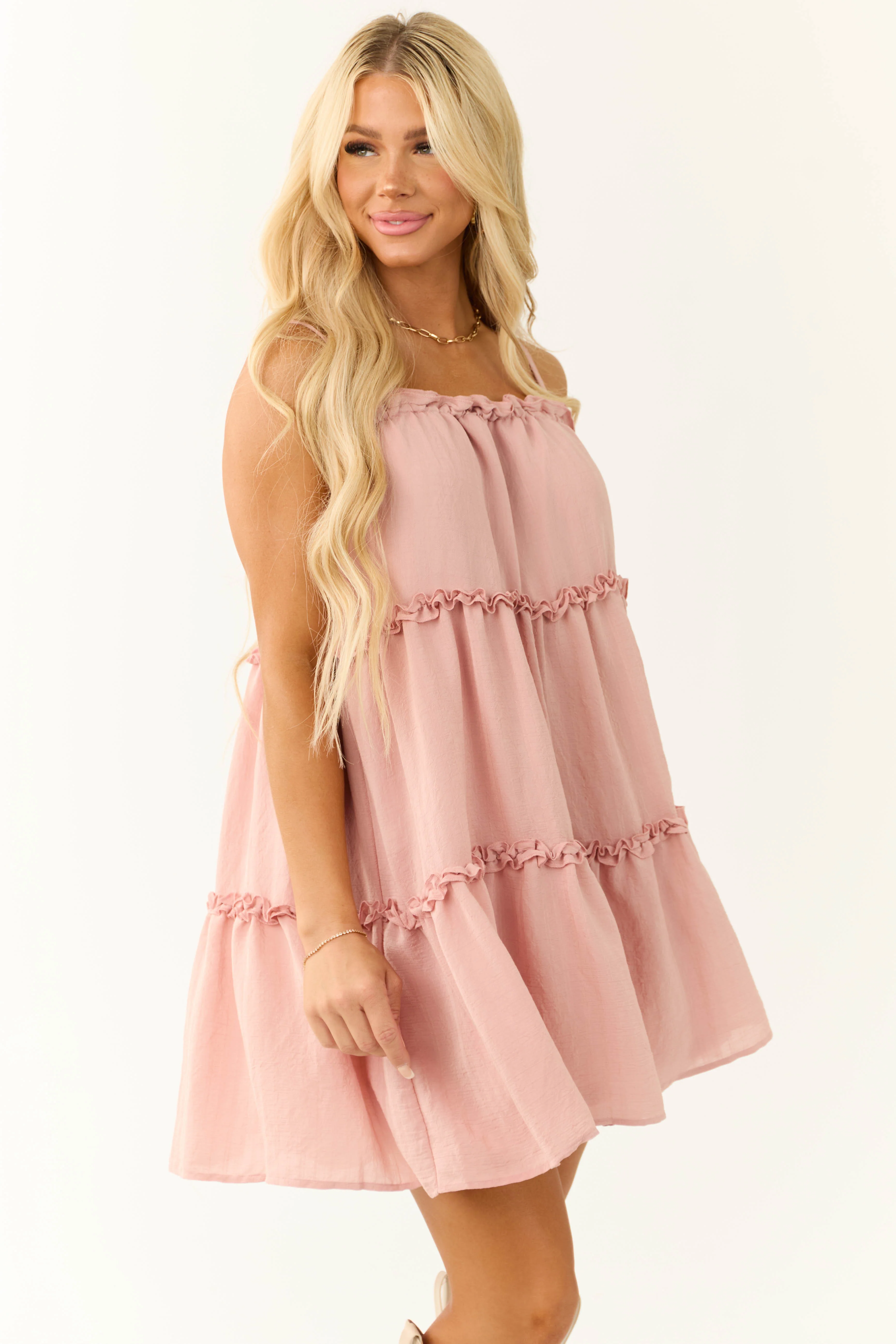 Dusty Blush Sleeveless Frill Tiered Mini Dress