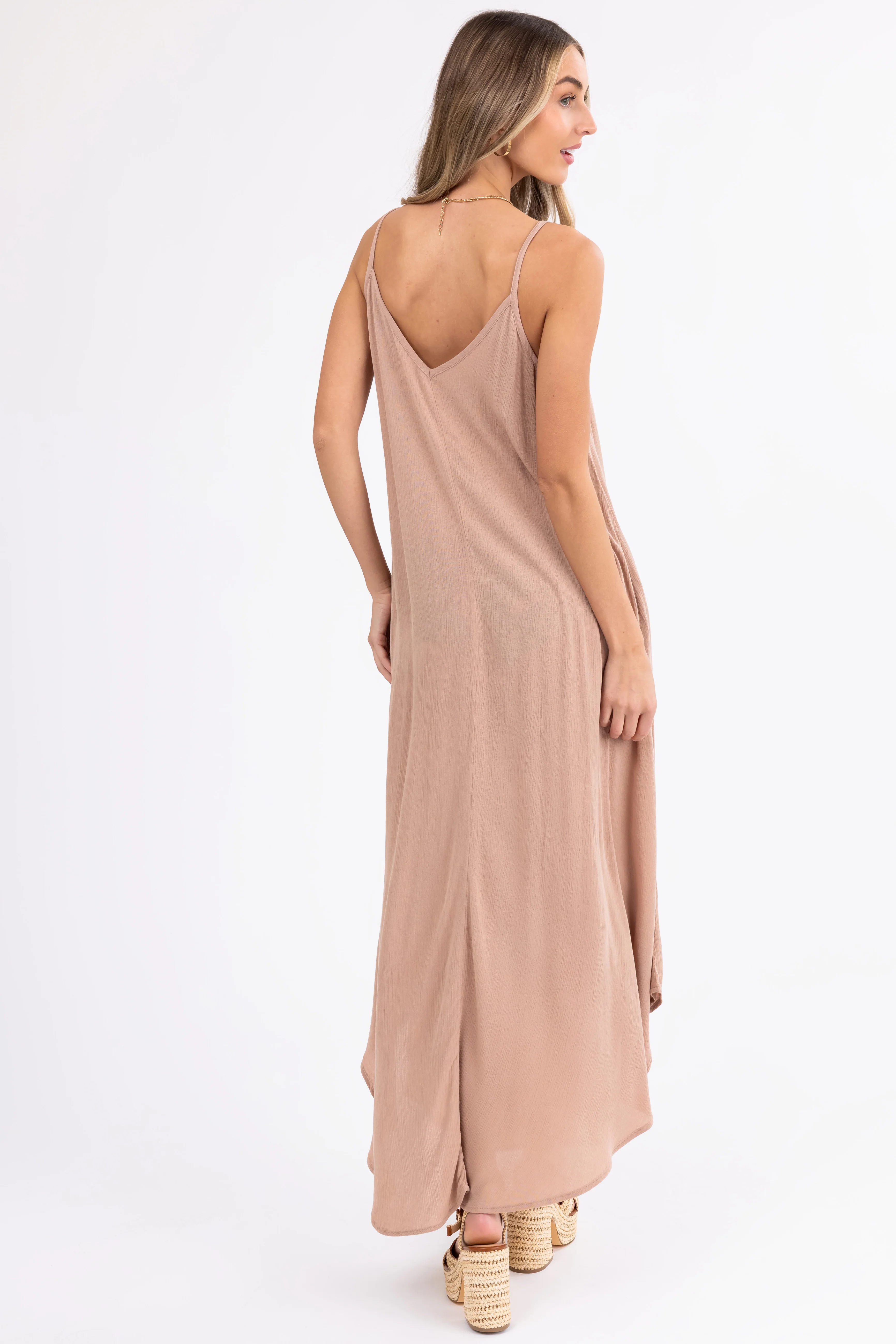 Rose Taupe Sleeveless Ruffle Tiered Mini Dress