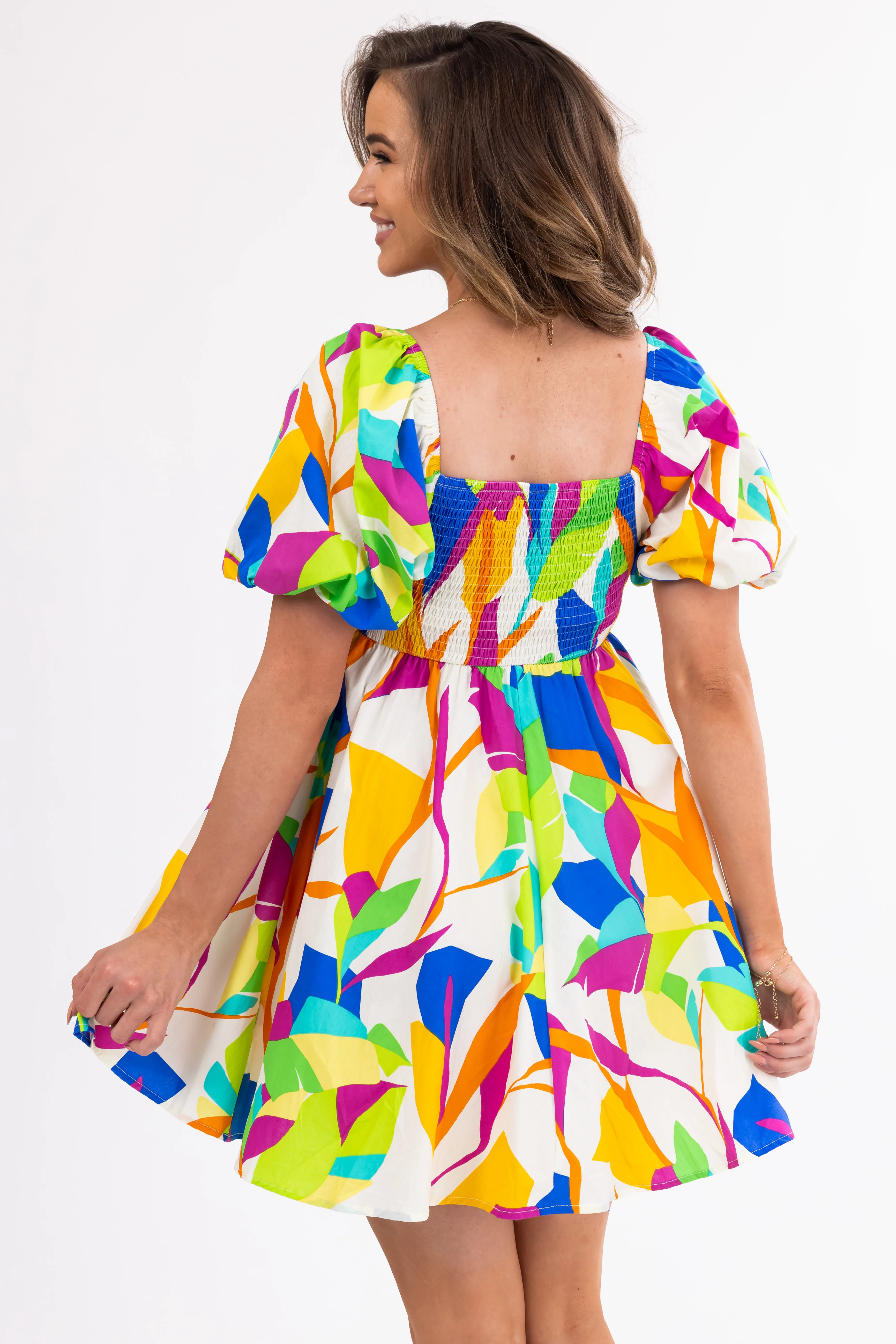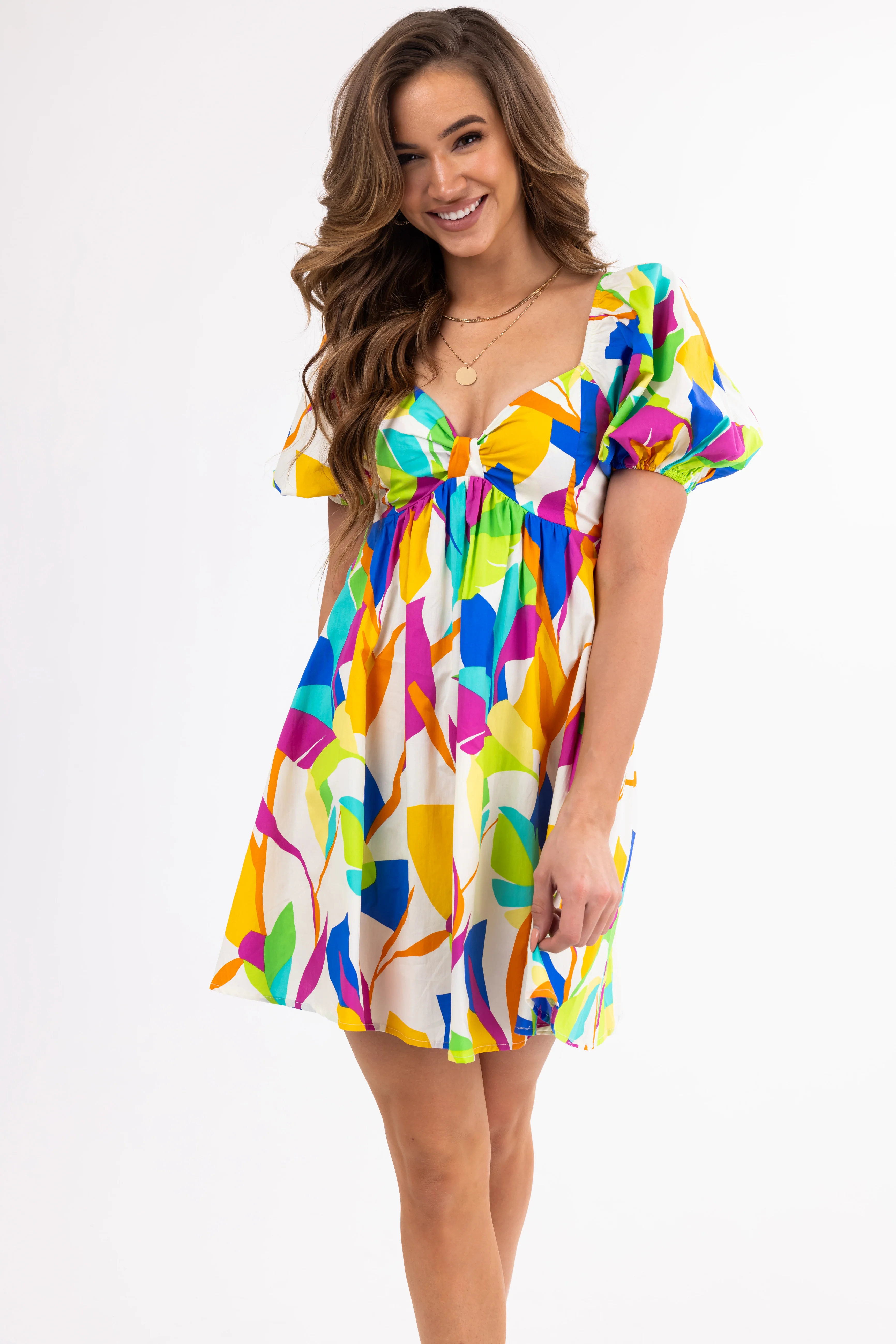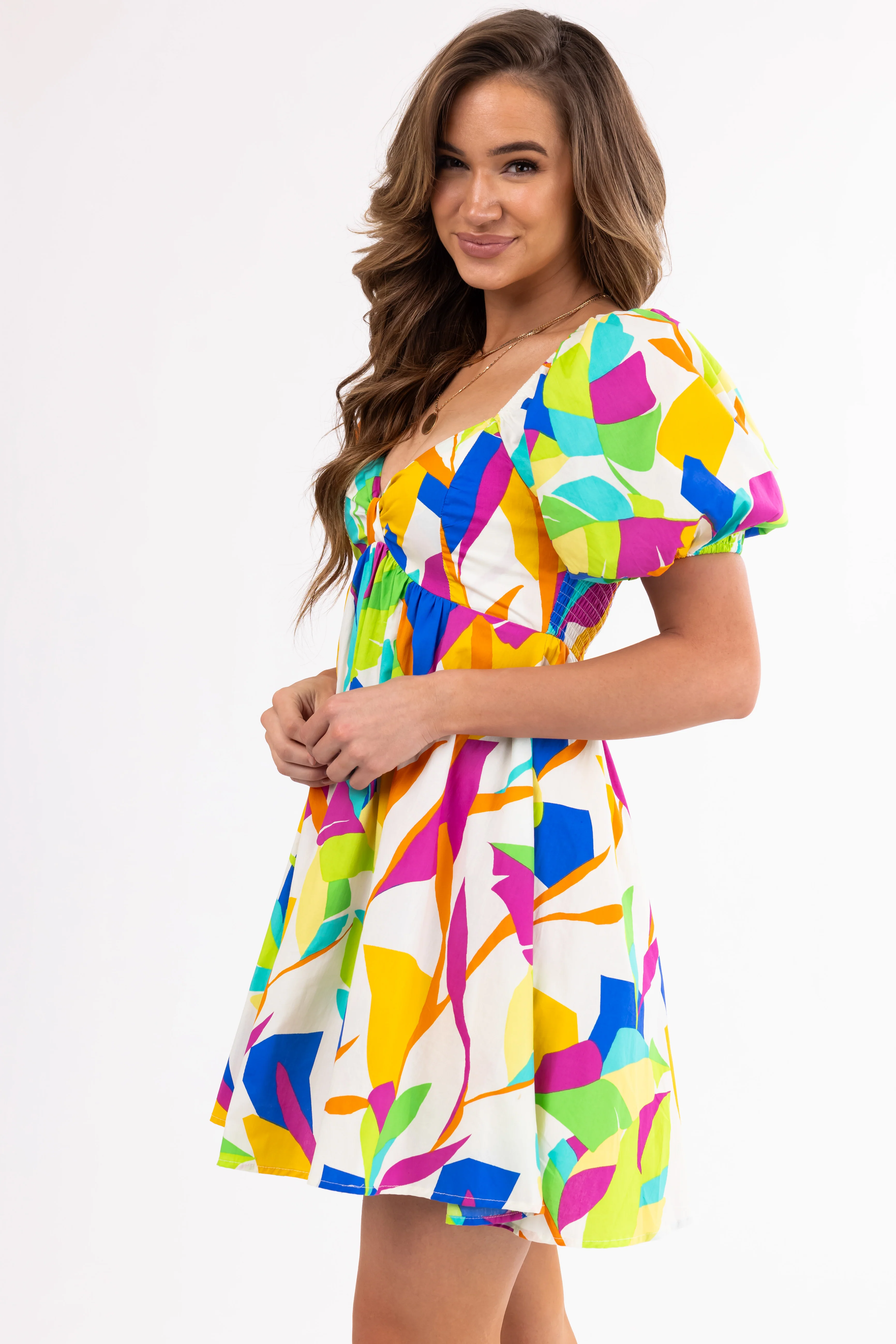 Flying Tomato Ivory Abstract Print Mini Dress