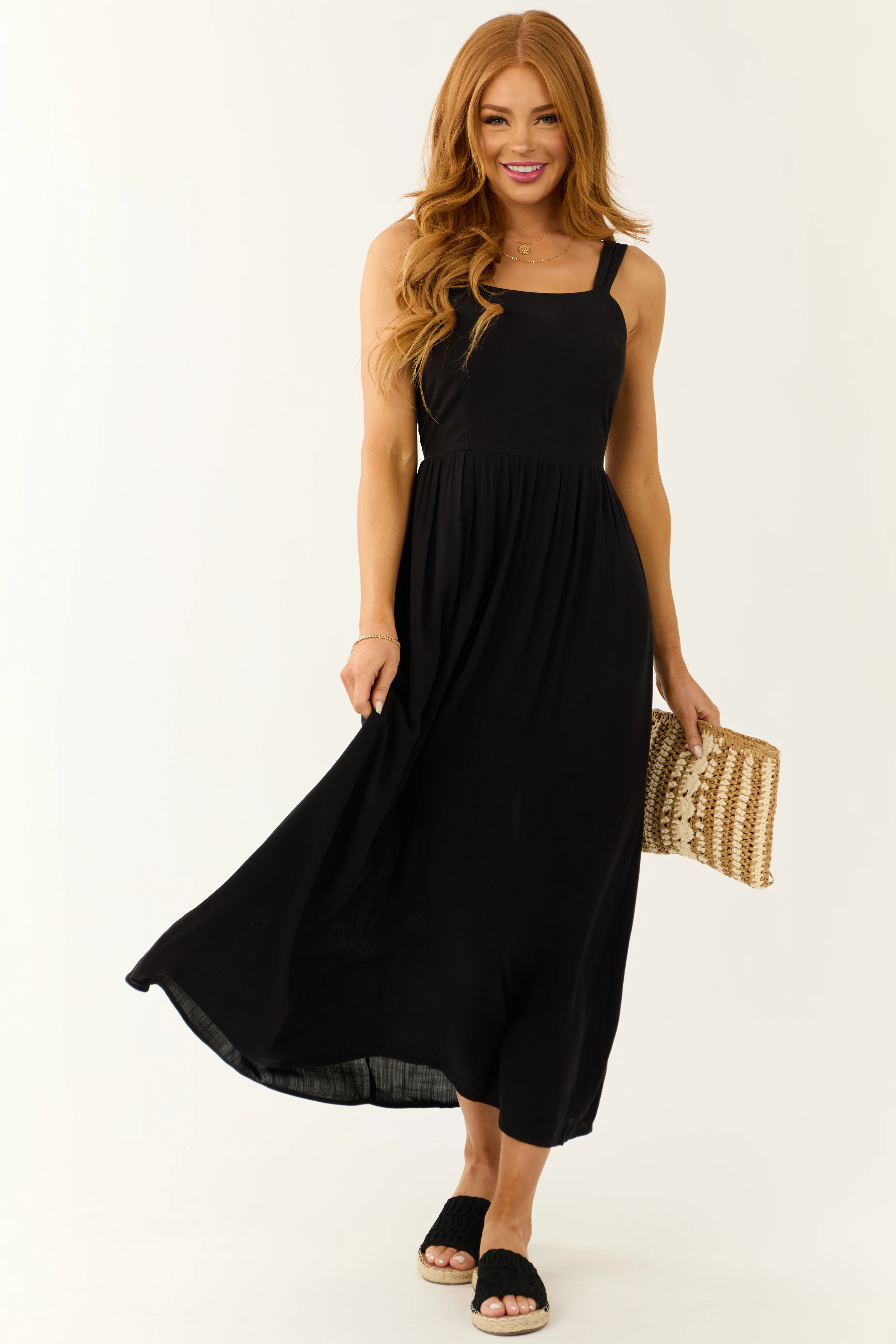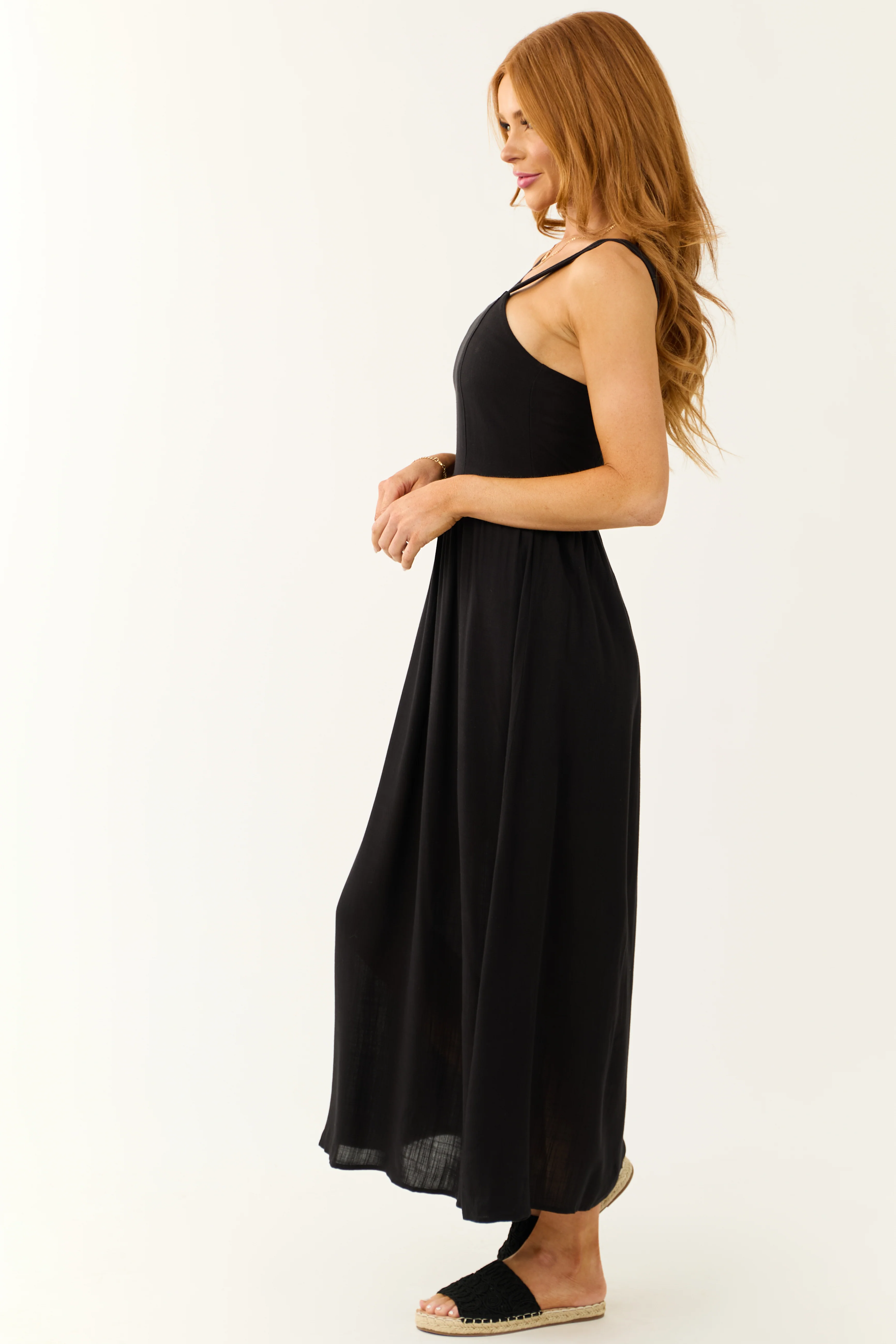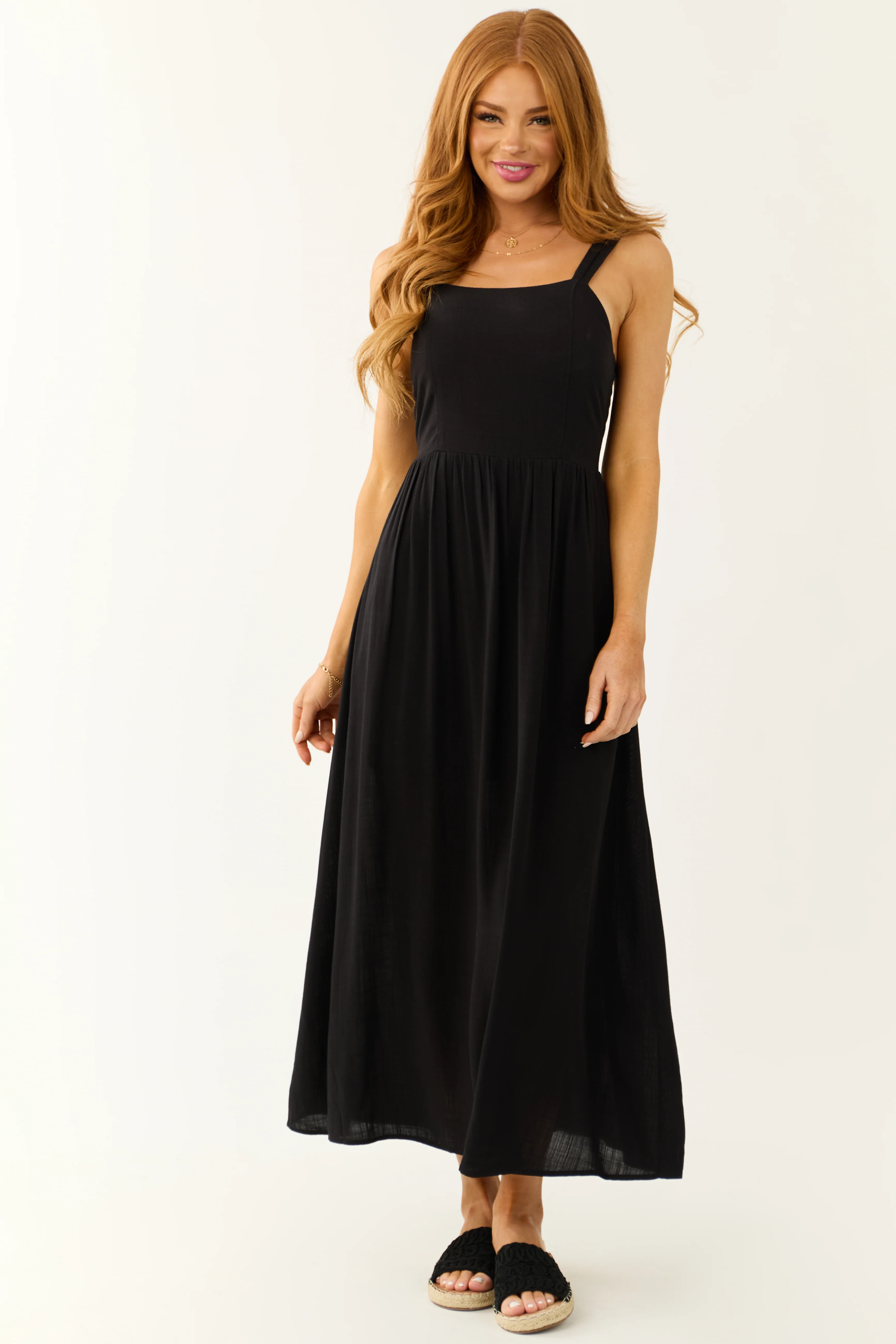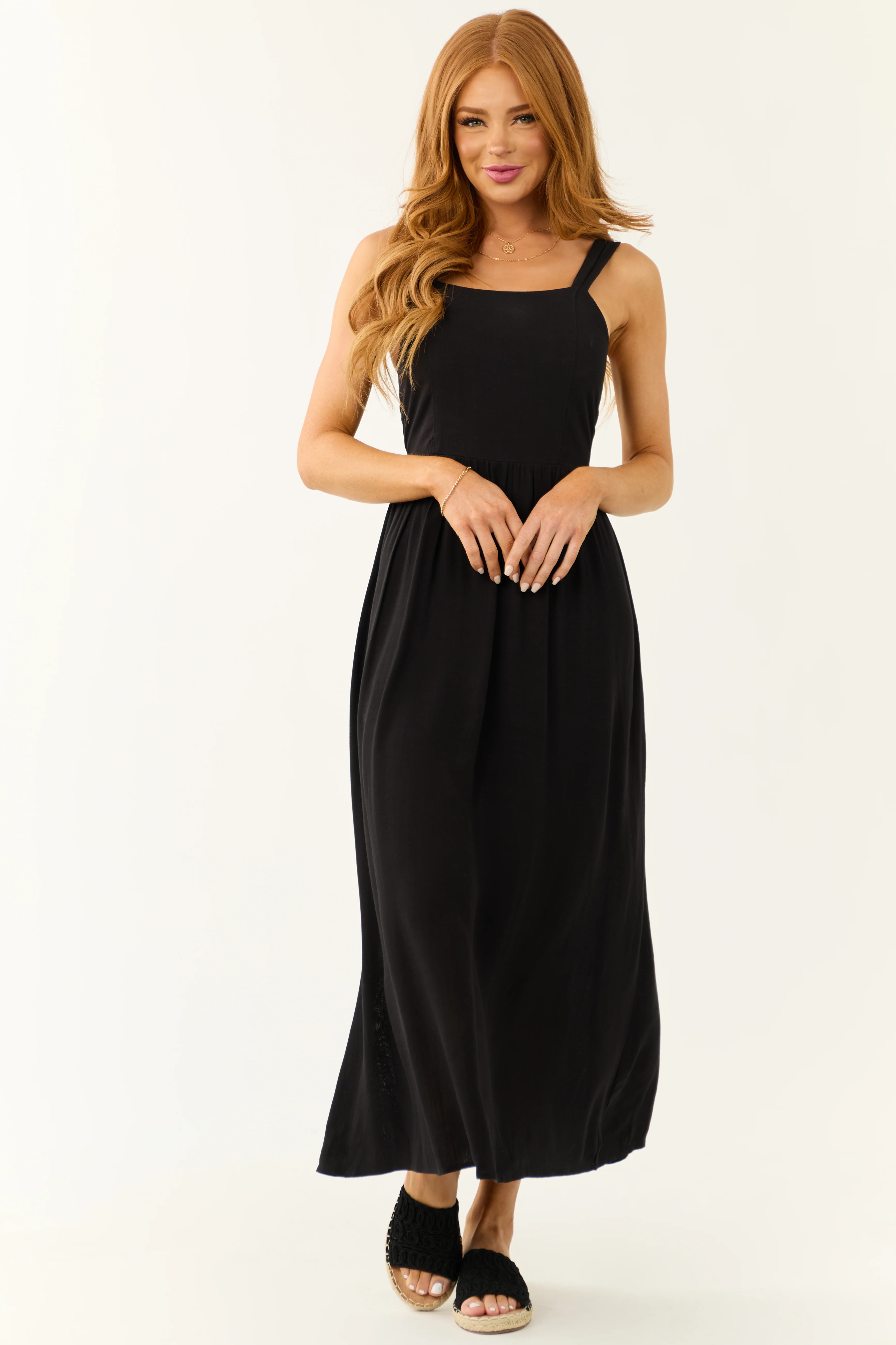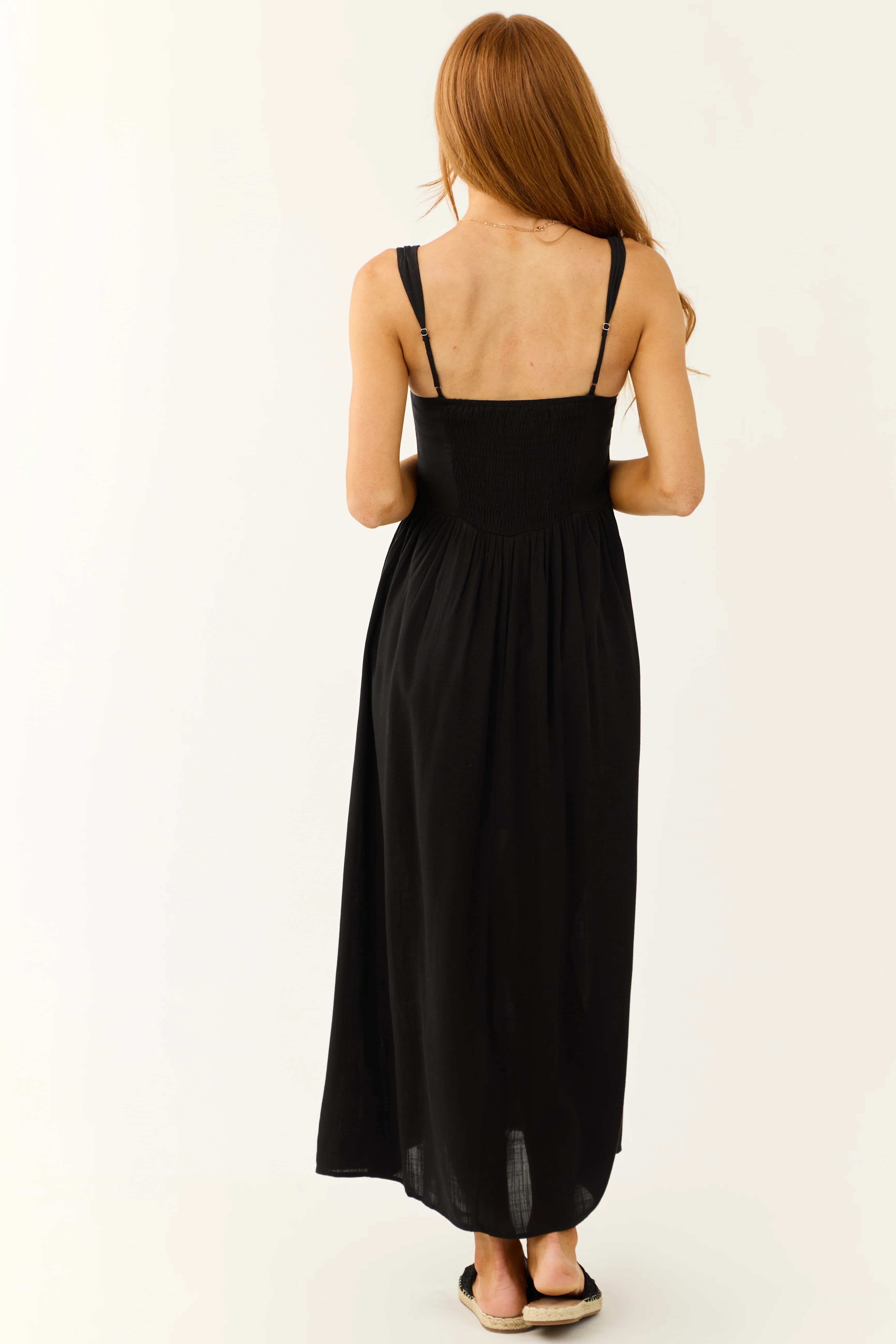 Black Sleeveless Smocked Back Maxi Dress