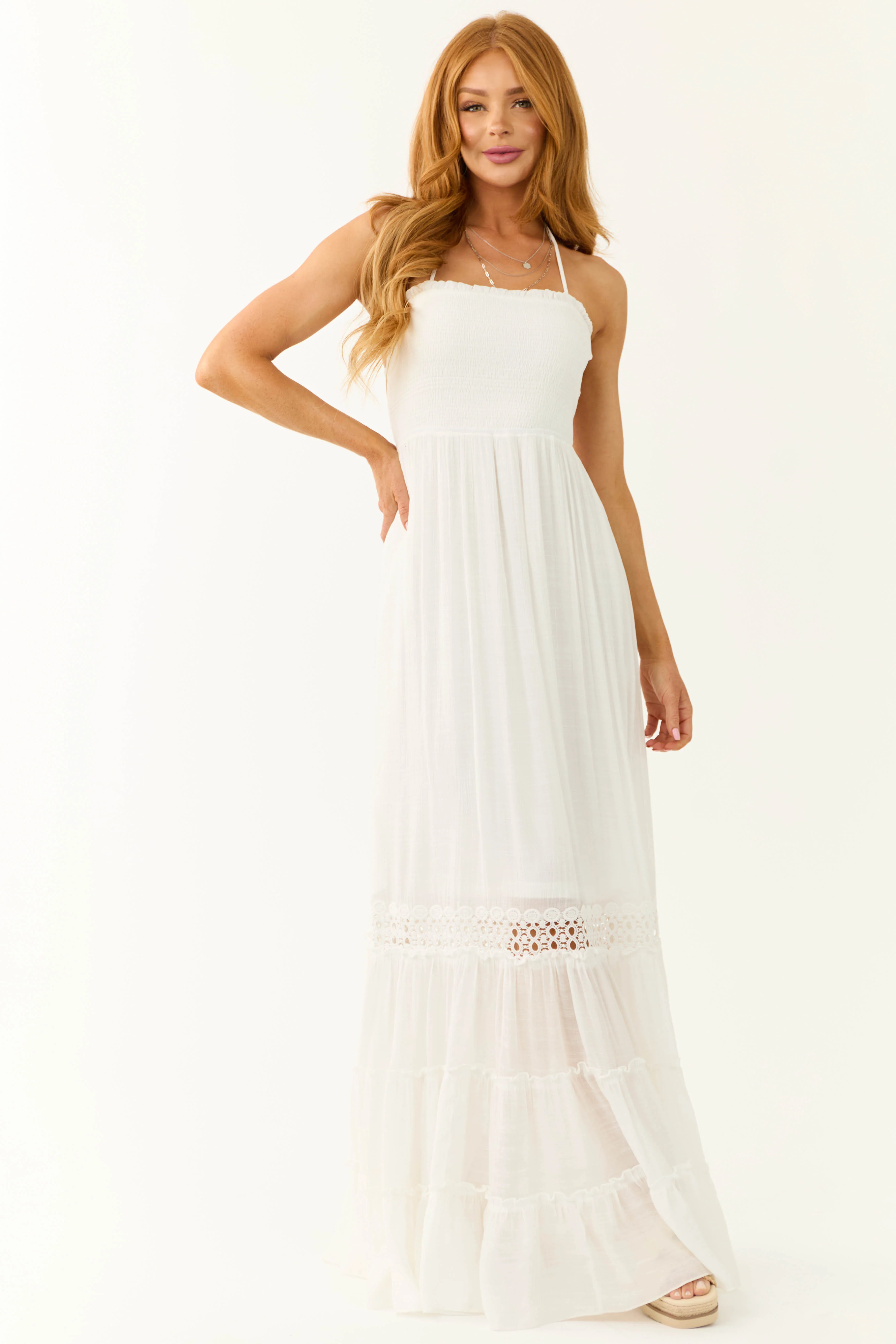 White Sleeveless Tiered Smocked Maxi Dress