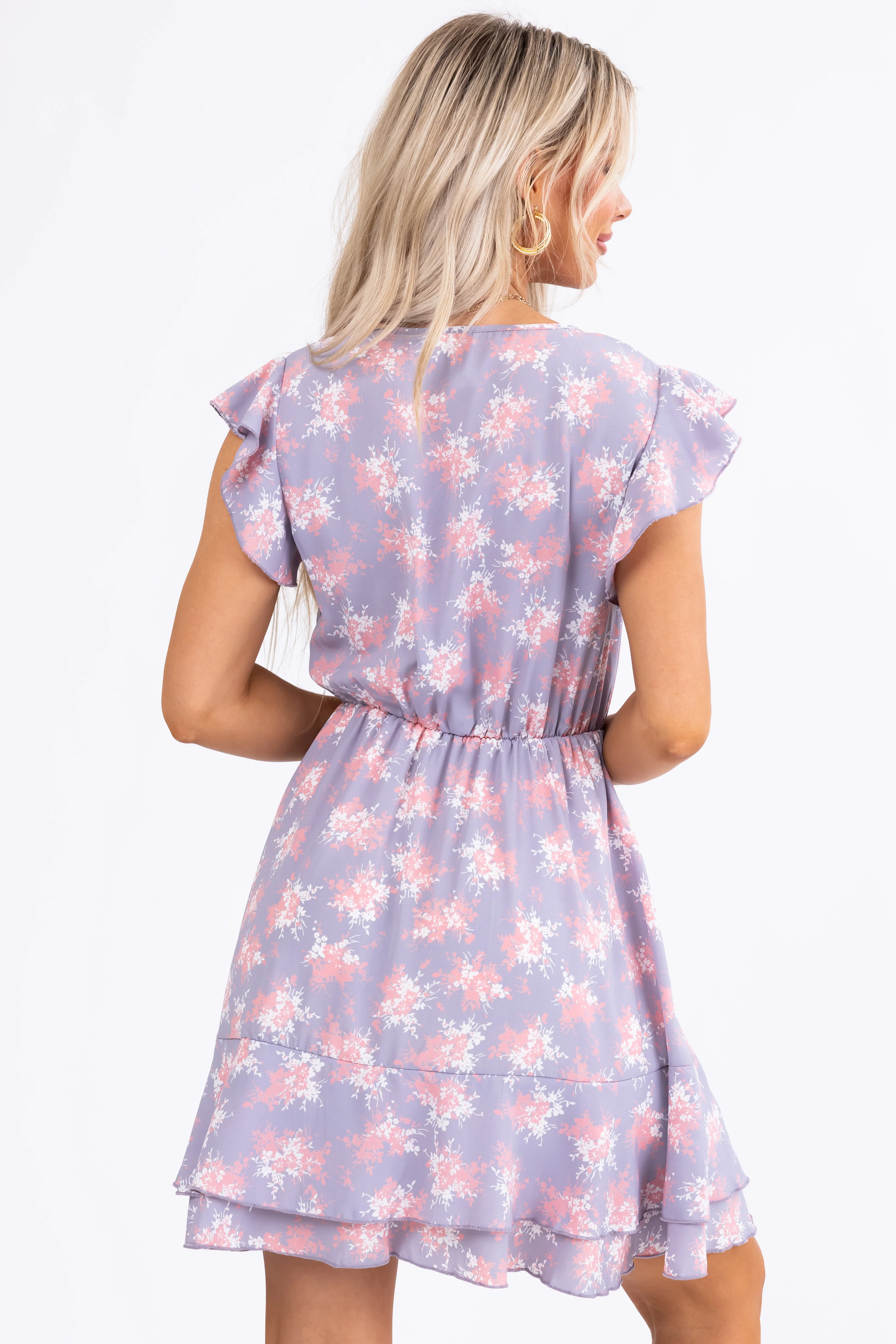 Cherry Blossom Ruffle Short Sleeve Mini Dress