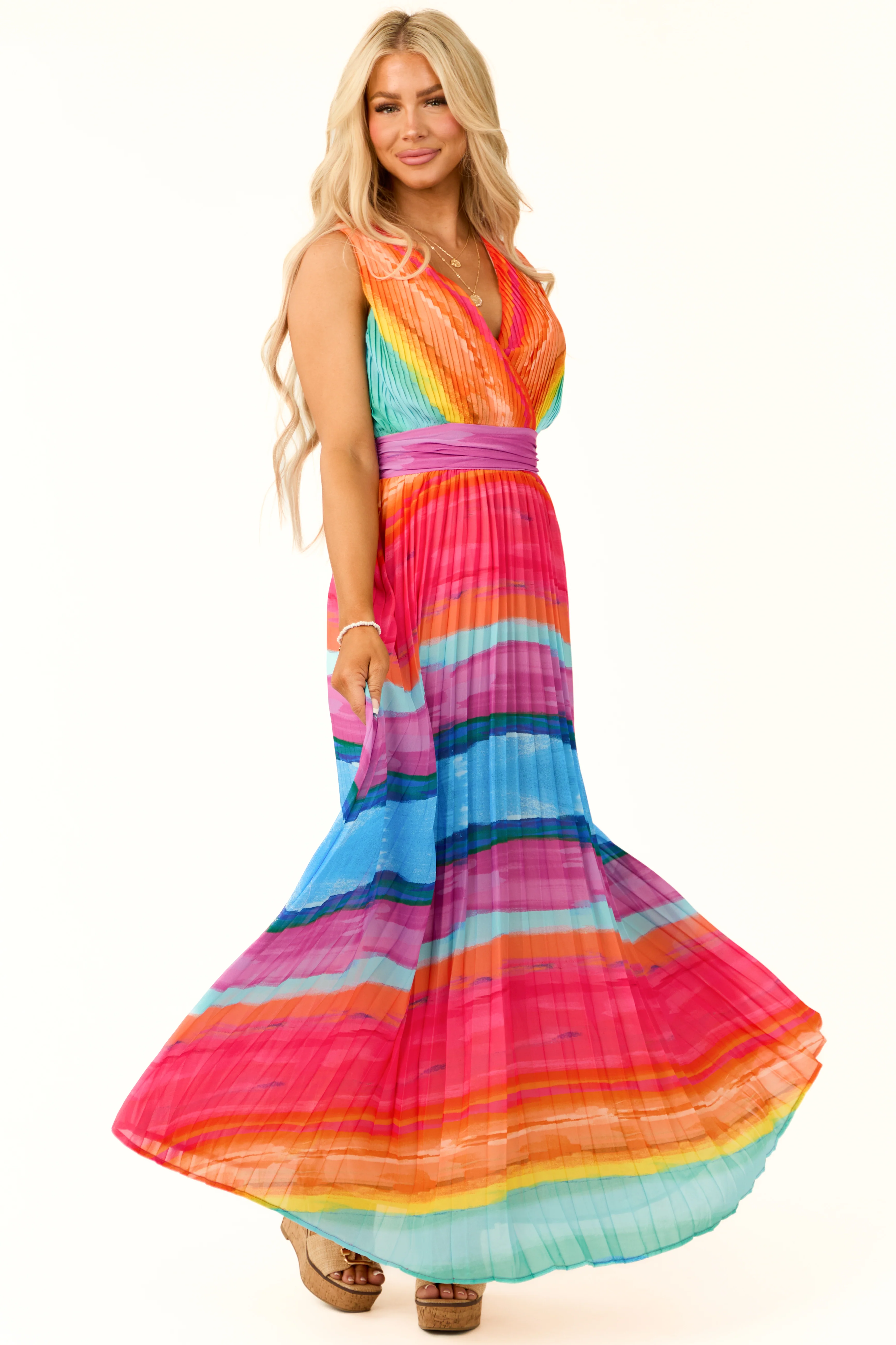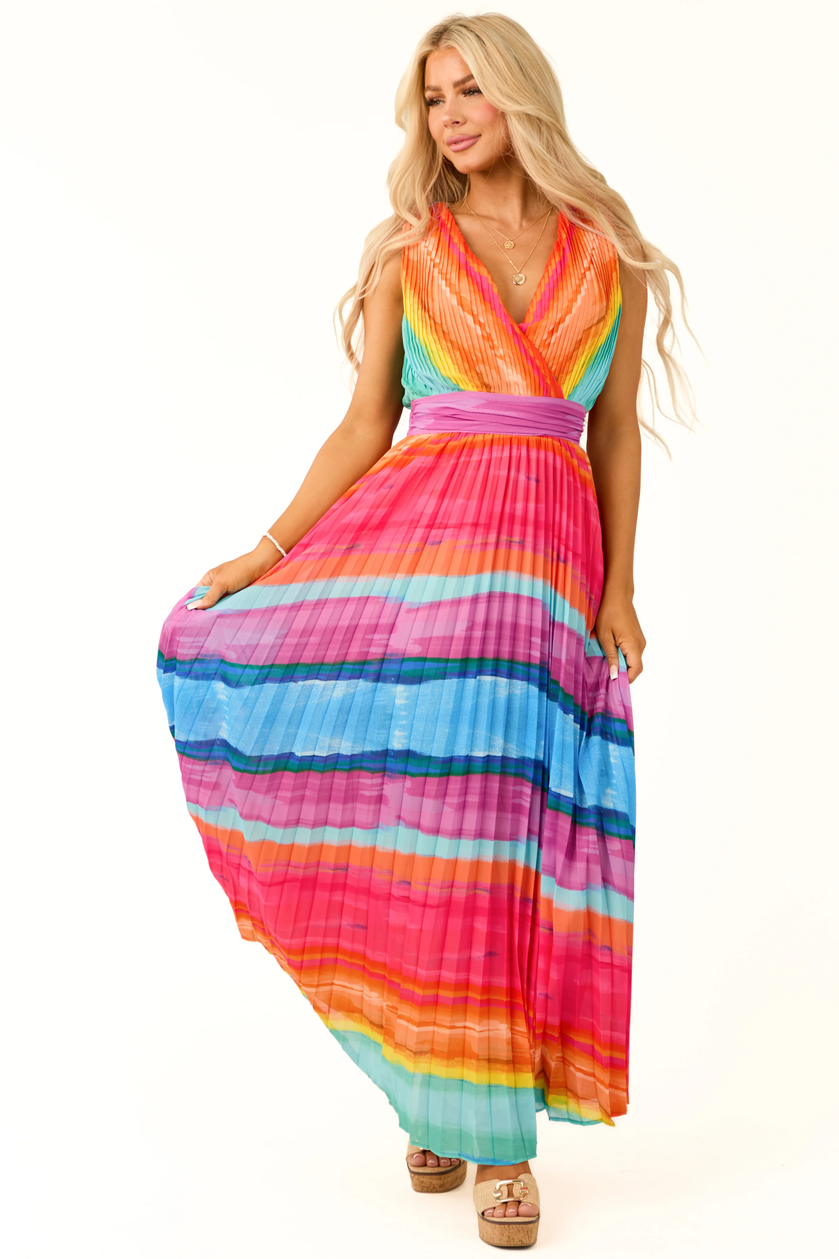 Flying Tomato Neon Multicolor Stripe Dress