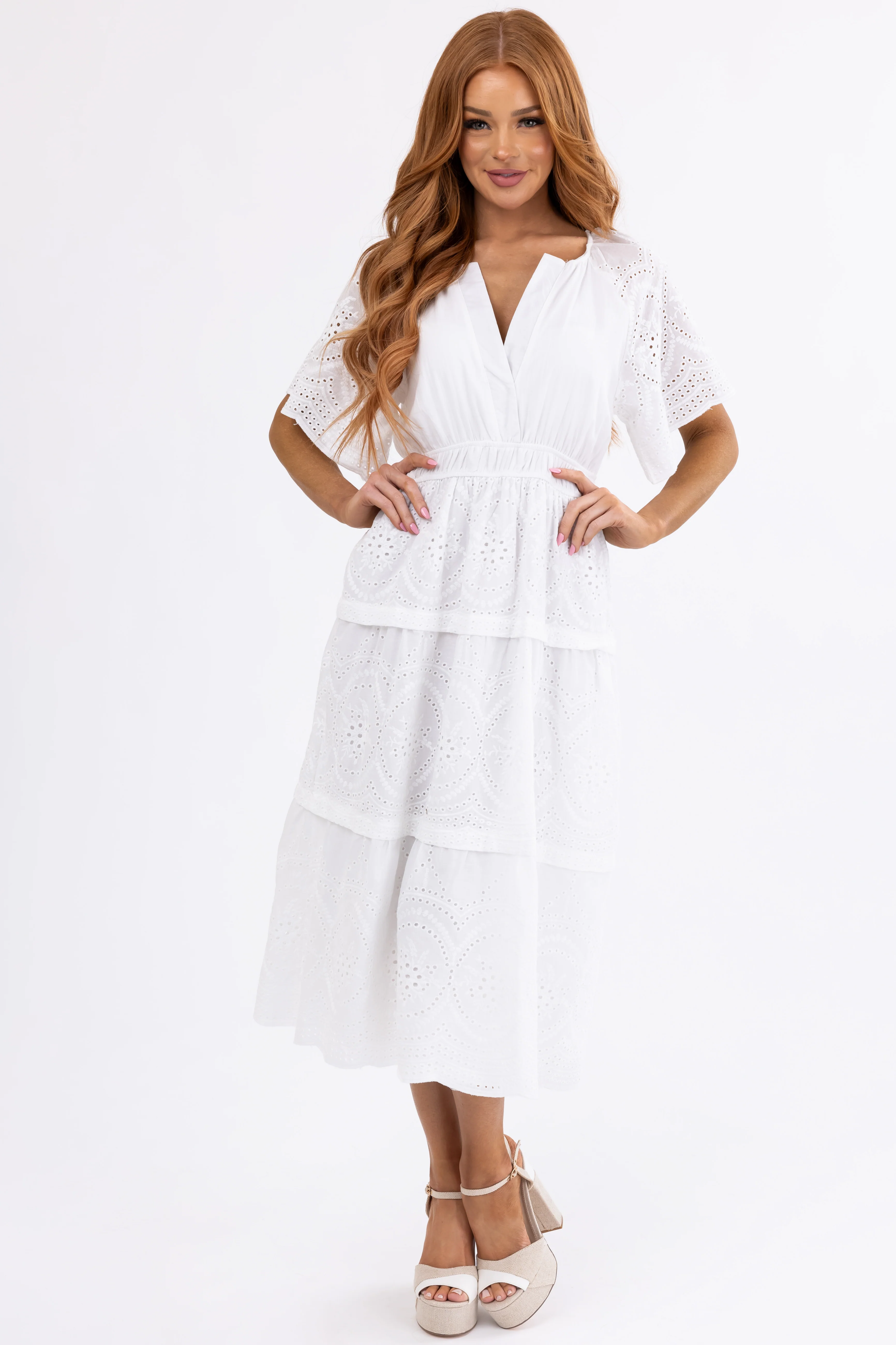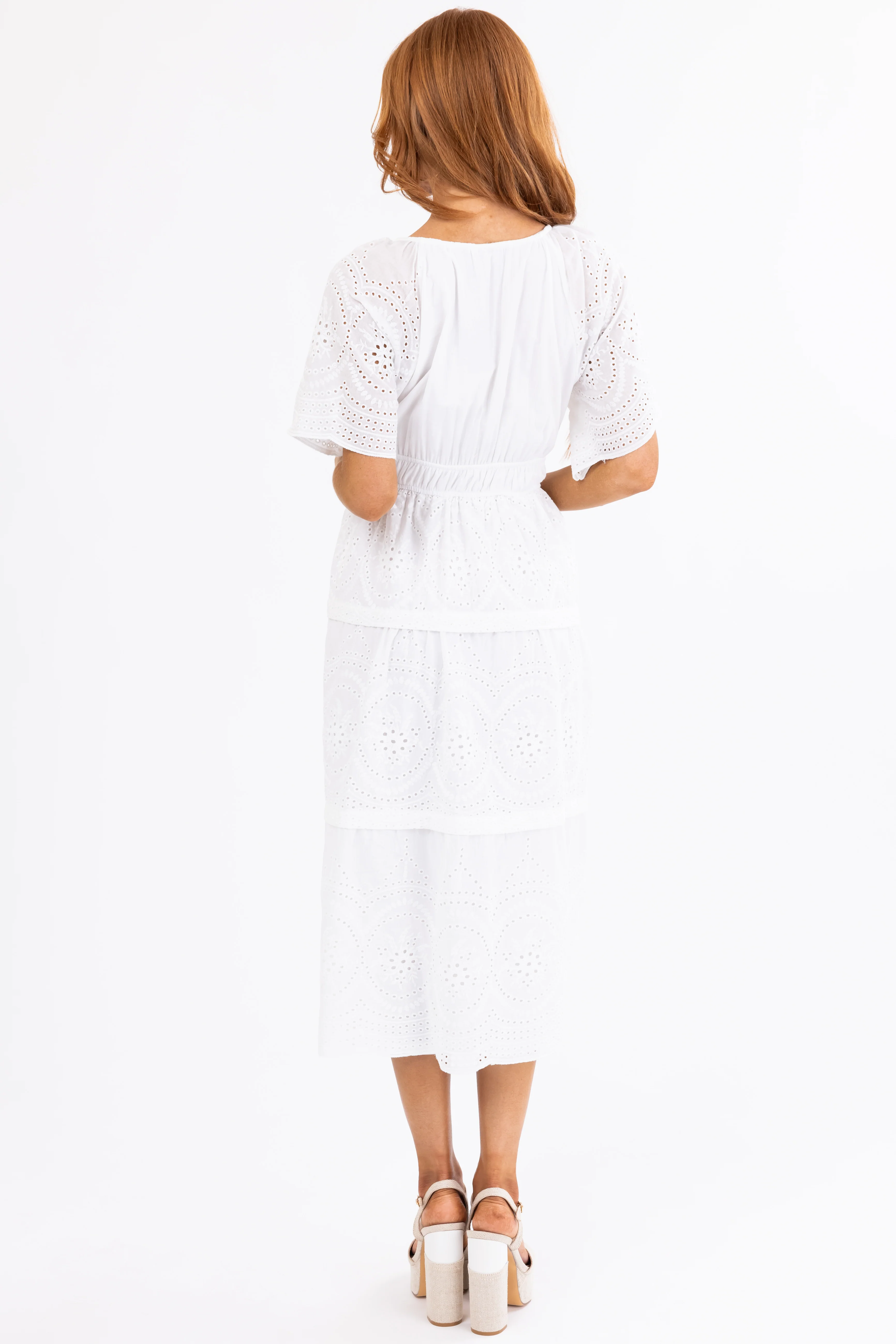 Off White Eyelet Detailed Tiered Midi Dress