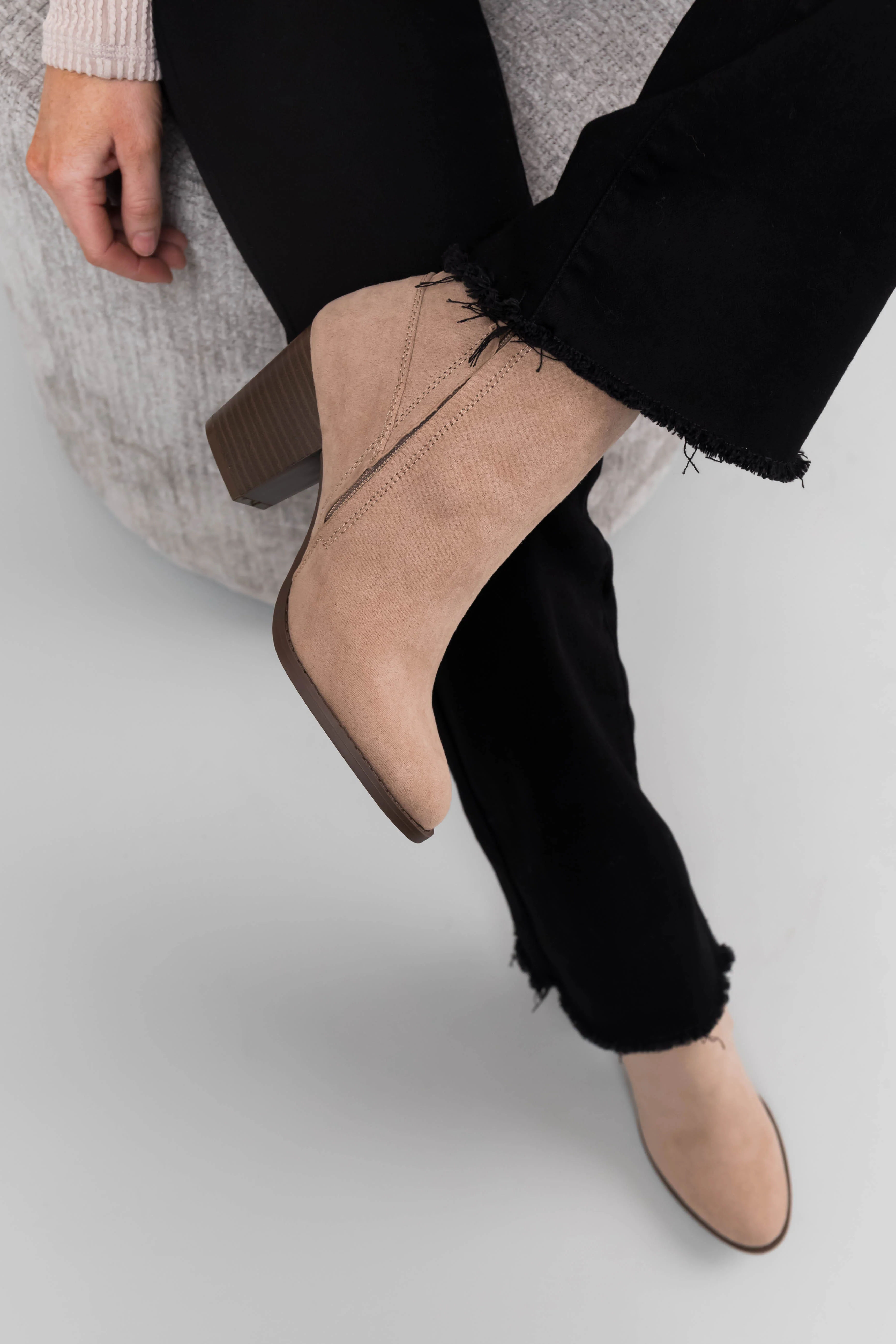 Latte Faux Suede Block Heel Ankle Booties