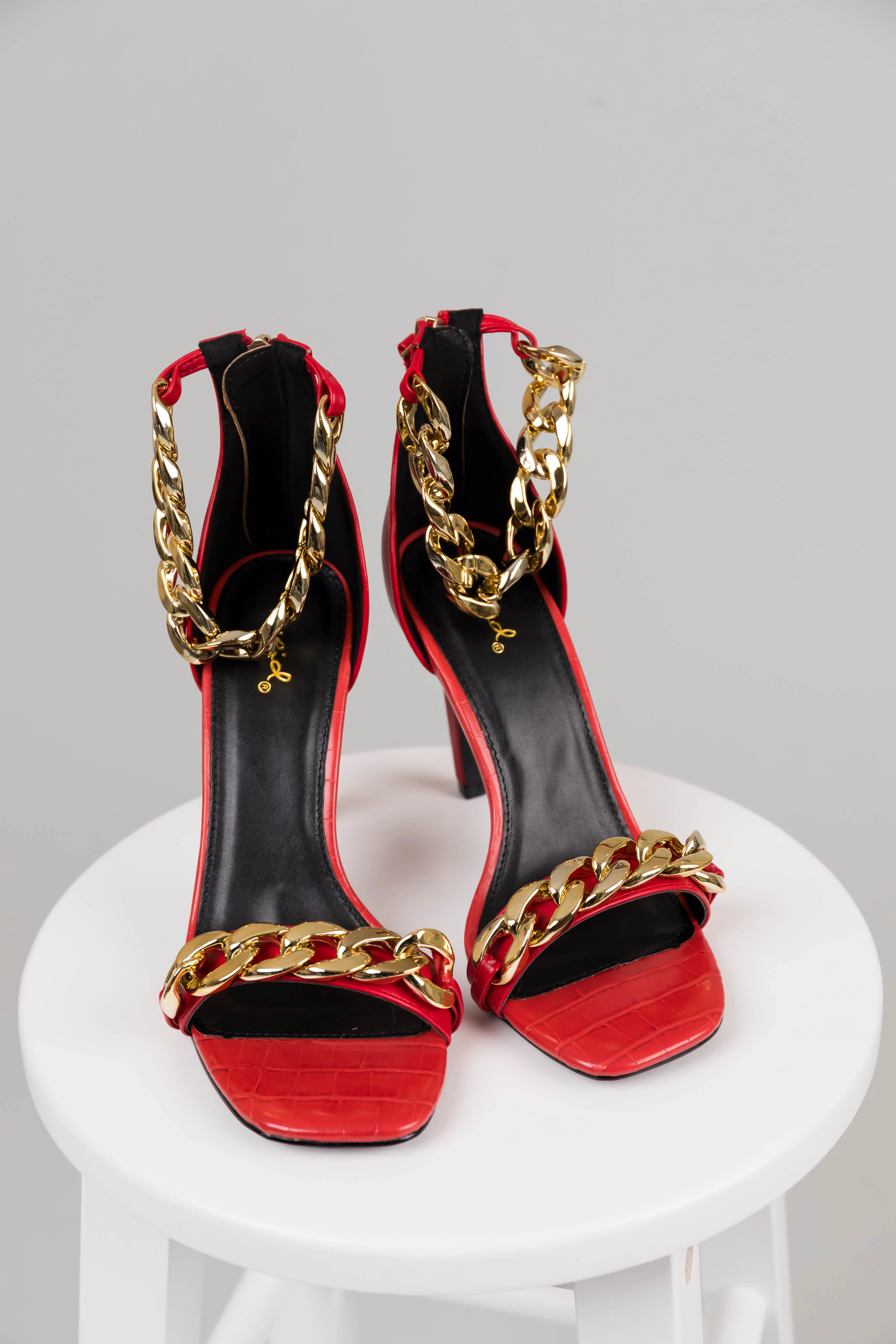 Ruby Square Toe Chain Strap High Heels