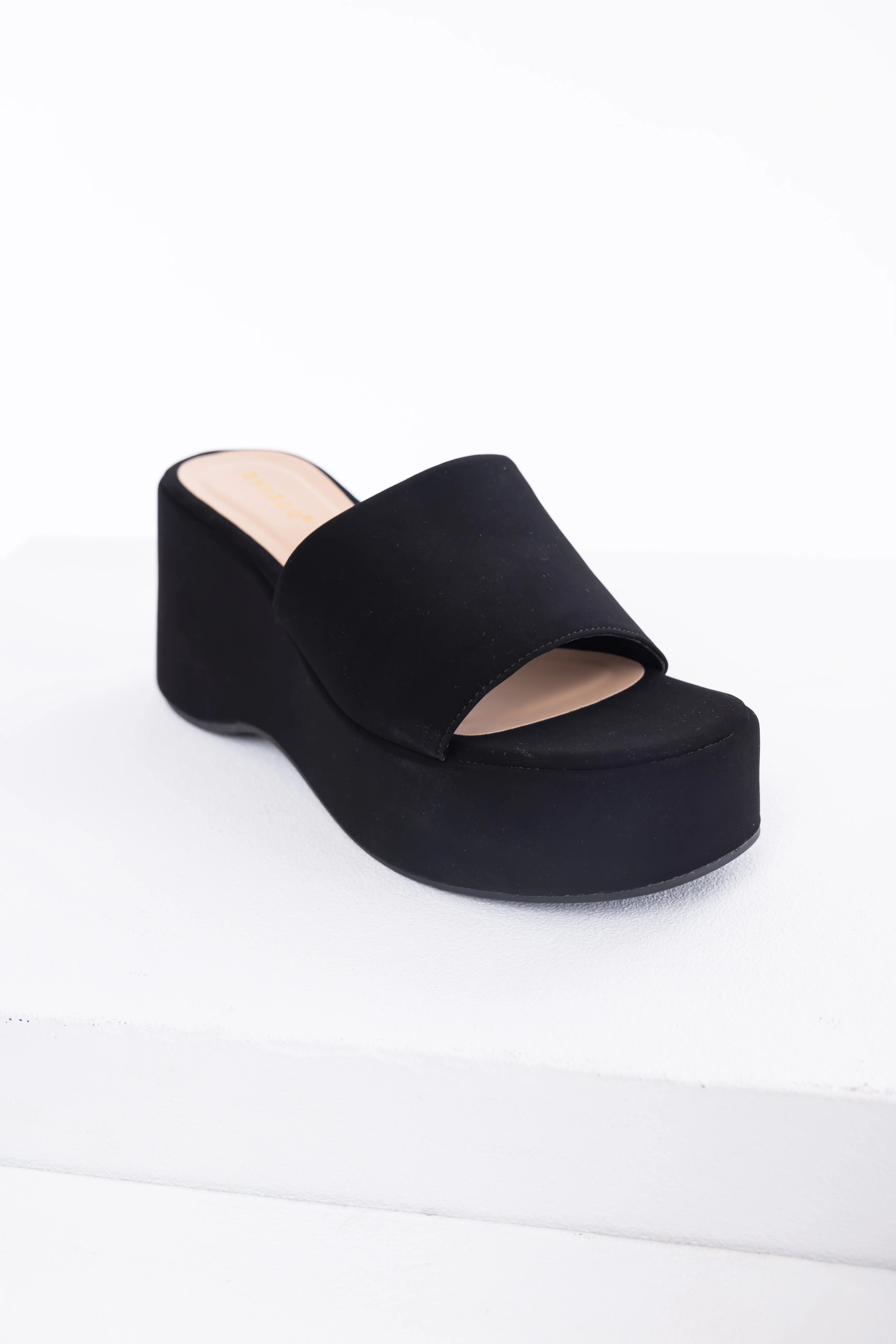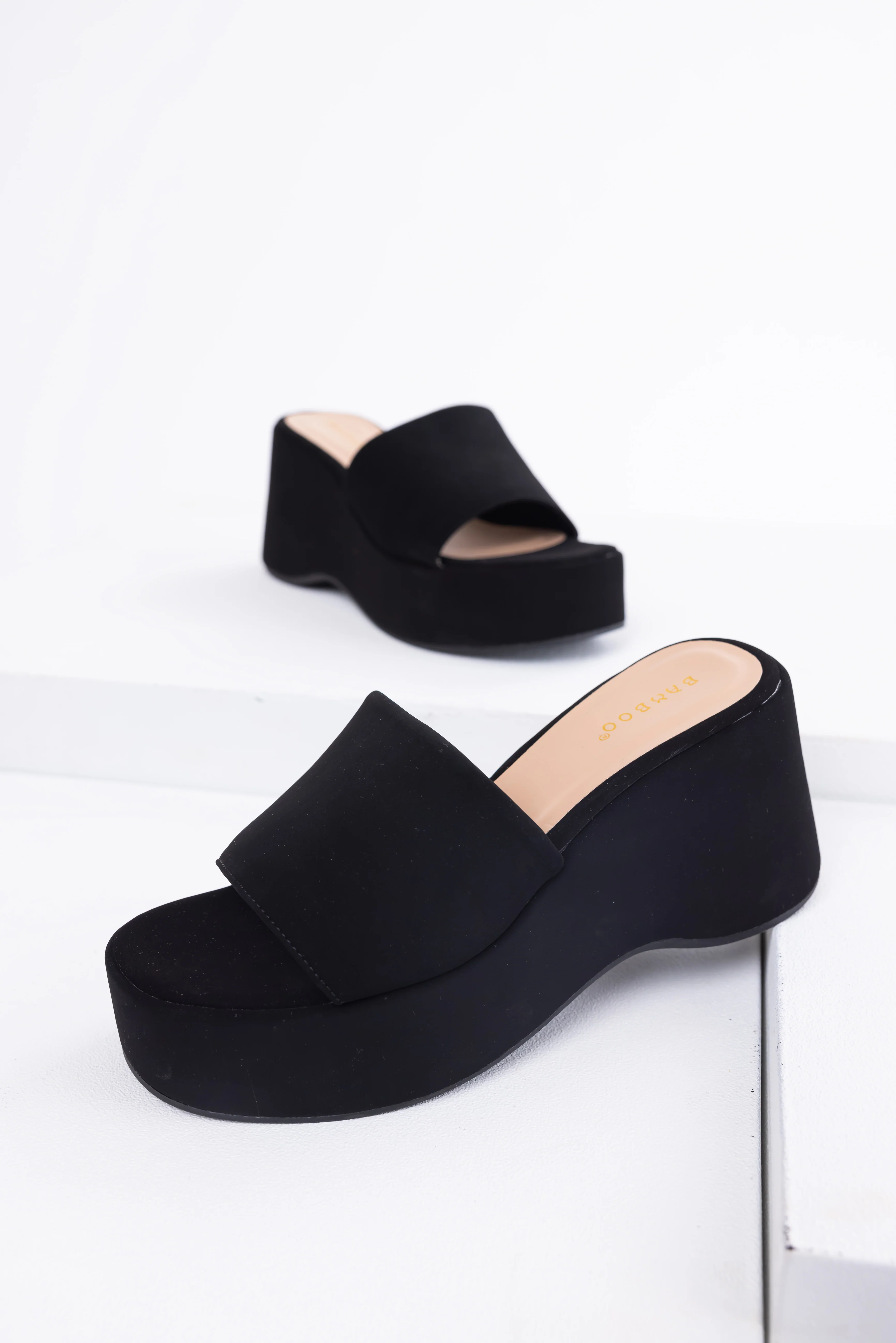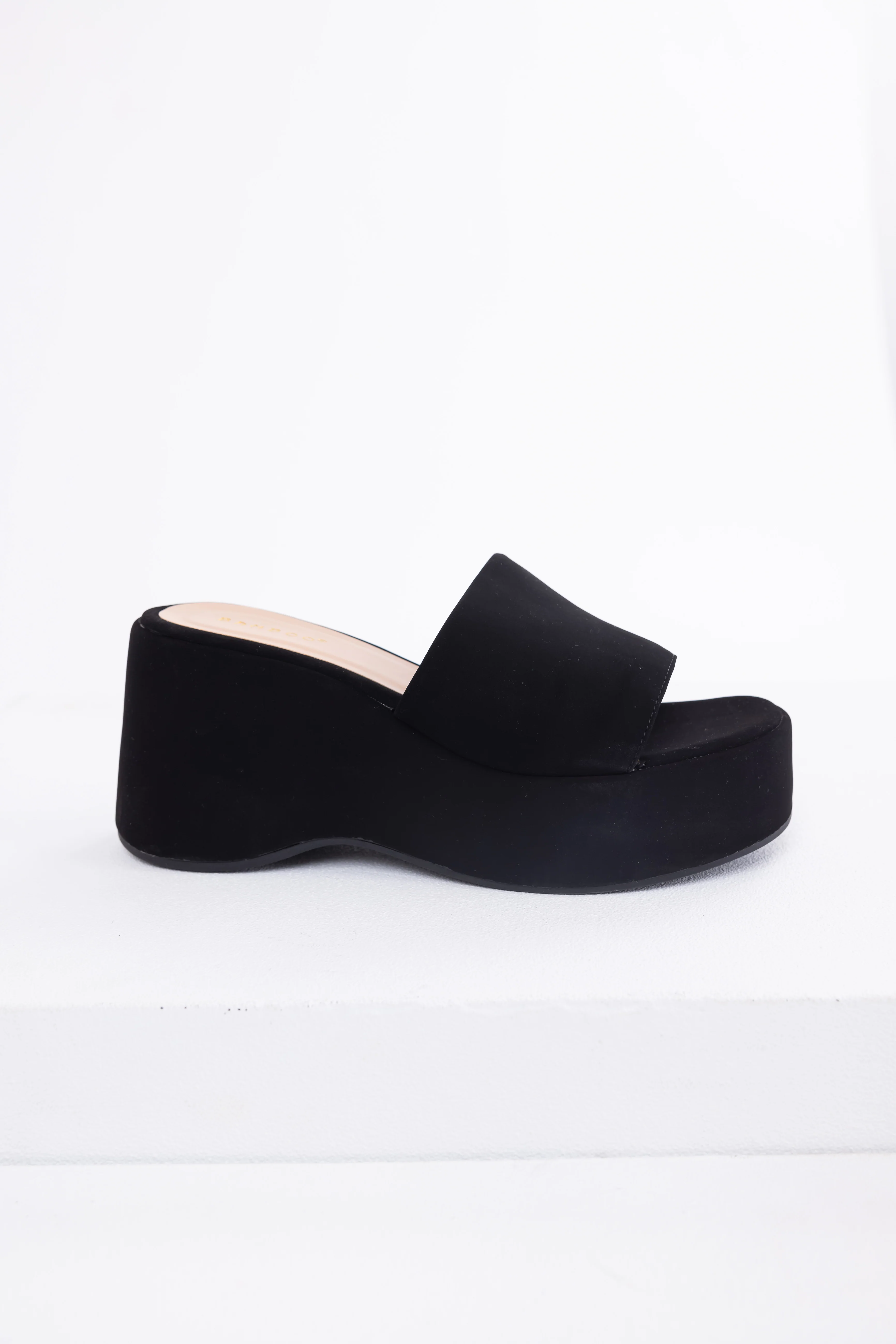 Black Soft Suede Platform Wedge Sandals