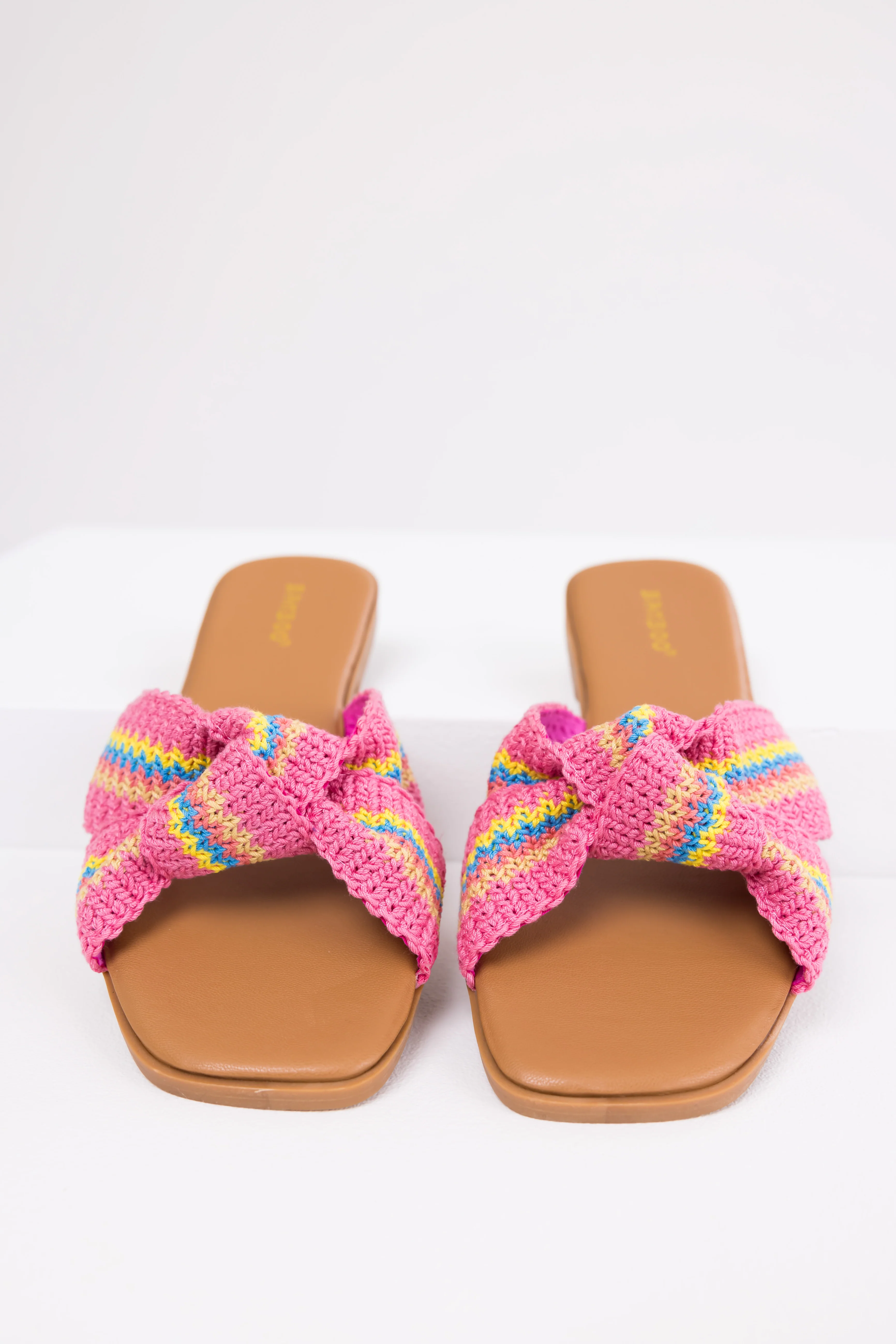 Hot Pink Aztec Band Square Toe Slide Sandals